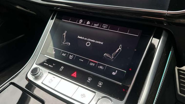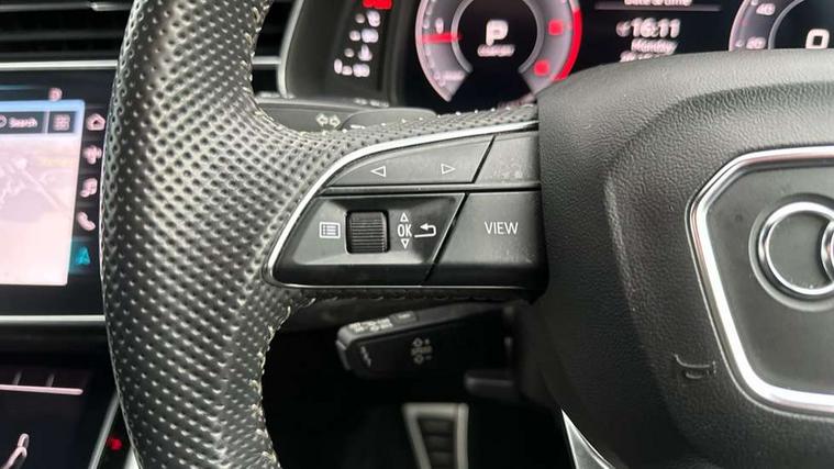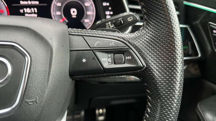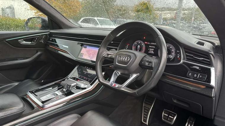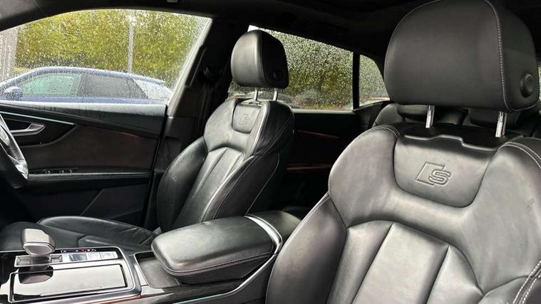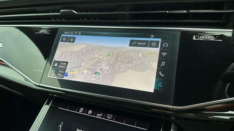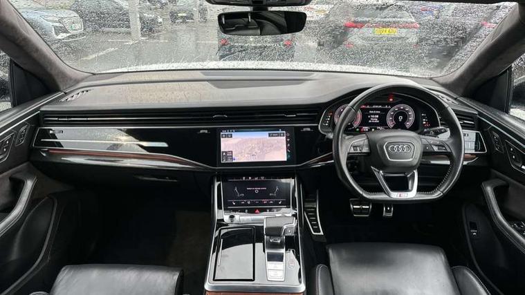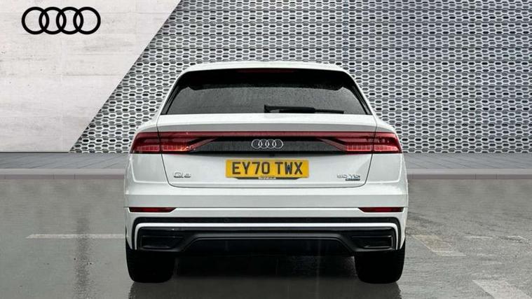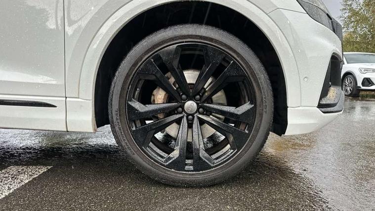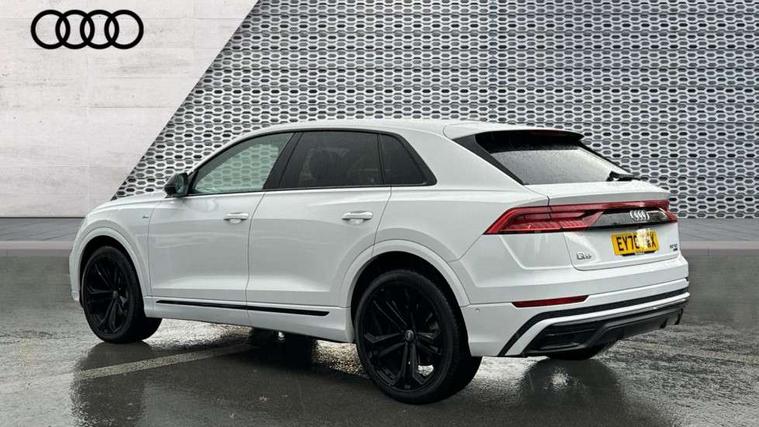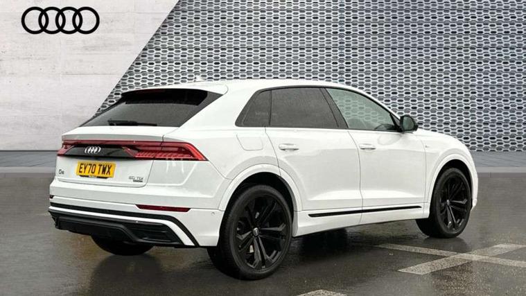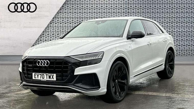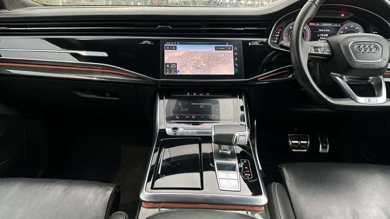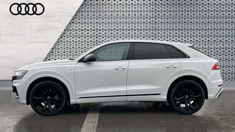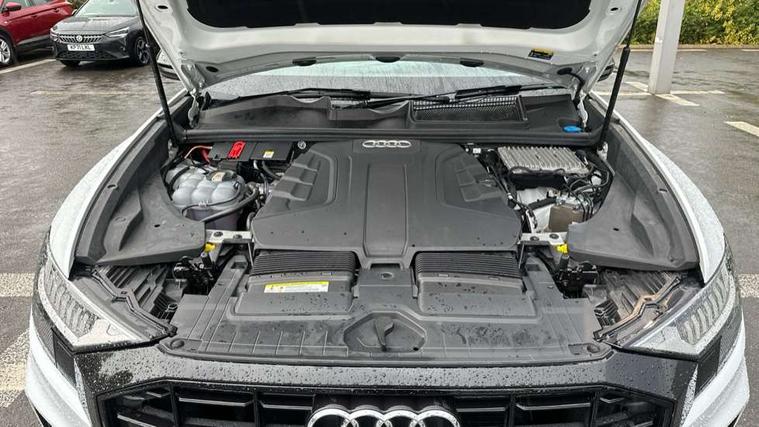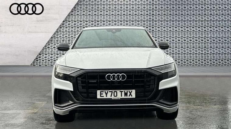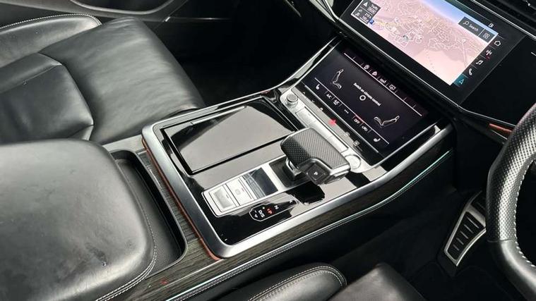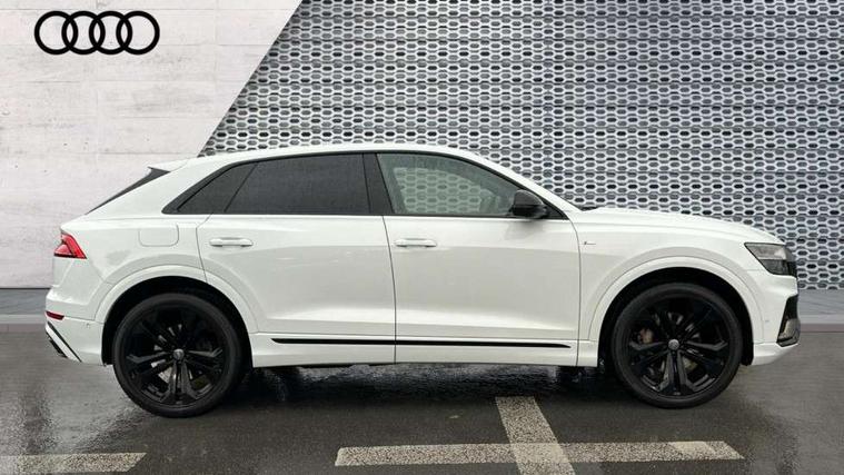 10.1" and 8.6" Dual colour touchscreens, Audi connect safety and service (e-call), Audi drive select, Audi parking system plus with front and rear sensors, Audi phone box with wireless charging, Audi smartphone interface with wireless Apple CarPlay, Audi virtual cockpit plus, Automatic start/stop system, Electro-mechanical PAS, Low washer fluid indicator, MMI - Multi Media Interface control system, MMI navigation plus with MMI touch, Natural voice recognition, On board computer, Operating buttons in black, glass look with haptic feedback, Power operated tailgate, Rear view camera, Service interval indicator, 48V Mild hybrid technology, Adaptive sport air suspension, Diesel particulate filter, Quattro all wheel drive with self locking centre differential, Audi music interface with 2 USB ports with charge and data functions, Audi sound system with 6 channel amplifier, 180 watt amplifying capacity and 10 loudspeakers including subwoofer, Aux-in socket, DAB Digital radio, Acoustic windscreen, Audi Beam uses LEDs to project the Audi logo, Audi HD Matrix LED headlights with dynamic front and rear indicators, Auto dimming frameless rear view mirror, Coming/leaving home lighting function, Electric front+rear windows, Electric panoramic glass sunroof, Electrically adjustable/heated/folding/dimming door mirrors with kerb view includes integrated LED indications + kerb view function for passenger side, Headlight washers, Heat insulating glass in windshield, LED signature daytime running lights, Platinum grey front spoiler lip and diffuser insert with honeycomb grille in black, Privacy glass - dark tinted rear and rear side windows from B-pillar backwards, Rain and light sensors, Rear wiper, 3 spoke flat bottomed high multi-function leather sport steering wheel with gearshift paddles, 4 zone deluxe automatic climate control, 4-way lumbar support for front seats, 40:20:40 split folding rear seat, Black Alcantara headlining, Comfort front centre armrest, Double sun visor with illuminated vanity mirror on driver and passenger side extendable, Driver and front passenger seat memory function for electrically adjustable front seats, Electric sunblind for the rear side windows and manual sunblind for the rear window, Front head restraints, Front/rear floor mats, Heated front and outer rear seats, ISOFIX child seat mounting for front passenger seat and 2 outer rear seats with top tether child seat mounting for all 3 rear seats, LED interior ambient lighting, Luggage compartment sill protection in stainless steel, Rear centre armrest with 2 cupholders, Rear headrests, Rear seat bench plus, Stainless steel pedals, Tool kit, Extended leather pack - Q8, Titanium Black Styling Pack - Q8, 3 point seatbelts on all seats, Audi pre sense front, Driver and front passenger, front side and curtain airbags, Electromechanical parking brake, Electronic Stability Control (ESC) including ABS, ASR and EDL, Front passenger airbag deactivation, Hill descent control, Hill hold assist, Predictive pedestrian protection, Seatbelt monitoring, Traction control, Tyre pressure loss indicator, Warning triangle and first aid kit, Anti theft alarm with tow away protection, Anti-theft wheel bolts and wheel loosening detection, Immobiliser, Keyless go with remote central locking, Polished oak trim with grey finished, Tyre repair kit,
