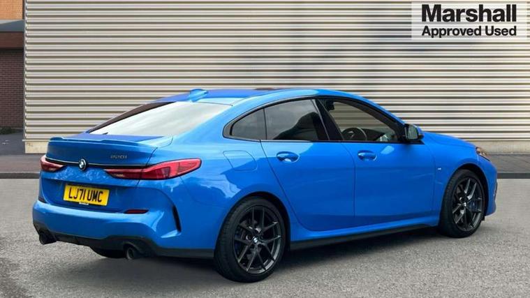 Active guard plus, Attentiveness assist, Auto start-stop, Bluetooth hands free facility with USB audio interface + WiFi interface for wireless connection of mobile terminal devices + audio streaming, BMW Intelligent Personal Assistant, BMW Live Cockpit Professional with 10.25" high resolution instrument and control display, BMW Online services, BMW operating system with 7.0 mid interface, BMW Teleservices, Characteristic map controlled oil pump system, Check Control warning system for monitoring of lights and door/luggage compartment open warning, iDrive controller with touch function and 7 short cut favourite buttons on centre console, Integrated navigation data with map data via USB +features such as 3D landmarks and micro city models, Integrated owners handbook, Intelligent voice assistant, M Sports steering, On board computer - average speed+fuel consumption, service interval, clock/date, odometer/trip meter, outside temperature display and ice warning, Optimum shift indicator, Personal Profile, Pull away assistant, Speed limiting function, 2 balance shafts, 7 speed sport automatic transmission with double clutch technology and sportier application, Aluminium lightweight construction, BMW TwinPower twin-scroll Turbo four-cylinder petrol engine, Double VANOS, Drive performance control with ECO PRO comfort + sport mode, Electronic differential lock, High precision injection, Larger fuel tank capacity (50 litres), M Sport suspension with stiffer spring/damper set-up and vehicle lowered by 10mm + twin tube gasfilled shock absorbers and Anti roll bars, Performance Control, Petrol Particulate Filter, VALVETRONIC engine management, 2x USB Type C ports (for charging and data transfer), 4G LTE Connectivity with hard wied 4G network sim card, DAB digital radio, MP3 players and RDS double tuner, Stereo 6 speaker system with 2 mid range speakers in the front and rear door trims + 2 central bass speakers underneath the front seats, Automatically dimming rear view mirror, Body colour door handles, Body colour mirror caps, Chrome 'M' logo side designation, Chrome exhaust single tailpipe, round, Direction indicator side lights integrated exterior mirrors, Electric windows - front and rear, with open/close fingertip control and trap release, Exterior mirrors - electrically folding with anti-dazzle, Fading support, Follow me home headlights, Front and rear bumper system with replaceable deformation elements, Front door sill finishers in black plastic with M designation in metallic look, Heated, electrically adjustable exterior mirror aspheric on driver side, convex on passenger side, High gloss black B pillar finish, High gloss shadow line exterior trim, High level third brake light, LED daytime running lights, LED front fog lights, Lightweight engineering, Model designation on right side of tailgate, Preparation for high beam assistant, Rain sensor with automatic headlight activation, Rear fog lights, Reversing light in rear light cluster, Welcome lighting, 12V power socket in centre console, 2 cupholders in front centre console, 3 rear seat head restraints, 3 spoke M sports design leather steering wheel finished in nappa leather with specific M badge, Anthracite finished floor mats with contrasting surround, Anthracite headlining, Automatic two zone climate control air conditioning, Child seat ISOFIX attachment for two outer rear seats and front passenger seat with anchorage points, Conditioned based service, Driver and front passenger seat heating, Front and rear door pockets including bottle trays, Front and rear side armrests integrated into door trim, Front armrest foldable with integrated storage compartment, Front centre interior light over interior mirror and rear centre automatic interior light when door is opened/ignition switched off or via remote key, Front head restraints, Front sports seats with electric side bolster adjustment, Glove compartment, Glovebox with light, Luggage compartment lighting, Manually adjustment steering wheel column, Multi-function controls for steering wheel, Sun visors with vanity mirrors and insert tab, Through loading system with 40/20/40 split folding rear seat, Two lashing eyes, Additional interior lighting pack - 2 Series Gran Coupe, Connected pack professional - 2 Series Gran Coupe, Extended storage pack - 2 Series Gran Coupe, M Sport exterior styling aerodynamics pack - 2 Series Gran Coupe, 2 tone horn, Airbag - Front driver and passenger, front and rear head, front side, curtain head protection, manual deactivation of front passenger airbag possible, Anti lock braking system (ABS) with cornering brake control, BMW emergency call, Brake drying, Braking readiness, Crash sensor activating of airbags, Unlocking doors, hazard warning lights, interior light, safety battery terminal, Dynamic stability control + (DSC+), Dynamic Traction Control - DTC, Electrically operated hand brake, Rear brake discs, Rear child proof door locks, Seat belt security check for driver and front passenger, Seatbelt warning, Side impact protection, Three point seat belts on all seats including front belt stopper, pyrotechnic belt tensioners and belt force limiters, Trailer stability control, Tyre pressure monitoring system, Ventilated front disc brakes, Warning triangle and first aid kit, Central locking switch for all doors, fuel filler cap and luggage compartment, Deadlocking function system to all doors, Drive away locking system on all doors and luggage compartment, Locking wheel bolts, Start/Stop button (illuminated) in centre console with keyless engine start and Auto Start-Stop deactivation button, Thatcham Cat.1 alarm and immobiliser, Two remote control key with integrated key - open/close doors/fuel flap/tailgate +1 button for unlock compartment with M design high gloss black inlay, Contrast stitching on instrument panel, 18" Burnished M double spoke bi-colour alloy wheels finished in orbit grey - style 819M, Reduced rolling resistance tyres,