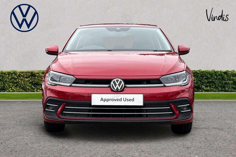Adaptive cruise control without follow-to-stop and speed limiter, Bluetooth mobile phone interface, Digital Cockpit Pro with 10.25" Display, Driver alert system, Dynamic road sign display, Emergency call service, Power assisted speed sensitive steering, Preparation for We connect and We connect plus, Speedo and rev counter, electronic odometer, trip, service interval display and fuel gauge, Standard rear axle, Travel Assist - Lane keeping system and traffic jam assist, Travel assist including emergency assist, Trip computer, Warning signal and warning light for front and rear seatbelts not fastened, Washer fluid level indicator, Wireless app connect, Front wheel drive, Rear shock absorpion, Start-stop system with battery regeneration (recuperation - energy recovery during braking), DAB Digital radio, Diversity antenna for FM reception, Front and rear 6 speakers, Automatic dimming interior rear view mirror, Automatic headlights, Body colour door handles, Body coloured bumpers and radiator grille with chrome trims, Electric front windows, Heat insulating darkened glass in side and rear windows, Heat insulating glass windscreen, LED separate daytime running lights with coming/leaving home function, Power folding adjustable/heated exterior mirrors and front passenger exterior mirror lowering function, Rain sensor, Rear electric windows, Rear fog light, Rear side wing doors, Rear windscreen washer and wiper with interval delay, Third brake light, 12V power socket in centre console, 2 USB-C ports in the front, 2 USB-C charging sockets on the center console in the rear, 3 rear head restraints, 60/40 split folding rear seat and rear seat bench not split, Air care climatronic air conditoning system with active combination filter and 2-zone temperature control, Ambient lighting, Ceramique headliner, Chrome plated radiator grille inserts, air vent surrounds and light switch surrounds, Door and side trim panel, Driver and front passenger seat height adjustment, Driver/passenger sunvisors with illuminated vanity mirrors, Front + rear carpet mats, Front centre armrest, Front footwell illumination, Front seat backrest storage pockets, Front sports comfort seats, Handbrake lever handle in leather, Isofix child seat preparation easy-fit (for two outer rear seats, and front passenger seat) compatible with I-size, Leather trimmed gear knob, LED interior light with switch off delay and dimmer, 2 reading lights front and rear, Luggage compartment cover, Luggage compartment floor, Luggage compartment lighting, Lumbar adjustment for front seats, Multifunction steering wheel, Single front passenger seat, Standard pedal cluster, IQ LED matrix headlights pack - Polo, Light and vision pack - Polo, 3 point height adj front seatbelts + pretensioners, 3x3 point rear seatbelts, ABS, Driver and front passenger airbag with front passenger airbag deactivation, Drivers and front passengers safety optimised head restraints, ESC (Electronic stability control) + EDL (Electronic Differntial lock) and ASR (Traction control), Extended and predictive pedestrian/ cyclist protection, Front curtain and side airbags with center airbag, Front disc brakes, Hill hold control, Manual child lock in rear doors, Rear drum brakes, Single tone horn, Tyre pressure loss indicator, Alarm with interior protection, Anti-theft alarm system with interior monitoring, backup horn, and towing protection, Anti-theft wheel bolts, Electronic engine immobiliser, Chrome applications on rotary light, mirror adjustment, window regulator switches, outlet with frame in black, Deep iron gloss decorative inserts in dash and front door panels, Low rolling resistance tyres,