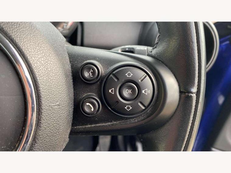 Acoustic seat-belt warning, Basic bluetooth function with USB audio, Brake fluid level warning light, Brake pad wear indicator warning light, DTC - Dynamic traction control, Exterior temperature gauge, Intelligent emergency call, MINI TeleServices, Oil level indicator, On board computer, Push button starter, Service interval indicator, Servotronic PAS, Electronic differential lock, Auxiliary input socket, DAB digital radio module, 2 speed wipers+intermittent wipe, Anti dazzle mirror, Anti trapping/one touch open close front windows, Black tailgate handle, Body colour roof, Body coloured bumpers, Chrome bezels around rear lights and headlights, Chrome door handles, Chrome exhaust tailpipe, Chrome grille surround, Chrome plated trim on bottom edge of window, Chrome strip on lower grille, Electric front windows, Electric rear windows, Electrically adjustable door mirrors, Flared wheel arches, Follow me home headlights, Green tinted heat insulating glass, Heated door mirrors/heated windscreen washers, Heated rear window with auto timer, LED fog lights, LED rear lights, Rear wiper, Side scuttles, White indicator lights, 2 rear head restraints, 4 boot load lashing points, 4 way manually adjustable passenger seat with height, reach, tilt, backrest and headrest, 6-way manually adjustable driver's seat, Active carbon filter, Adjustable front seats backrest, Air recirculation system, Auxiliary socket in centre console storage compartment, Centre console storage, Driver's seat height adjuster, Driver/passenger sunvisors, Easy entry seats, Front and rear cupholders, Front head restraints, Front passenger grab handle, Gear/selector and handbrake in artificial leather, Internal chrome door handles, Isofix child seat preparation, Luggage compartment lighting, Multifunction steering wheel, Reach + rake adjustable steering column, Rear grab handles, Rear storage trays, Split folding rear seats, Storage compartments in doors, Toolkit in luggage compartment, 3 point seatbelts, 3x3 point rear seatbelts, ABS/EBD, ASC+T, Cornering brake control (CBC), Crash Sensor - activates hazard/interior lighting + unlocks doors, Driver and passenger airbags, Driver/front passenger side airbags, DSC - Dynamic Stability Control, Fuel cut off safety device, Head airbags, Hill start assist, Manual passenger airbag deactivation function, Seatbelt pretensioners, Tyre pressure warning, Ventilated front disc brakes, Drive away door locking, Remote central locking/doors+fuel cap+tailgate, Second remote key, Thatcham category 1 alarm + immobiliser,