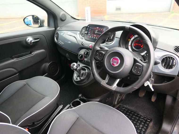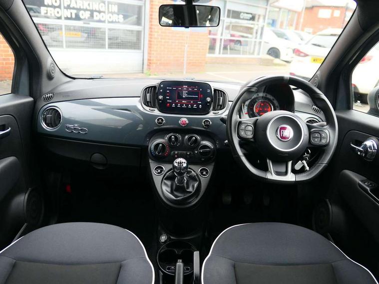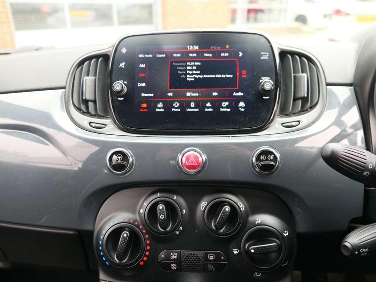 Apple car play/Android Auto, Cruise control, External temperature gauge, Power assist steering, Rear parking sensor, Speed limiter, Stop/start system, Trip computer, 4 speakers, Rear speakers, Body colour sports bumpers, Chrome exhaust finish, Electric front windows, Electrically adjustable satin graphite door mirrors with defrosting / external temperature sensor, Front fog lights, Heat insulated glass, Heated rear windows with wash wipe, LED daytime running lights, Satin Graphite exterior trim, 1 passenger grab handle, 50/50 split folding rear seats with height adjustable rear headrests, Auxilliary 12V power socket, Cloth upholstery, Front headrests, Height adjustable drivers seat, Height adjustable steering wheel, Isofix child seat preparation, Sports seats, Techno leather steering wheel with audio controls, Sports kit Pack - 500, 7 airbags - Driver, passenger, side, window and drivers knee airbags, ABS/EBD, Curtain airbags, ESC + ASR/MSR + HBA + Hill holder, Manual passenger airbag deactivation function, Traction control, Tyre pressure monitoring system, Automatic door locking, Immobiliser, Locking fuel filler cap, Remote central locking, Grey dashboard trim,