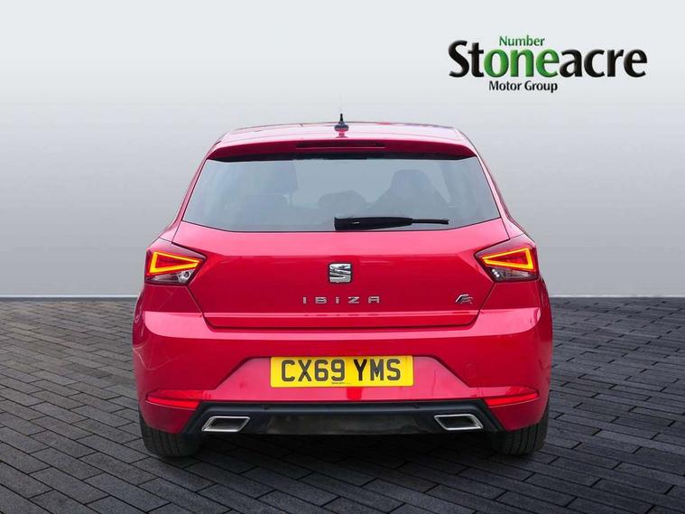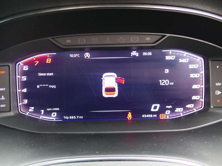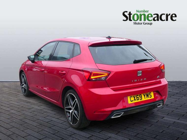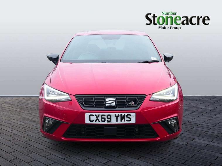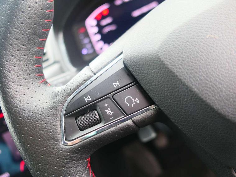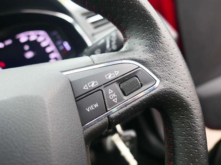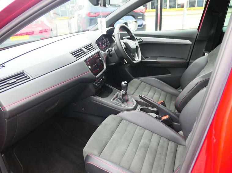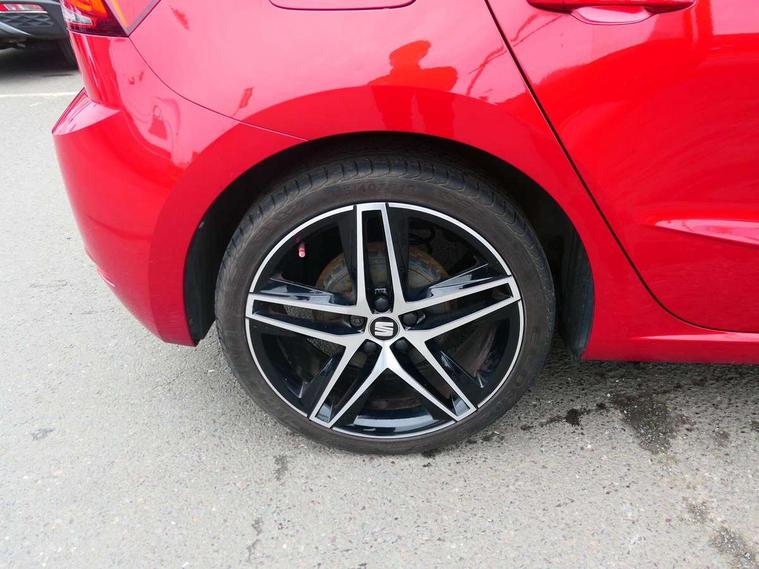 'Lights On' Reminder warning buzzer, Bluetooth Handsfree Phone Connection, Cruise control, Digital clock, Digital cockpit, Full Link Smartphone Integration with Mirror Link, Apple Car Play, Google Android Auto, Low fuel warning light, Outside temperature gauge, Power Steering, Satellite navigation system with 3D mapping, 8" touch screen, voice control and additional USB port, SEAT Drive profile, SEAT logo boot release, Trip computer, Sports suspension, 6 speakers, Auxiliary input socket, CD player, Digital Audio Broadcast (DAB) Tuner, Radio/MP3 player, SD card slot, SEAT USB media cable, Steering wheel mounted controls, USB port, Anti theft roof antenna, Auto dimming rear view mirror, Automatic headlights, Automatic rain sensing wipers, Body colour bumpers, Body colour door handles, Brilliant black door mirrors, Chrome front grille frame, Chrome grille, Coming/leaving home lighting function, Cornering front fog lights, Dark tinted rear windows, Electric folding door mirrors, Electric front windows, Electric headlight adjustment, Electrically adjustable and heated door mirrors, Exclusive FR rear bumper, Full LED headlights, LED daytime running lights, LED tail lights, Rear fog lights, Twin exhaust pipes, 3 rear headrests, 60/40 split folding rear seat, Door and steering wheel ice metal decorative inserts, Driver's sunvisor with ticket holder/vanity mirror, Dual zone climate control, Dust/pollen filter, Flat bottomed perforated leather steering wheel with red stitching and FR logo, Front courtesy lights, Front cupholders x 2, Front reading lights, Gear shift indicator, Glovebox, Height adjustable driver's seat, Height adjustable front/rear head restraints, Height adjustable passenger seat, Height/reach adjust steering wheel, Illuminated boot, Instrument lighting with brightness control, Leather dashboard, Leather handbrake, Microsuede cloth upholstery, Multi-colour ambient interior lighting, Passenger sunvisor, Rear top tether child seat ISOFIX attachment, Sports seats, Full LED headlight pack - Ibiza, 3 point seatbelts on all 3 rear seats, ABS, Active front headrests, Child locks on rear doors, Curtain airbags, Driver/Front Passenger airbags, ESP+EBA, Front assist (AEB), Front passenger airbag deactivation, Front side airbags, Hill hold control, Multi-Collision braking, Seatbelt warning, Tiredness recognition system, Tyre pressure monitoring system, Electronic engine immobiliser, Locking wheel bolts, Remote central locking + deadlocks, Volumetric alarm with back up horn, 18" Performance machined bi-colour alloy wheels,