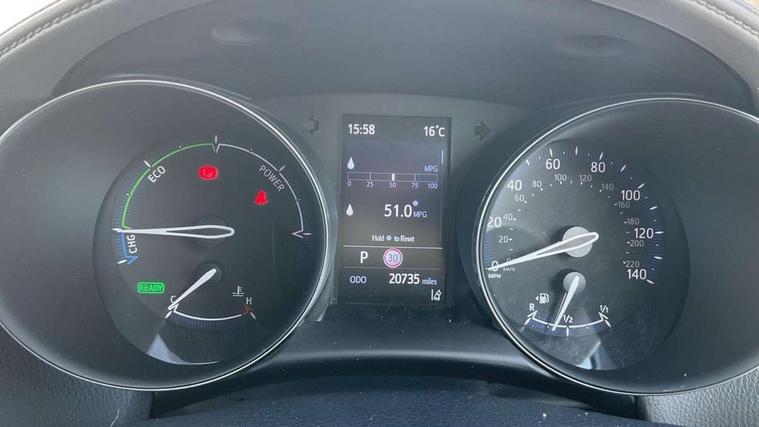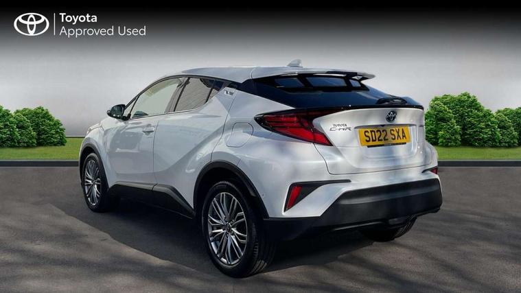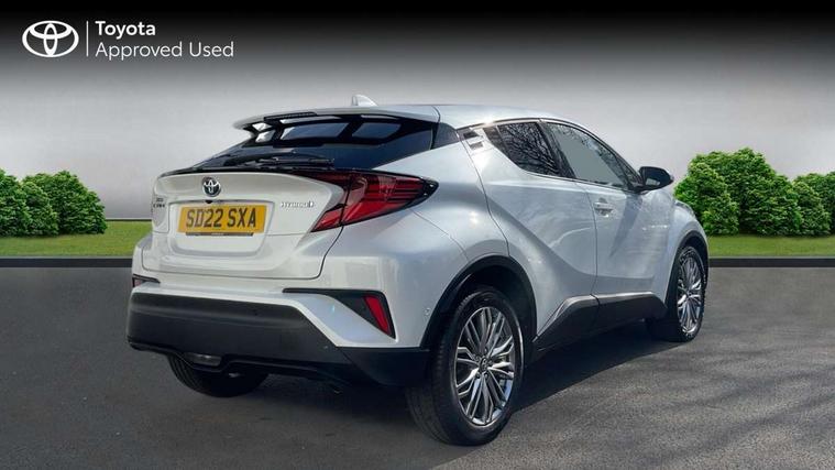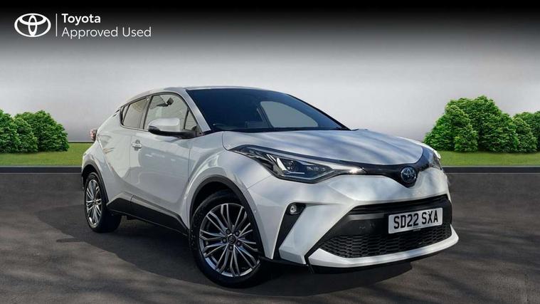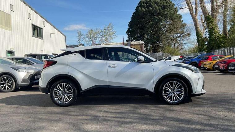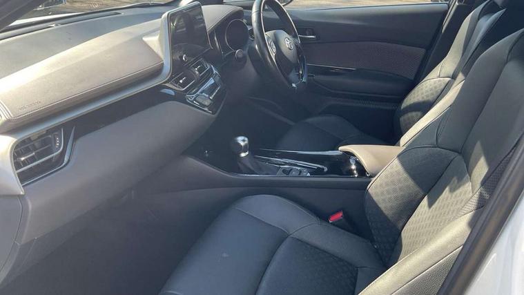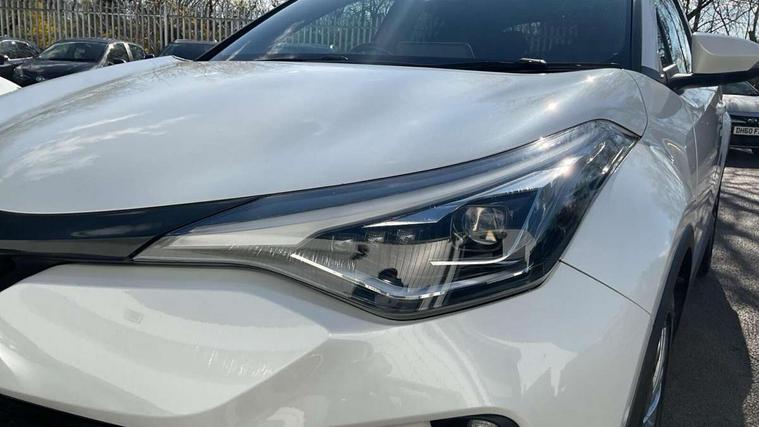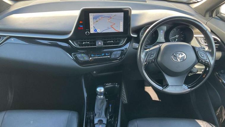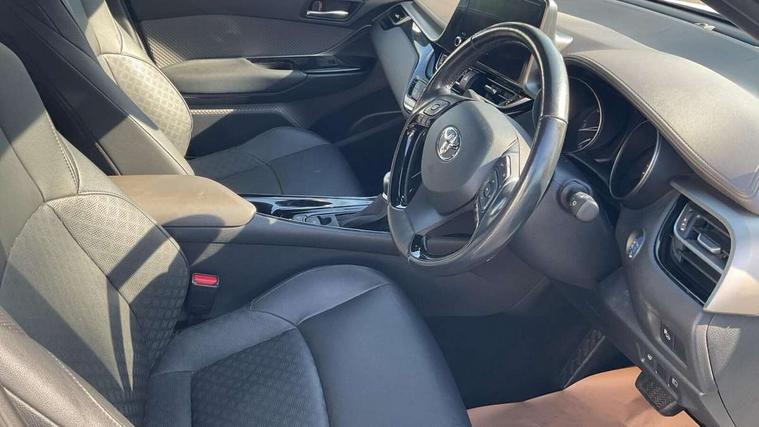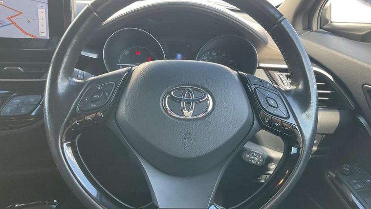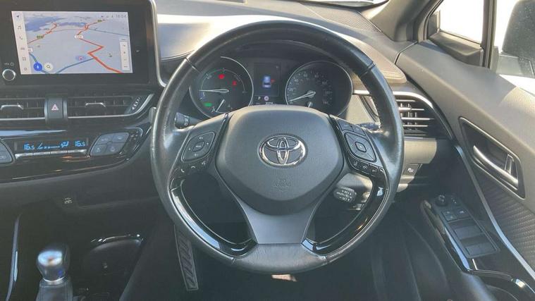 4.2" coloured TFT screen for multi-information display, Adaptive cruise control, Bluetooth connectivity, E-call, Electric power steering, Hybrid system indicator, Lane departure alert with steering control, Remote boot door release in cabin, Remote boot door release in key, Reversing camera, Road sign assist - RSA, Simple Intelligent parking assist, Touch 2 Go navigation system, Trip computer, Voice recognition, Vehicle Stability Control (VSC), 6 speakers, AM/FM radio, DAB Radio (Digital Audio Broadcasting), Toyota touch 2 multimedia system with 8" display, USB connector, Wi-fi connectivity, Adaptive front light system, Adaptive LED Headlights, Anti-jam protection on power windows, Auto high beam, Auto up and down function on all power windows, Automatic headlight levelling, Automatic headlights, Automatic headlights cut-off, Black and body coloured rear bumper, Black upper front grille, Body colour door handles, Body colour door mirrors, Body colour front spoiler lip, Body coloured front bumper, Boot door release with push button, Electric heated door mirrors, Follow me home headlights, Front and rear power windows, Honeycomb lower front grille, LED daytime running lights, LED fog lights, LED front light guide, LED High mounted stop light, LED rear brake lights, LED rear combination lights, Noise reduction layer on front windows and windscreen, Power adjustable door mirrors, Privacy glass, Rain sensor, Rear sequential indicators, Rear side wing doors, Rear spoiler, Rear tailgate, Rear window defogger, Rear window wiper, Shark fin antenna, UV-filter on driver and passenger windows, UV-filter on rear windows, 12v power outlet - front, 3 rear headrests, 3 seat bench in 2nd row, 3 spoke leather steering wheel, 60/40 split folding rear seat, Adjustable rear headrests, Adjustable speed limiter switch on steering wheel, Assist grips front and centre pillar, Audio and telephone switches on steering wheel, Black front door assist grips, Blue ambient lighting on front cup holders, Blue ambient lighting on front doors, Boot light, Chrome interior door handles, Driver and front passenger personal light, Driver and front passenger Whiplash Injury Lessening seats, Driver and passenger seatback pockets, Dual zone automatic air conditioning, Floor mats, Front cupholders, Front head restraints, Front sports seats, Glovebox with internal light, Hard tonneau cover, Heated driver and front passenger seats, Heated steering wheel, Hooks for luggage holding net, Humidifying Nanoe air purifier, Illuminated entry system, Isofix attachments on outer rear seats, Leather gearshift, Light on driver sun visor, Light on passenger sun visor, Manual telescopic steering wheel, Manual tilt steering wheel, Microphone on front personal light, Mirror on driver sun visor, Mirror on passenger sun visor, Multimedia switches on steering wheel, Pollen filter, Power adjustable lumbar support on driver seat, Power tilting cushion on driver seat, Shopping bag hooks, Single front passenger seat, Slow opening on lower glovebox, Voice recognition switch on steering wheel, Leather pack - C-HR, Tech with parking sensor pack - C-HR, 16 Disk front wheel brake, 3x3 point rear seatbelts, ABS+EBD+Brake assist, Electronic parking brake, Front and rear seatbelt reminder, Front passenger airbag on/off switch, Hill start assist control (HAC), Pre collision system with pedestrian detection, Pre-tensioners and force limiters, Rear door child safety locks, SRS Airbags - Driver + Front passenger, front side, front and rear curtain and driver's knee airbags, Toyota safety sense, Tyre pressure monitoring system, Acoustic vehicle alert system (AVAS), Glass-breaking alarm sensors, Immobiliser, Intrusion alarm, Intrusion sensor, Motion sensor alarm, Power door locks, Power passenger window lock, Remote central locking, Black lower dashboard, Dark brown upper dashboard, Piano black console, Silver deco line on upper dashboard, Tyre repair kit,