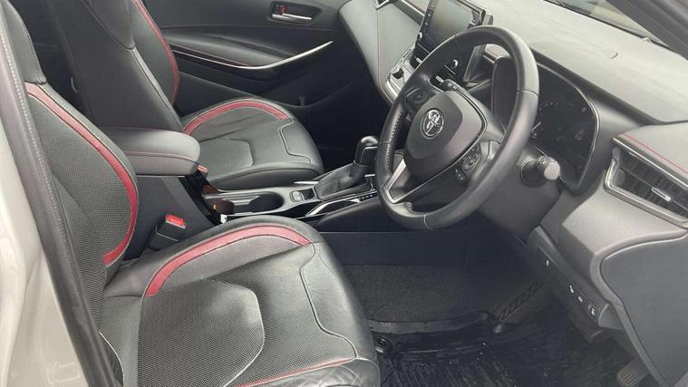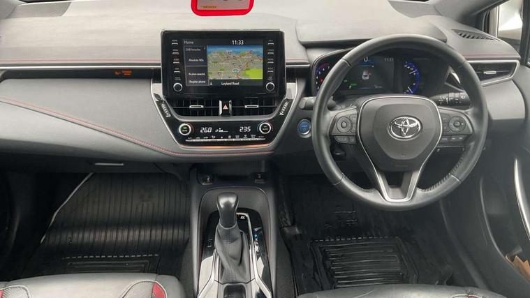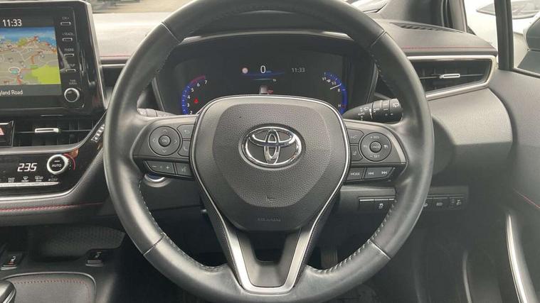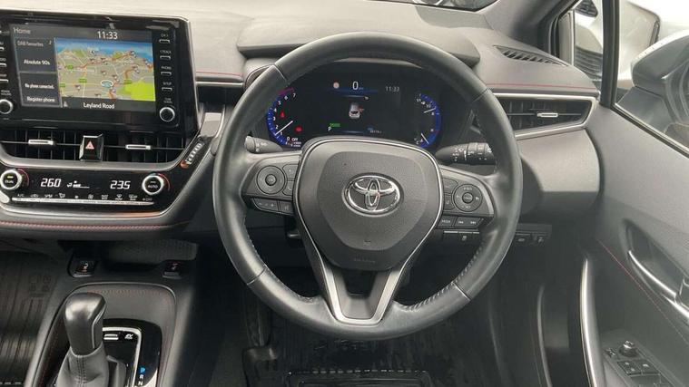 Bluetooth telephone connectivity, E-call, Electrically assisted power steering, Intelligent park assist, Push button start, Reversing camera, Smartphone integration with Apple CarPlay and Android auto, Speed limiter, Voice activation, Vehicle Stability Control (VSC), 2 ring combimeters with 7" colour TFT screen, 6 speakers, 8" multimedia and back monitor, AM/FM radio, DAB Digital radio, Toyota touch 2 with go navigation system, USB and Aux in connectors + 12V front outlet, Anti-jam protection on power windows, Auto dimming inside rear view mirror, Auto up and down function on all power windows, Automatic folding mirrors, Automatic headlights, Automatic wipers, Bi-LED headlights with LED lightguide, Body coloured bumpers, LED daytime running lights, LED front fog lights, LED rear combi lights with LED lightguide, Power adjustable heated door mirrors, Power front windows, Power rear windows, Privacy glass, Rain sensing wipers, Rear window wiper, Reverse tilting door mirrors, Shark fin antenna, 3 rear headrests, 3 spoke leather steering wheel + gear knob, Clean air filter, Dual zone automatic air conditioning with ECO mode switch, Front head restraints, Full leather upholstery, Heated seats, Interior illumination, ISOFIX seat fixing (2 fixings on rear outer seats), Pollen filter, Power lumbar support, Sports seats, Steering wheel switches, Tilt/telescopic steering column, Whiplash Injury Lessening (WIL) feature (active headrest) for seats, Parking pack - Corolla, Toyota safety sense 2 pack - Corolla, 3x3 point rear seatbelts, Adjustable front driver seat belt extender, Anti lock braking system + Electronic brake force distribution, Brake assist function, Electronic parking brake, Front passenger airbag on/off switch, Front seatbelt reminder, HAC - Hill start assist control, Rear seat belt reminder, Seatbelt pretensioners and force limiters, Supplemental restraint system (SRS) 7 airbags - dual driver, dual side curtain, side impact and driver knee airbags, Traction control, Tyre pressure warning system, Alarm/immobiliser, Remote central locking + deadlocks, Smart entry, Tyre repair kit,