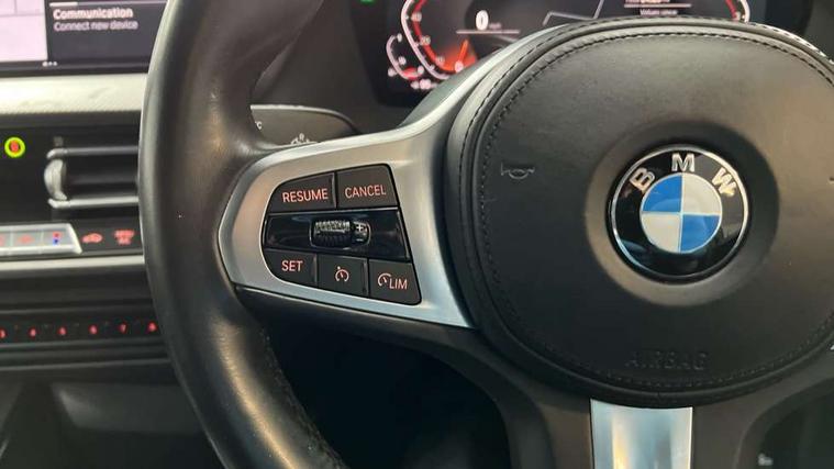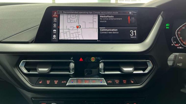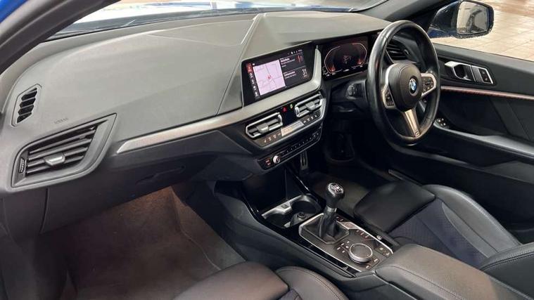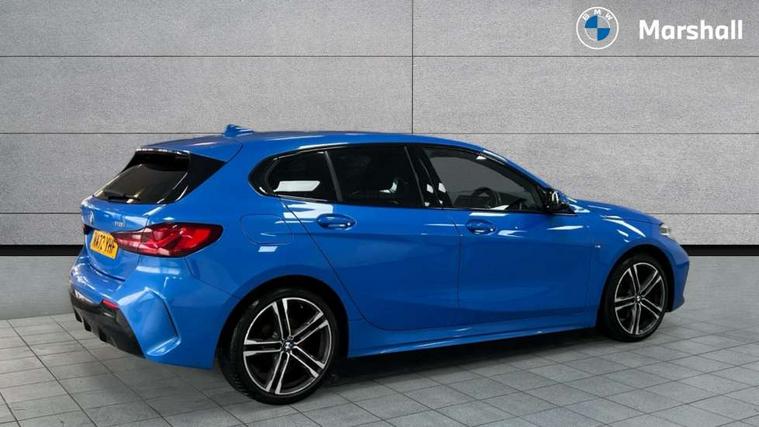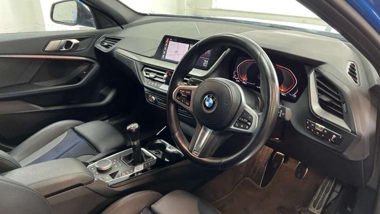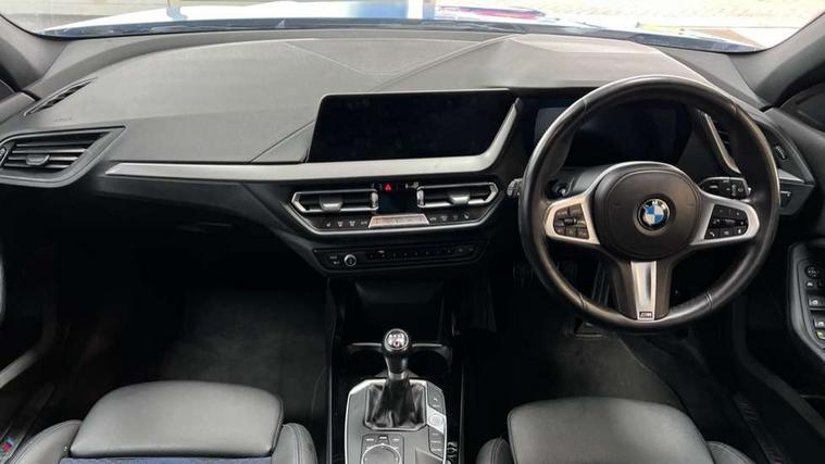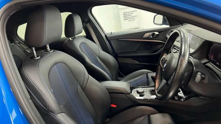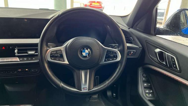 Active guard plus, Attentiveness assist, BMW ConnectedDrive online services, BMW Teleservices, Check Control warning system for monitoring of lights and door/luggage compartment open warning, Cruise control with brake assist, Eco pro mode, Front axle single joint with specific axle kinematics to minimise drive influences on steering + provide increased rigidity agile driving behaviour, Integrated owners handbook, Lane departure warning system, Oil sensor for level and grade, On board computer, Optimum shift indicator, Personal Profile, Pull away assistant, Rigidly mounted rear subframe - Multi link construction with separate spring / damper configuration and excellent driving characteristics, Speed limit Info including no-overtaking indicator, Speed limiter, Aluminium lightweight construction, Anti roll bar front and rear, Balancer shaft, Double VANOS twin scroll turbocharging system, Drive Performance Control, Electronic differential lock, High precision injection, M sport suspension, Petrol Particulate Filter, Twin tube gas filled shock absorbers with degressive characteristic curve, VALVETRONIC engine management, DAB Digital radio, Auto dimming rear view mirror, Automatic headlight beam throw control, Automatic windscreen wipers and automatic headlight, Body colour door handles, Body colour mirror caps, Body colour roof trims, Chrome 'M' logo side designation, Chrome exhaust twin tailpipes round 90mm in left, Chrome kidney grille frame with Satin Aluminium struts, Direction indicator side lights in exterior mirrors, Fading support, Folding side mirrors with auto dimming/folding wing mirrors with auto dimming, Follow me home headlights, Front and rear bumper system with replaceable deformation elements, Front and rear electric windows with open and close fingertip control, anti trap facility and comfort closing, Front door sill finishers in black plastic with M designation in metallic look, Green tinted heat protection glazing, Heated, electrically adjustable exterior mirror aspheric on driver side, convex on passenger side, High gloss shadowline window frame, Recess cover mirror frames and B/C pillar embelisher trim, High level third brake light, Integrated front windscreen with washer jets, LED daytime running lights, LED eyebrow turn indicators, LED front fog lights, LED Headlights, Lightweight engineering, Matt black air guide grilles, Matt black wheel arch trim, Model designation on electric bootlid, Nearside reverse light in rear light cluster, Preparation for high beam assistant, Rear fog lights, Rear side wing doors, Rear window wiper, Shark fin antenna, Trailer stabilisation logic, Visible VIN plate, Welcome lighting, 12V power socket in front centre console with blanking plug, 3 rear seat head restraints, 3 seat bench in 2nd row, 3 spoke sports leather steering wheel in black leather with black stitching and decorative finisher in pearl chrome, specific M badge + leather knob, Anthracite headlining, Black boot net with lashing eyes, Cargo function on 2nd seat row, Child seat ISOFIX attachment for two outer rear seats and front passenger seat with anchorage points, Conditioned based service, Driver and front passenger seat heating, Folding rear clothes hook, Four grab handles integrated in roof lining, Front and rear door pockets with bottle holders, Front and rear side armrest integrated into door trim, Front armrest, Front sports seats, Gearshift lever with M designation, Glove compartment, Height adjustable front head restraints, Luggage compartment for bag hooks on left and right, foldable luggage compartment liner and four lashing eyelets, Manual adjust steering wheel, Multi-function controls for steering wheel, Single front passenger seat, Storage compartment in centre console, Sun visors with vanity mirrors and insert tab, Two front centre console cupholders, Two zone automatic air conditioning, Velour floor mats, Additional interior lighting pack - 1 Series, BMW live cockpit professional pack- 1 Series, Connected pack professional - 1 Series, Interior lights pack - 1 Series, M Sport exterior styling aerodynamics pack - 1 Series, 2 tone horn, 3 point seatbelts on all seats, front pyrotechnic belt tensioners, stopper and belt force limiters, rear coded belt buckles, Airbags - Front driver/passenger, front and rear curtain head protection, front side, manual deactivation of front passenger airbag, Anti lock braking system (ABS) with brake assist, BMW emergency call, Brake drying, Braking readiness, Child proof locking system in rear door, City braking function, Comfort modes, Cornering brake control, Crash sensor activating central locking release, hazard warning lights, fuel cut off, interior lighting + activation of safety battery terminal clamp, Driver and front passenger seat belt security check, Dynamic stability control + (DSC+), Dynamic Traction Control - DTC, Electrically operated hand brake, Front and rear disc brakes, Seatbelt warning, Side impact protection, Tyre pressure monitoring system, Warning triangle and first aid kit, Central locking switch for all doors, fuel filler cap and luggage compartment, Deadlocking function system to all doors, Drive away locking system on all doors and luggage compartment with de-activated in iDrive settings, Locking wheel bolts, Remote control with integrated key with High-gloss Black inlay and M designation and 1 button for open/ close lock, window, open luggage compartment, Start/stop button illuminated in centre console with keyless engine start and auto start stop deactivation button, Thatcham Cat.1 alarm and immobiliser, Wheel slip limitation close to the actuator (ARB), Contrast stitching on instrument panel, Electrically powered 12V compressor, Reduced rolling resistance tyres,