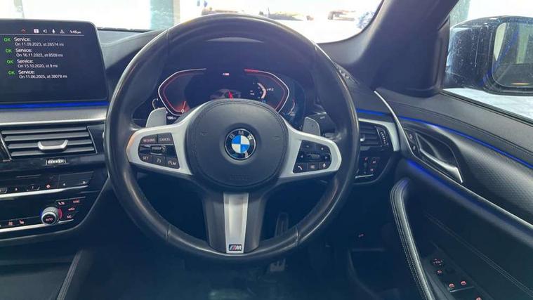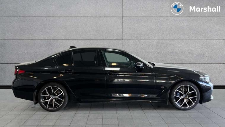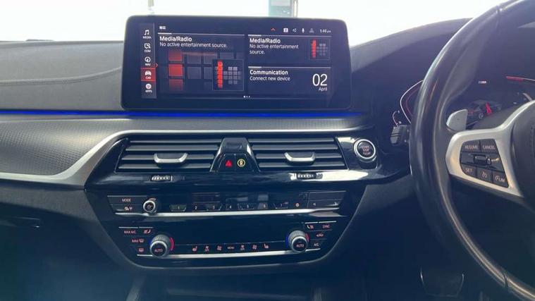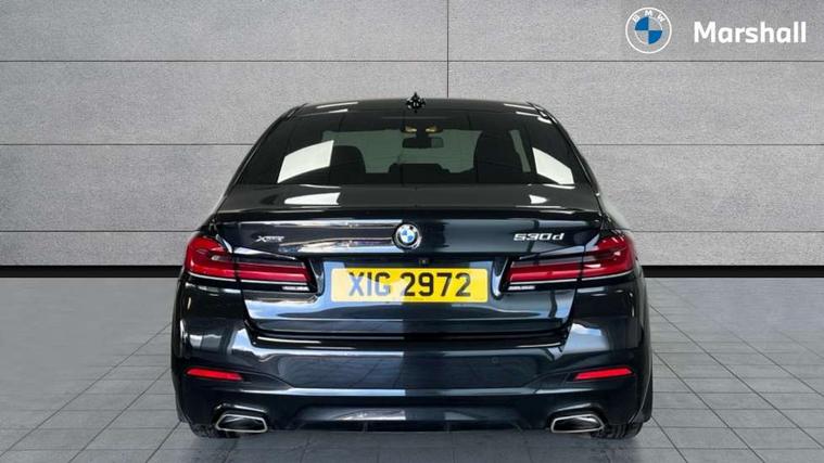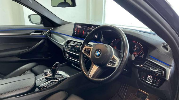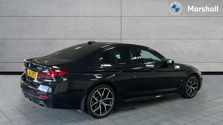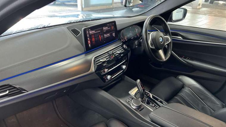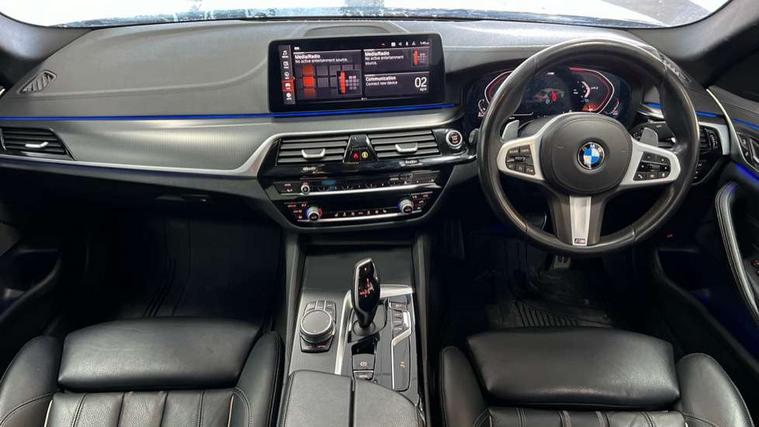 32GB hard disc drive (HDD) memory, Active Guard, BMW ConnectedDrive online services, BMW Live Cockpit Professional sat nav system with 12.3" instrument display and high resolution control display, BMW Teleservices, Brake pad wear indicator, Cruise control with brake assist, Driving experience switch, Electric Power Steering (EPS) with Servotronic, iDrive touch controller with shortcut buttons, Intelligent emergency call, Multifunctional instrument panel, Oil sensor for level and grade, On board computer inc. average speed, fuel consumption, liquid crystal Info display, journey computer, outside temperature display, personal profile, On-board diagnosis - OBD, Powered by Operating System 7.0, Service interval indicator, Speed limiting function, Stop/start button, 48V Mild hybrid technology, Diesel particulate filter, Drive performance control with ECO PRO comfort + sport mode, Engine cover with twin turbo designation, M sport suspension, Steptronic sport transmission with gearshift paddle switches on steering wheel, DAB Digital radio, Favourite buttons, Acoustic glazing, All round anti-corrosion system, Automatically dimming rear view mirror, BMW Individual high gloss shadow line includes exterior mirror frame, window frame surround, B pillar finish, air breather in high gloss black, Body colour door handles, Body coloured bumpers, Door handle illumination, Dynamic brake lights with LED technology, Electric front and rear windows with fingertip open/close + anti-trap facility and comfort closing function, Electrically adjustable and heated exterior mirrors includes integrated direction indicators and automatic parking function, Follow me home headlight function, Heated windscreen washer jets, High gloss black active air stream kidney grille, Interior rear view electrochromatic mirror with automatic anti dazzle function, LED daytime running lights, LED third brake light, M designation on front side panels, left and right in chrome, Rain sensor with automatic headlight activation, Trapezoidal visible exhaust tailpipes, xDrive designation on tailgate, 12V power socket in front and rear, Armrest - front and rear integrated door trim, centre console includes storage compartment, rear centre includes 2 cupholders, Child seat ISOFIX attachment with rear outer seats includes top tether, Cup holders (2 front and 2 rear), Front and rear footwell lights, Front reading lights, Height and length adjustable steering column and activation via lateral lever on the steering column, Illuminated M door sill finishers, Lockable glove compartment with light, M specific pedals, M specific velour floor mats, Multifunction controls for leather steering wheel, Rear headrests, Three spoke sport M leather steering wheel, Ambient lighting pack - 5 Series, Connected package professional - 5 Series, Expanded exterior mirror pack - 5 Series, M Aerodynamic pack - 5 Series, 3x3 point rear seatbelts, Airbags - driver/front passenger, rear and side, first and second row seats head airbags, front passenger seat airbag deactivation + knee airbag, Anti-lock braking system (ABS), Automatic Stability Control (ASC), Brake assist function, Brake energy regeneration, Cornering brake control (CBC), Crash sensor activating central locking release, hazard warning lights, fuel cut off and interior lighting, Deformation zones - front and rear with door reinforcements and bumpers up to 2.5 mph, DSC - Dynamic Stability Control, Dynamic brake control, Dynamic Traction Control - DTC, Electromechanical parking brake with automatic drive away release and auto hold function, Electronic brake force distribution, Engine drag torque control, Front and rear brake discs with interior ventilation, Front head restraints with anti-whiplash, Hill start assist, M Sport brakes in high gloss blue painted brake callipers with M designation, Mechanical child proof lock on rear doors, Passive protection for pedestrians, Side impact protection, Three point seat belts for all four seats, Two tone horn, Tyre pressure indicator, Warning triangle and first aid kit, Alarm system (Thatcham 1) with remote control and electronic engine immobiliser, Locking wheel bolts,
