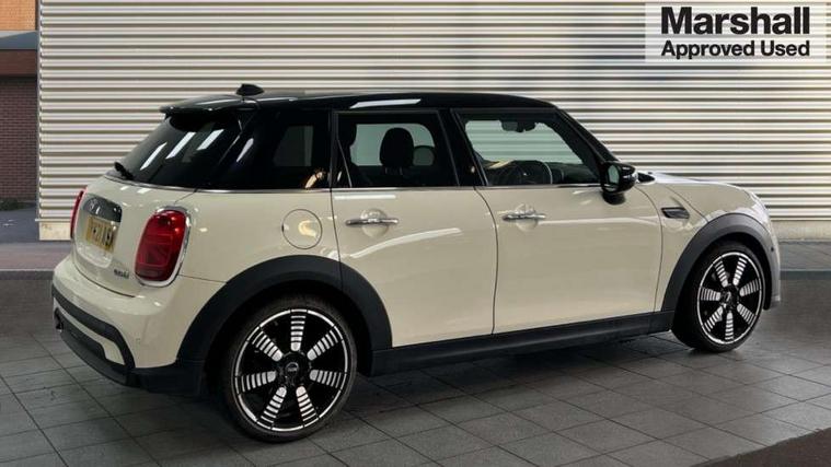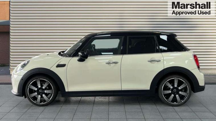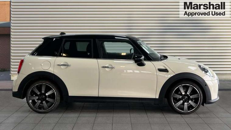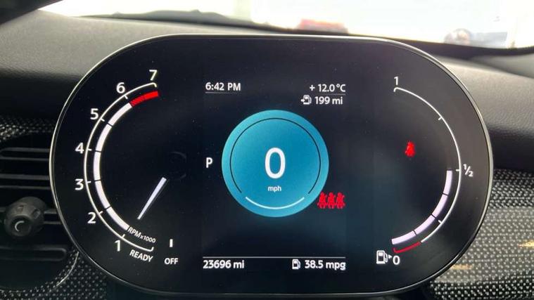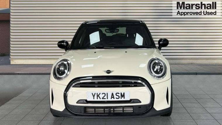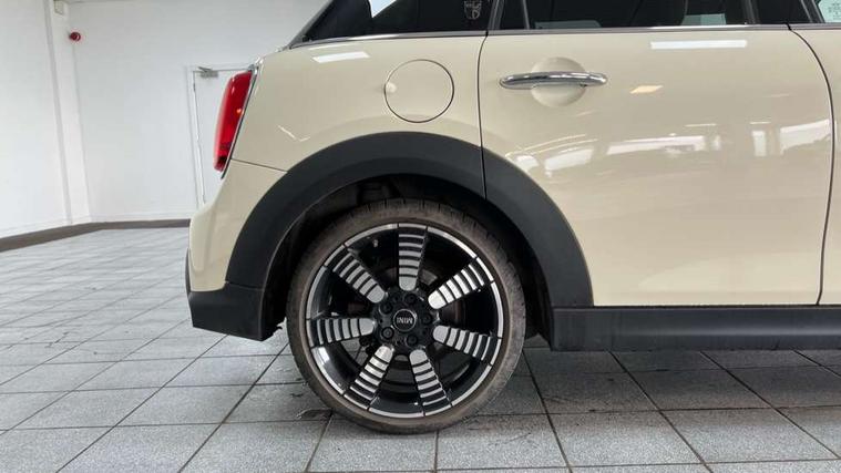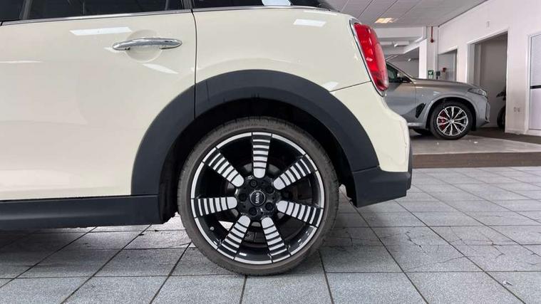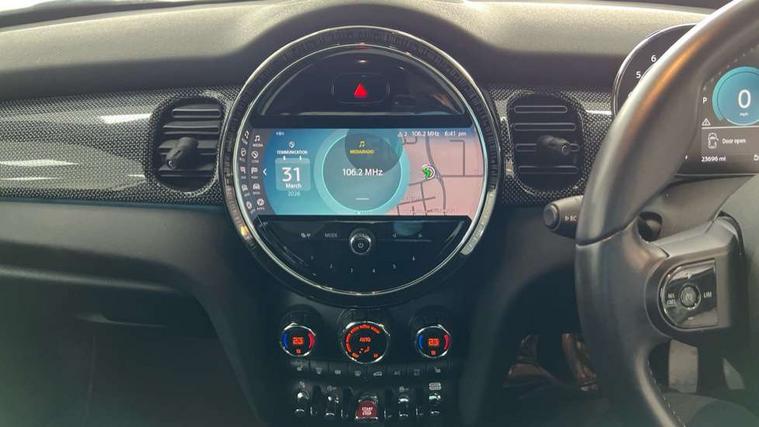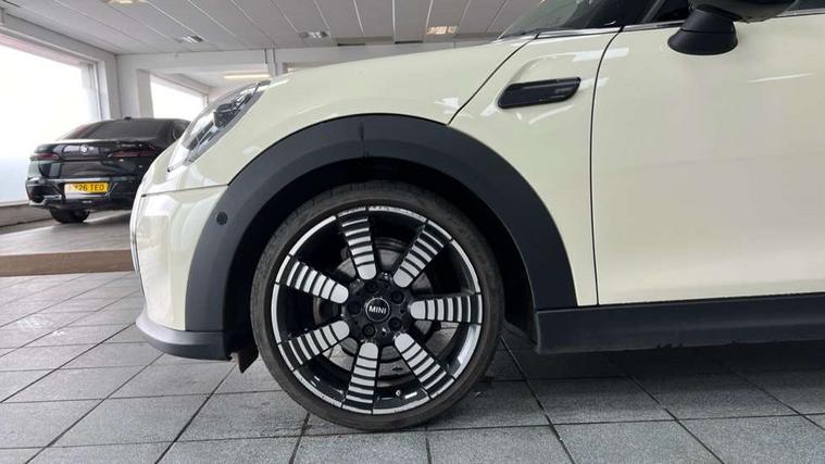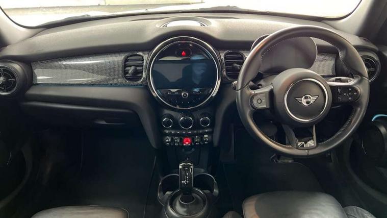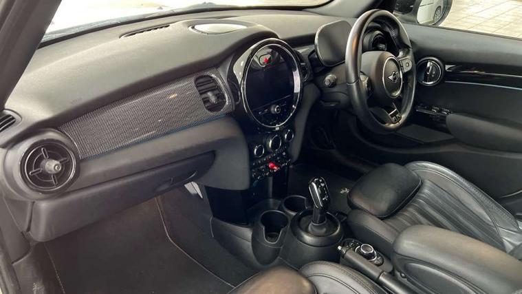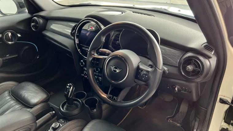 Automatic start/stop function with brake energy recuperation, Compatible mobile phone bluetooth with audio streaming, Cruise control with brake assist, Electro-mechanical speed dependant steering assistance, Flexible car sharing preparation, Instrument cluster, MINI Driving Modes - centre toggle switch to control driving setting (sport, mid and green), Mini E-call, MINI TeleServices, On board computer, Rear park distance control, Service interval indicator, Double Vanos system, Fully variable valve control, Gear change indicator display, High precision injection, Performance Control, Steptronic transmission with double clutch, 6 speakers in front door trims and underneath front seats, 8.8" touchscreen with LED ring, FM tuner and DAB digital radio, Automatic headlight activation switch, Body colour fuel filler cap, Chrome line exterior - radiator grille bars, tailgate handle, lower front grille grating and rear central fog-light, Dynamic brake lights, Electric front+rear windows, Heated rear window, Heated windscreen washer jets, LED headlight with closed ring and daytime driving lights, Metal door sill strips with MINI imprint, Model logo Cooper on right of tailgate, Rain sensor window wipers, Rear fog lights, Rear LED lights with union jack design, Rear window wiper, Side scuttle panel with integrated indicator, Sun/heat protection glass, White indicator lenses, 12V Accessory socket in centre console, 4 lashing eyes in luggage compartment, 60/40 split folding rear seat, Anthracite headliner including grab handles and clothes hooks, Carbon black colour line - Knee roll and door armrest, Chrome interior highlights, Chrome line interior - air vents, gear lever base, door handles and speakers in doors, Cupholders, Front and rear head restraints, Front and rear isofix with front passenger airbag deactivation, Glove compartment, Height and length steering column adjustment, Interior lighting with 12 different colours across the dashboard, underneath door bezel with illuminated laser-engraved design on central display, Leatherette gearshift lever and handbrake gaiters, LED reading lights, vanity mirror lights, front foot well light and spotlight on front seats, Manual air conditioning, Mechanical seat adjustment - forward/back & backrest for front seats and driver seat height adjust, MINI yours badge on exterior pillar, Multifunction steering wheel, Storage compartments in doors, Sunvisors with vanity mirrors, Tool kit, Velour floor mats, Walknappa leather steering wheel with grey seam and MINI Yours badge on Piano Black lower steering wheel spoke, 3 point seatbelts on all five seats, 6 Airbags - front, side, head and seat belt tensioners, Anti-lock braking system (ABS), DSC - Dynamic Stability Control, Front and rear disc brakes, Hill start assist, Single tone fanfare horn, Tyre pressure monitoring system, Alarm system with tilt sensor, monitoring doors, bonnet interior and tailgate, Electronic vehicle immobiliser, Start/stop toggle with keyless go,