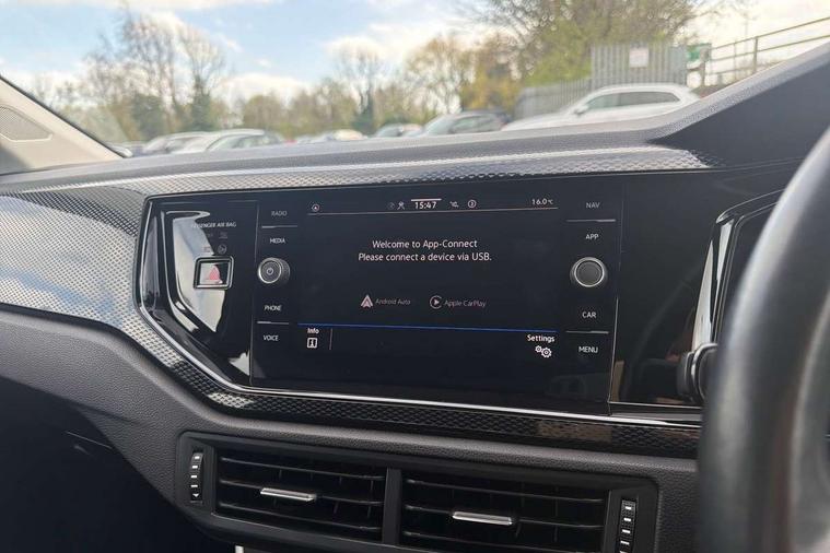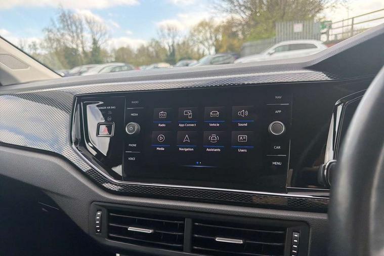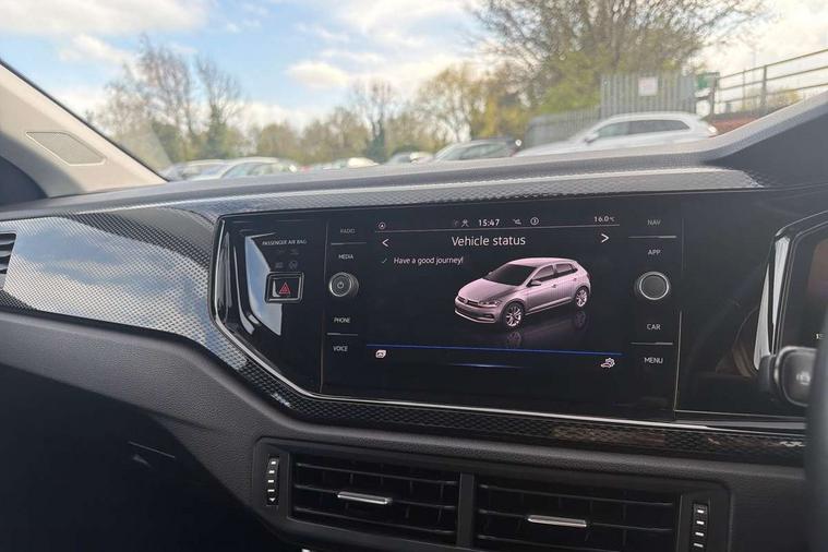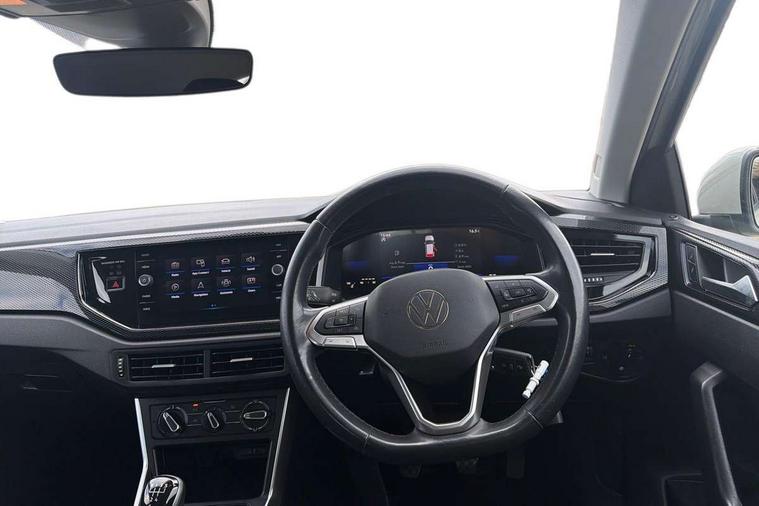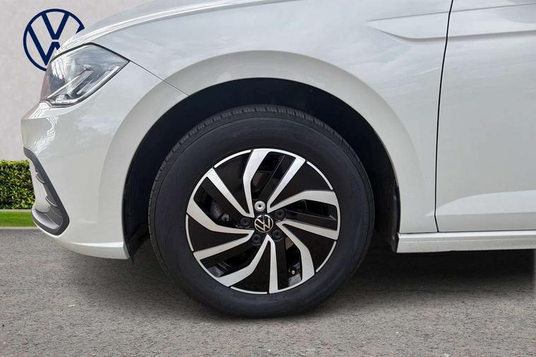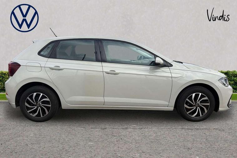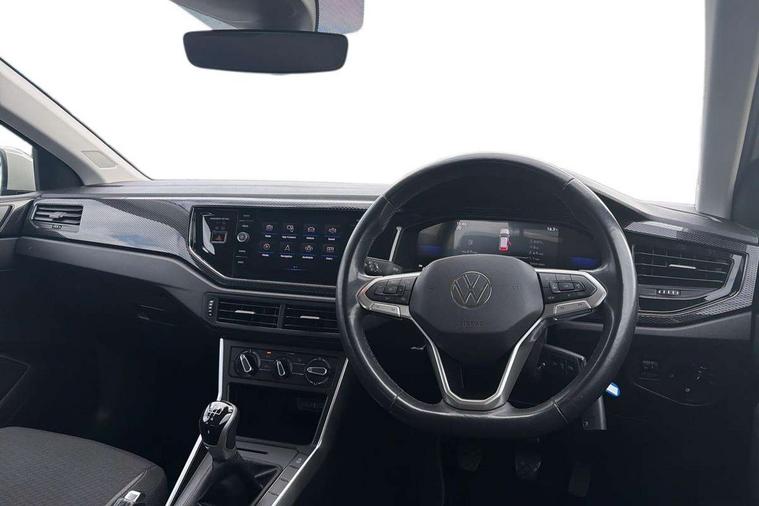 Adaptive cruise control without follow-to-stop and speed limiter, Advanced driver attention and drowsiness monitor, Bluetooth mobile phone interface, Driver alert system, Dynamic road sign display, Emergency call service, Front assist system, Power assisted speed sensitive steering, Preparation for We connect and We connect plus, Speedo and rev counter, electronic odometer, trip, service interval display and fuel gauge, Standard rear axle, Travel Assist - Lane keeping system and traffic jam assist, Travel assist including emergency assist, Trip computer, Warning signal and warning light for front and rear seatbelts not fastened, Washer fluid level indicator, Wireless app connect, Front wheel drive, Rear shock absorpion, Start-stop system with battery regeneration (recuperation - energy recovery during braking), DAB Digital radio, Diversity antenna for FM reception, Front and rear 6 speakers, Automatic dimming interior rear view mirror, Body colour bumpers, Body colour door handles, Body colour door mirrors, Electric front windows, Heat insulating darkened glass in side and rear windows, Heat insulating glass windscreen, Power folding adjustable/heated exterior mirrors and front passenger exterior mirror lowering function, Rain sensor, Rear electric windows, Rear fog light, Rear side wing doors, Rear windscreen washer and wiper with interval delay, Third brake light, 12V power socket in centre console, 2 front and 2 rear reading lights, 2 USB-C ports in the front, 2 USB-C charging sockets on the center console in the rear, 3 rear head restraints, 60/40 split folding rear seat and rear seat bench not split, Chrome plated radiator grille inserts, air vent surrounds and light switch surrounds, Door and side trim panel, Driver and front passenger seat height adjustment, Driver/passenger sunvisors with illuminated vanity mirrors, Front centre armrest, Front seat backrest storage pockets, Front standard seats, Handbrake lever handle in leather, Hartley/Thomas cloth upholstery, Headliner in recycled material, Isofix child seat preparation easy-fit (for two outer rear seats, and front passenger seat) compatible with I-size, Leather trimmed gear knob, Luggage compartment cover, Luggage compartment floor, Luggage compartment lighting, Multifunction steering wheel, Single front passenger seat, Standard pedal cluster, Light and vision pack - Polo, 3 point height adj front seatbelts + pretensioners, 3x3 point rear seatbelts, ABS, Driver and front passenger airbag with front passenger airbag deactivation, Drivers and front passengers safety optimised head restraints, ESC (Electronic stability control) + EDL (Electronic Differntial lock) and ASR (Traction control), Extended and predictive pedestrian/ cyclist protection, Front curtain and side airbags with center airbag, Front disc brakes, Hill hold control, Manual child lock in rear doors, Rear drum brakes, Single tone horn, Tyre pressure loss indicator, Alarm with interior protection, Anti-theft alarm system with interior monitoring, backup horn, and towing protection, Anti-theft wheel bolts, Electronic engine immobiliser, Lava stone black gloss/matt decorative inserts in dash and front door panels, Low rolling resistance tyres,