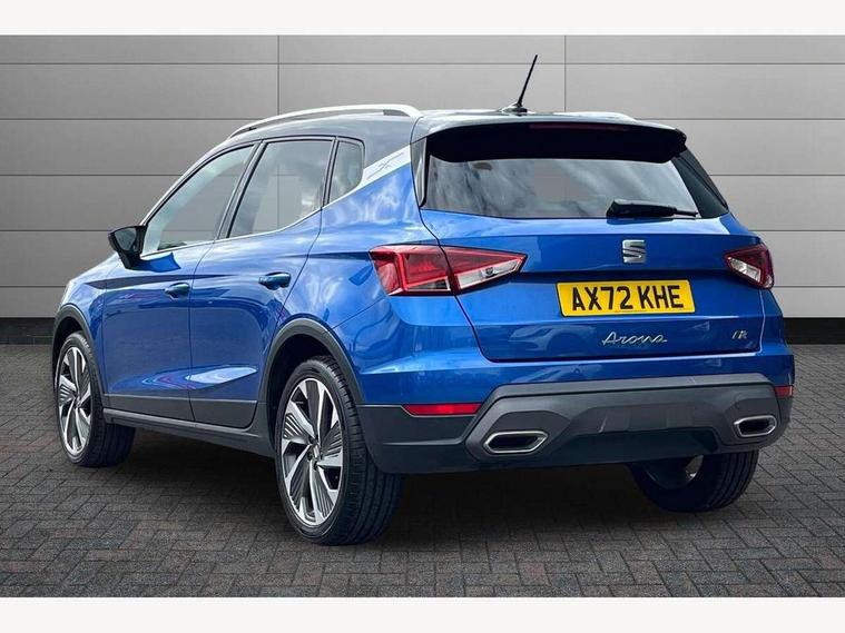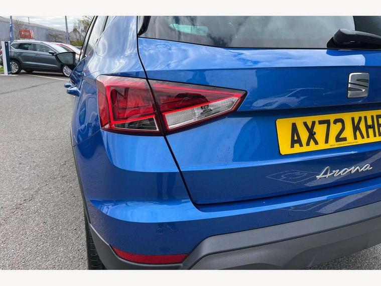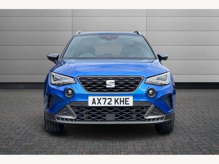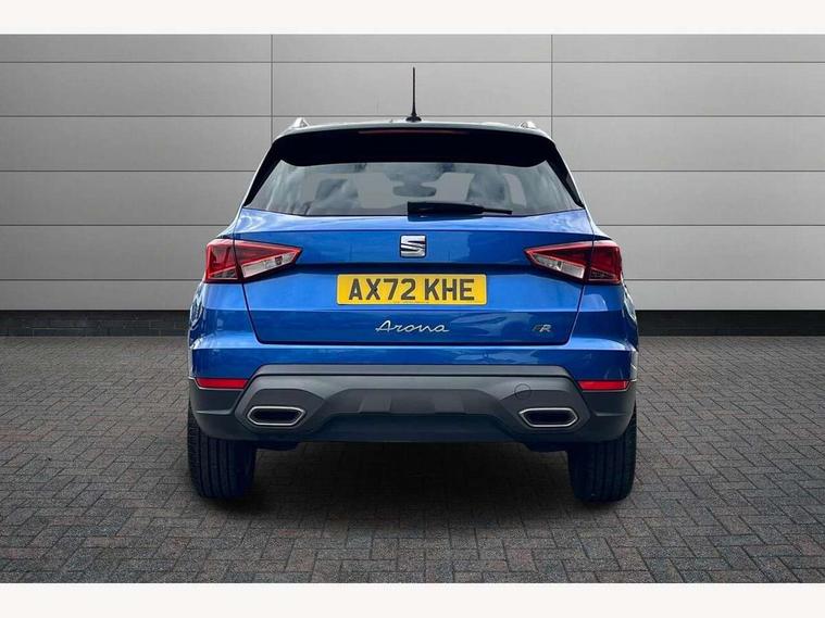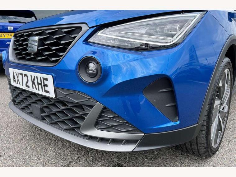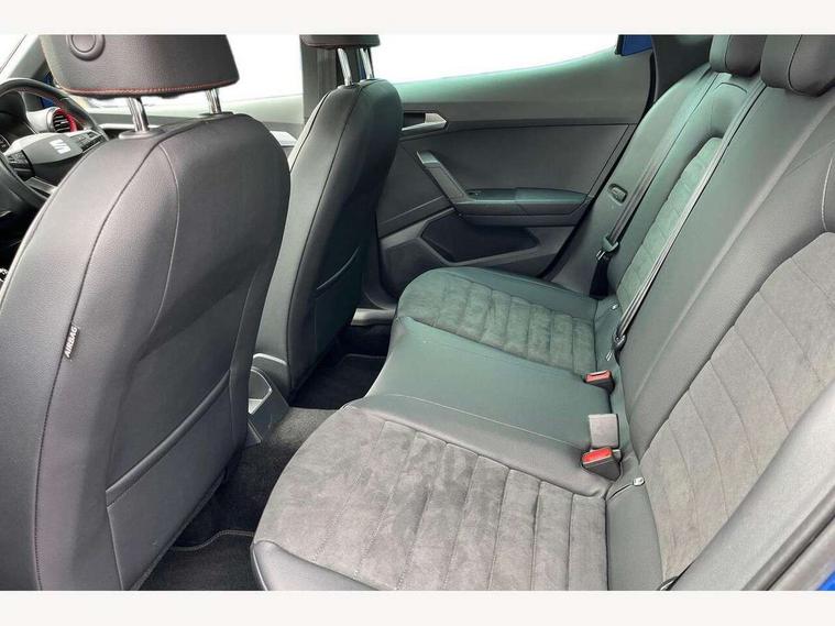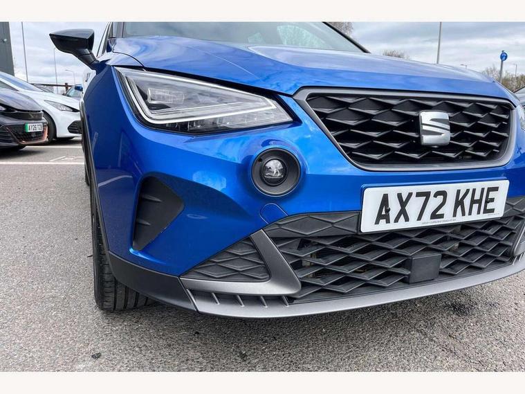 'Lights On' Reminder warning buzzer, Analogue cockpit with physical dials, Digital clock, E-call, Electric speed sensitive power steering, Full Link Smartphone Integration with Mirror Link, Apple Car Play, Google Android Auto with USB Type C cable for Apple and Android compatibility, Lane keeping system, Low fuel warning light, Outside temperature display, Rear parking sensor, RPM counter, Seat connect with safety, service and remote, SEAT Drive profile - Four different models normal-sport-eco-individual, steering response, throttle response, Trip computer, Wireless phone charger, Bluetooth interface for hands free and audio streaming, DAB digital radio and AM/FM radio, Media system with 8.25" colour touchscreen with USB port (type c), Steering wheel mounted audio controls, Anti theft roof antenna, Automatic activation of hazard warning lights, Body coloured bumpers, Body coloured door handle inserts, Chrome roof rails and window surrounds, Dark tinted rear windows, Dimming rear view mirror, Electric front/rear windows, Electrically adjustable and heated door mirrors, Front fog lights with cornering function and rear fog light, FULL LED automatic headlights with dynamic headlight range control, coming and leaving home, LED daytime running lights, LED rear tail lights and licence plate lights, Protective side mouldings, Rear side wing doors, Rear spoiler, Rear window wash/wipe, Roof colour door mirrors, Third brake light, Twin exhaust pipe styling hidden exhaust pipe, Visible VIN plate, Windshield wiper with intermittent control and potentiometer, 2 cupholders, 3 seat bench in 2nd row, 60/40 split folding rear seat, Aircare filter, Black interior roof, Double boot floor, Driver sunvisor with covered mirror + card holder, Dual zone climate control, Front comfort seats, Front courtesy light with 2x front and 2x rear reading lights, Gear shift indicator, Height adjustable front seats, Height/reach adjustable steering column, Illuminated boot, Instrument lighting with brightness control, Interior ambient lighting, Interior light in footwell, central console and door panel, ISOFIX points in outer rear seats with top tether anchorage points, Microsuede cloth upholstery, Passenger sunvisor with vanity mirror, Perforated flat bottomed leather steering wheel/gear knob/handbrake with red stitching and FR logo, Single front passenger seat, Two front and three rear height adjustable headrests, Interior chrome pack - Arona, 3 point seatbelts on all rear seats, ABS, Active front headrests, Child locks on rear doors, Driver and front passenger airbags with front passenger airbag de activation, front side and curtain airbags, Electronic stability control, Emergency Brake Assist (EBA) and front assist, Front and rear seatbelt reminder, Hill hold control, Multi-Collision braking, Tiredness recognition system, Traction control, Tyre pressure monitoring system, Alarm with back-up horn, Electronic engine immobiliser, KESSY Keyless entry and go, Locking wheel bolts, Remote central locking + deadlocks, Tow away protection, Titan black dashboard,