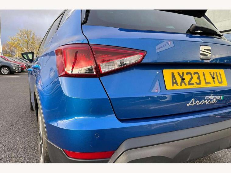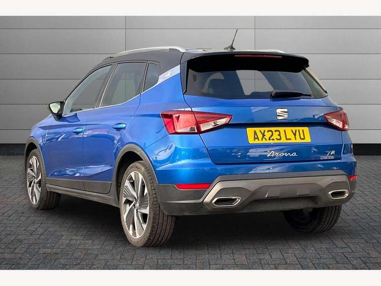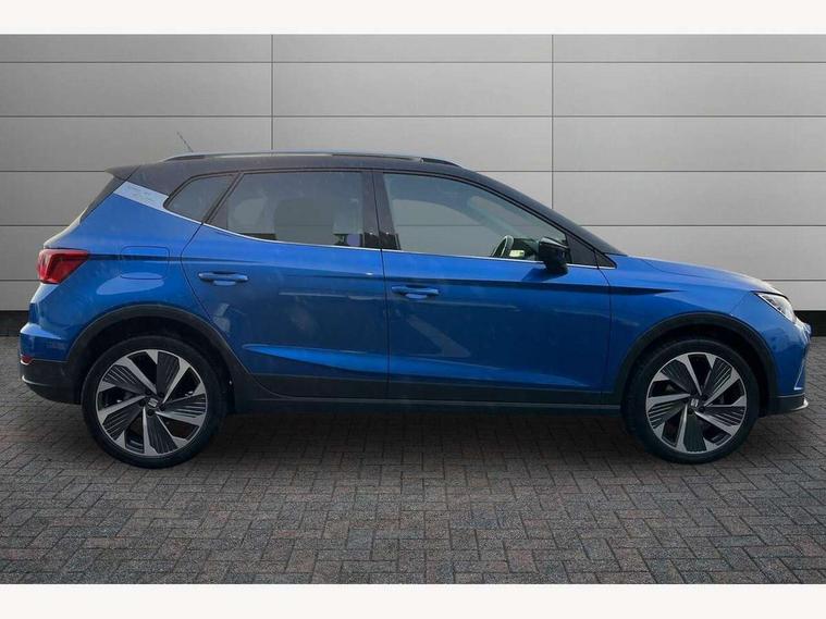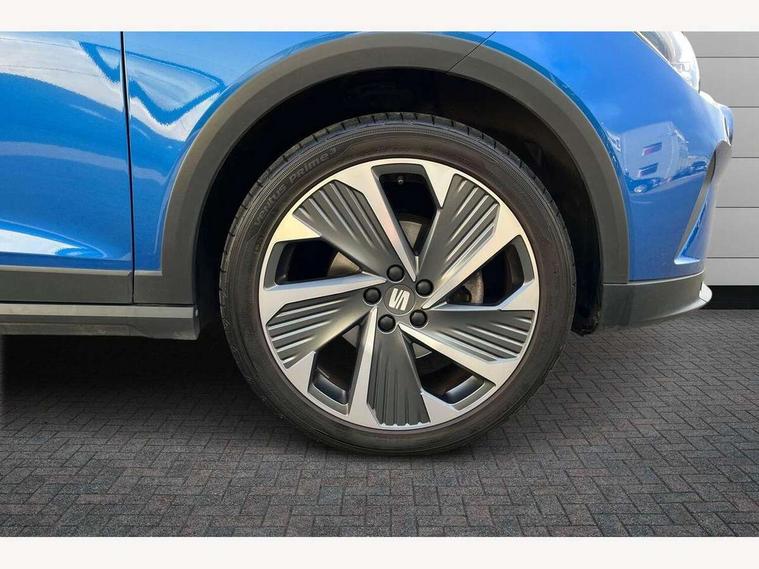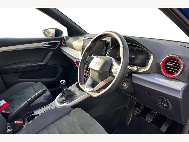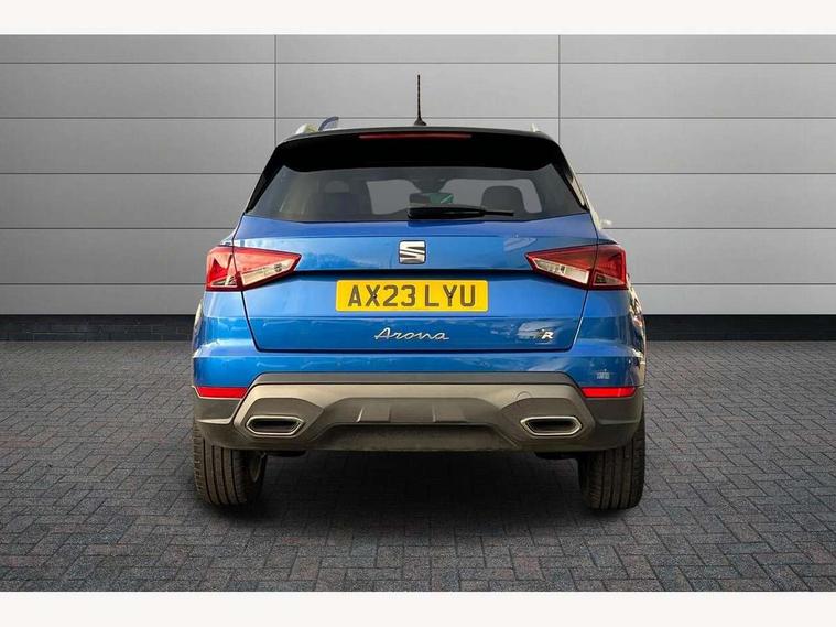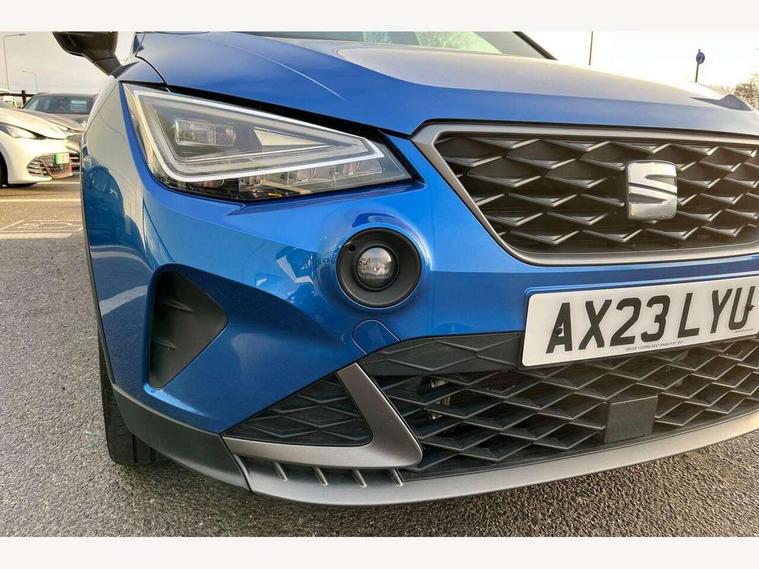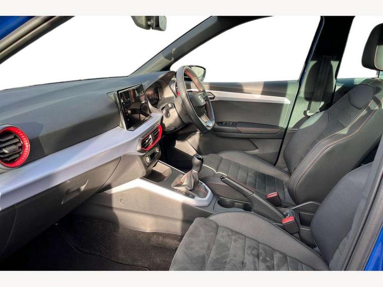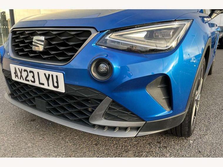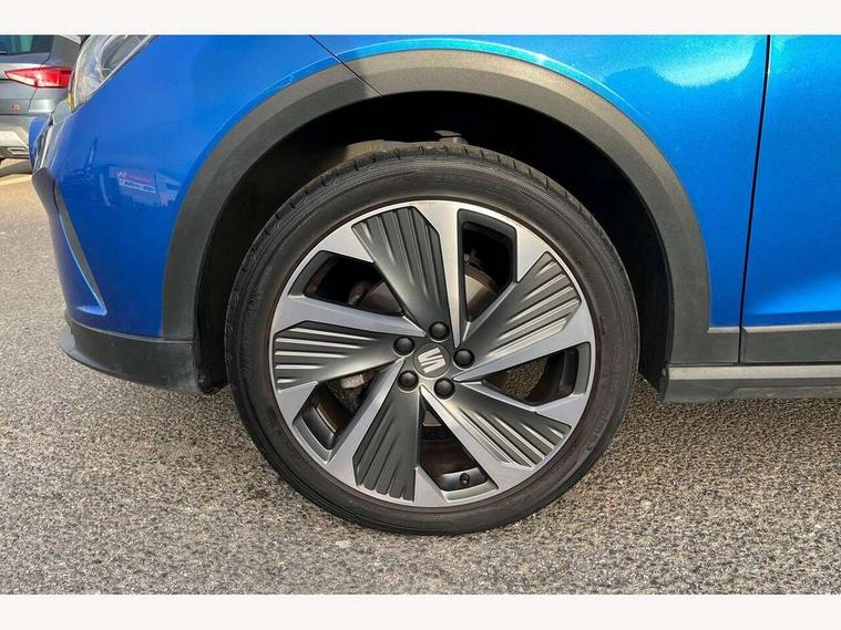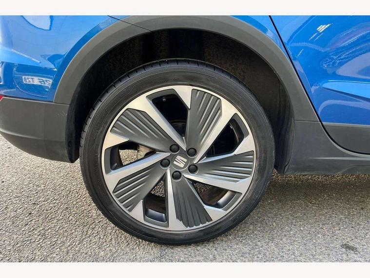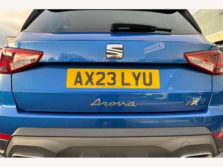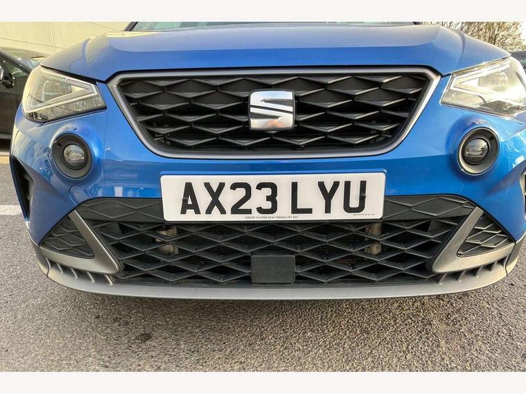 'Lights On' Reminder warning buzzer, 10" Digital cockpit, Digital clock, E-call, Electric speed sensitive power steering, Full Link Smartphone Integration with Mirror Link, Apple Car Play, Google Android Auto with USB Type C cable for Apple and Android compatibility, Low fuel warning light, Outside temperature display, Rear parking sensor, RPM counter, Seat connect with safety, service, remote and online, SEAT Drive profile - Four different models normal-sport-eco-individual, steering response, throttle response, Trip computer, Wireless phone charger, 9.2" colour touchscreen with navigation system, voice control and USB port (type c), Bluetooth interface for hands free and audio streaming, DAB digital radio and AM/FM radio, Steering wheel mounted audio controls, Anti theft roof antenna, Auto dimming interior rear view mirror, Automatic activation of hazard warning lights, Body coloured bumpers, Body coloured door handle inserts, Chrome roof rails and window surrounds, Dark tinted rear windows, Electric front/rear windows, Electrically adjustable, heated and folding door mirrors, Front fog lights with cornering function and rear fog light, FULL LED automatic headlights with dynamic headlight range control, coming and leaving home, LED daytime running lights, LED rear tail lights and licence plate lights, Protective side mouldings, Rain sensing wipers, Rear side wing doors, Rear spoiler, Rear window wash/wipe, Roof colour door mirrors, Third brake light, Twin exhaust pipe styling hidden exhaust pipe, Visible VIN plate, Windshield wiper with intermittent control and potentiometer, 2 cupholders, 3 seat bench in 2nd row, 60/40 split folding rear seat, Aircare filter, Black interior roof, Double boot floor, Driver sunvisor with covered mirror + card holder, Dual zone climate control, Front comfort seats, Front courtesy light with front reading lights, Front seat back storage pockets, Gear shift indicator, Heated front seats, Height adjustable front seats, Height/reach adjustable steering column, Illuminated boot, Instrument lighting with brightness control, Interior ambient lighting, Interior light in footwell, central console and door panel, ISOFIX points in outer rear seats with top tether anchorage points, Microsuede cloth upholstery, Passenger sunvisor with vanity mirror, Perforated flat bottomed leather steering wheel/gear knob/handbrake with red stitching and FR logo, Single front passenger seat, Two front and three rear height adjustable headrests, Interior chrome pack - Arona, 3 point seatbelts on all rear seats, ABS, Active front headrests, Child locks on rear doors, Driver and front passenger airbags with front passenger airbag de activation, front side and curtain airbags, Electronic stability control, Emergency Brake Assist (EBA) and front assist, Front and rear seatbelt reminder, Hill hold control, Multi-Collision braking, Tiredness recognition system, Traction control, Tyre pressure monitoring system, Alarm with back-up horn, Electronic engine immobiliser, Locking wheel bolts, Remote central locking + deadlocks, Tow away protection, Titan black dashboard, 18" Performance Cosmo grey matt alloy wheels,