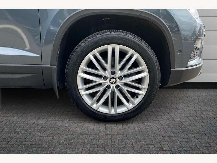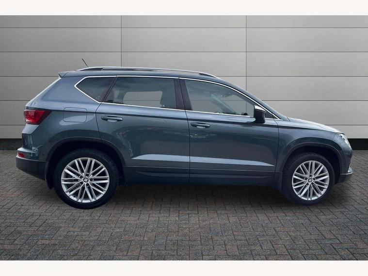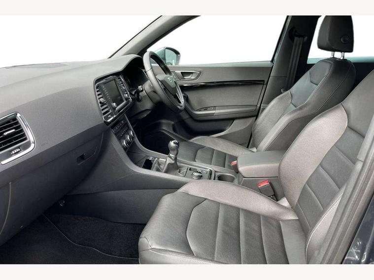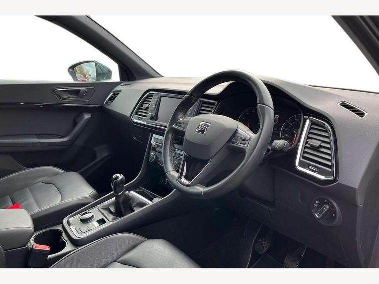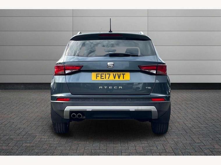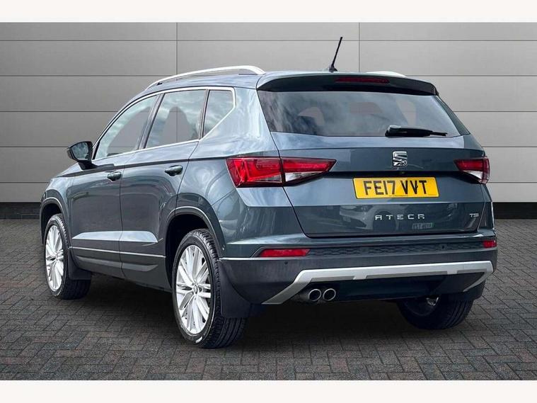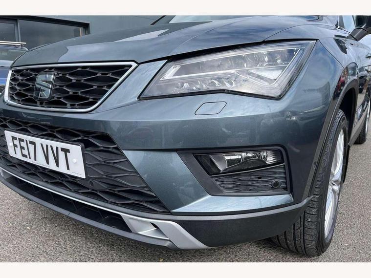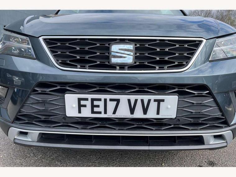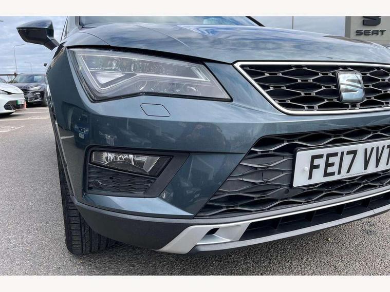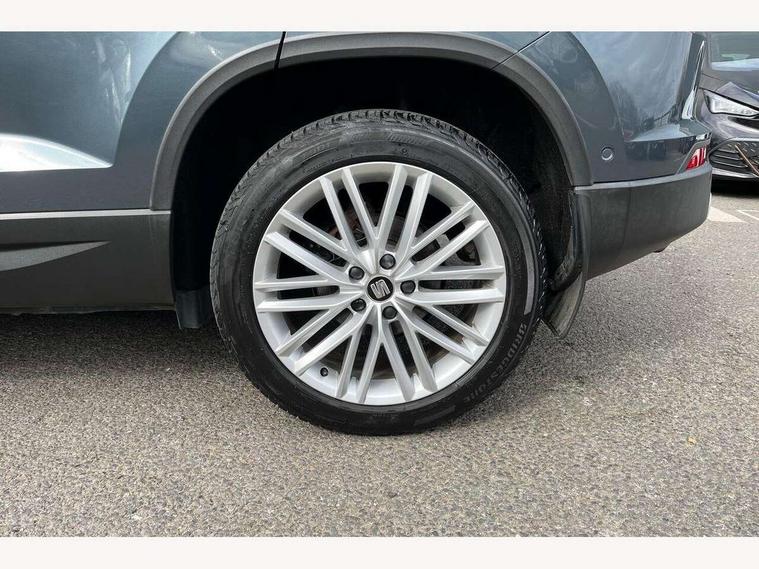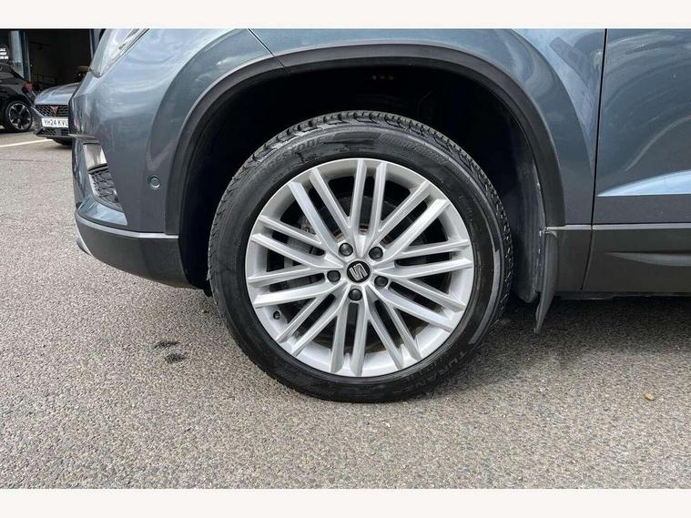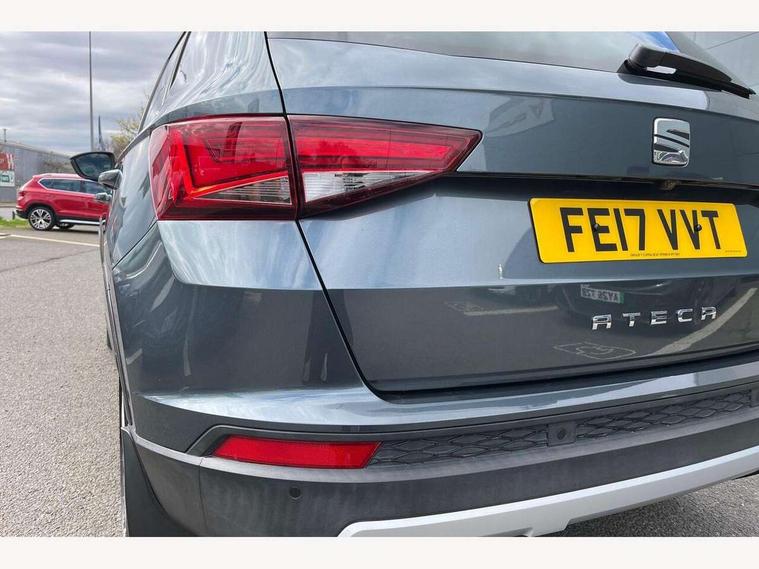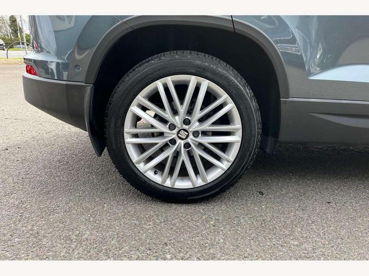 'Lights On' Reminder warning buzzer, Driver alert system, Full Link App interface, Low fuel warning light, Multi function display, Outside temperature gauge, Rear parking sensor, Rear view camera, Remote fuel flap release, SEAT Drive profile, SEAT logo boot release, Trip computer, Comfort suspension, XDS electronic differential lock, Steering wheel mounted audio/phone controls, Aluminium front door sills, Aluminium roof rails, Body colour bumpers, Body colour door handles, Body colour door mirrors, Chrome side window trim, Chromed centre radiator grille surround, Cornering front fog lights, Dark tinted rear windows, Electric folding door mirrors, Electrically adjustable and heated door mirrors, Front and rear electric windows, LED daytime running lights, LED Headlights, LED tail lights, Rear wash/wipe, Twin chromed exhaust pipes, Welcome lighting, 12V power point front, 3 height adjustable rear headrests, 60/40 split folding rear seat, Adjustable front armrest with storage compartment, Driver/passenger lumbar adjustment, Driver/passenger sunvisors with illuminated vanity mirrors, Dual zone climate control, Footwell illumination, Front cupholders x 2, Front reading lights, Front seat back storage pockets, Height adjustable driver's seat, Height adjustable front headrests, Height adjustable passenger seat, Illuminated boot, Illuminated glovebox, Isofix child seat preparation, Leather steering wheel and gear knob, Leather upholstery, Rear armrest, Rear central air outlet, Rear reading lights, Roof mounted sunglasses holder, Storage box under drivers seat, Convenience pack - Ateca, Seat Media System Plus pack - Ateca, Winter Pack - Ateca, 3x3 point rear seatbelts, ABS, Auto hold function, Automatic post collision braking, Curtain airbags, Driver/Front Passenger airbags, Drivers knee airbag, Electronic parking brake, Electronic stability control, ESP+EBA, Front and rear seatbelt reminder, Front assist including city emergency braking, Front passenger airbag deactivation, Front side airbags, Hill hold control, Predictive pedestrian protection, Tiredness recognition system, Traction control, Tyre pressure monitoring system, Immobiliser, Locking wheel bolts, Remote central locking, Volumetric alarm with back up horn, Chrome effect dashboard facia,