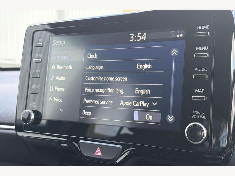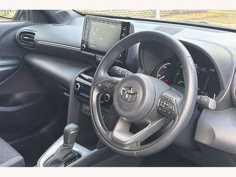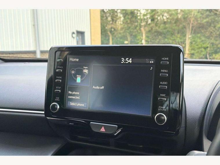 7" Multi information display screen, 8" Toyota touch 2 multimedia system with Smartphone integration with Apple CarPlay and Android auto, Adjustable speed limiter, Bluetooth connectivity, Driver attention alert system, eCall emergency system, Electric power steering, Full range intelligent adaptive cruise control, Hybrid system indicator, Key reminder warning, Lane trace assist, Multimedia, audio, telephone and voice recognition switches on steering wheel, My T Connected services, Pre-collision system enhanced with emergency steering assist, Reversing camera, Road sign assist - RSA, Steering assisted vehicle stability control, 6 speakers, DAB Digital radio, USB connection, 3rd brake light, Acoustic windscreen glass, Aluminium roof rails, Anti-jam protection on power windows, Auto high beam [AHB] with on/off switch, Automatic headlights, Black lower front grille, Black Shark-fin antenna, Black upper front grille, Black wheel arch mouldings, Body colour door handles, Body colour front bumper, Body colour rear bumper, Electric adjustable heated door mirrors, Follow me home headlights, Front and rear electric windows with auto up/down function, Front intermittent wipers, Headlight cut off reminder, Indicators integrated on door mirrors, Intermittent rear wiper, LED daytime running lights guide, LED front fog lights, LED front light guide, LED Indicators, LED projector headlights, LED rear light guide, Manual headlight levelling, Manually retractable door mirrors, Noise reduction layer on windscreen, Privacy glass, Rain sensor, Rear LED lights with sequential indicators, Rear side wing doors, Rear spoiler, Rear window defogger, 12v power outlet - front, 2x Rear coat hooks, 3 seat bench in 2nd row, 3 spoke leather steering wheel, 40:20:40 split folding rear bench seat, Adjustable speed limiter switch on steering wheel, Auto air conditioning, Black roof lining, Boot light, Central armrest, Centre console in light blue ambent lighting, Driver and front passenger personal lights, Fabric door trim, Fabric upholstery, Footwell in light blue ambient lighting, Front console box, Front cup holders, Front head restraints, Glovebox, Height adjustable driver's seat, Height adjustable front passenger seat, Hooks for luggage holding belts, Lane departure alert switch on steering control, Leather gearshift, Light blue ambient lighting on front doors, Manual telescopic and tilting steering wheel, Mirror on driver and passenger sun visor, Pollen air filter, Rear cup holders, Rear head restraints, Single front passenger seat, Soft tonneau cover, 3x3 point rear seat belts, ABS+EBD+Brake assist, Driver and passenger central airbags, Driver and passenger front airbags, Driver and passenger side airbags, Electronic parking brake, Emergency brake light system (EBS), Front seat belt reminder, Hill start assist control (HAC), ISOFIX child restraint system, Passenger airbag on/off switch, Pre-collision system with pedestrian and cyclist detection, Rear door child safety locks, Rear passenger side airbags, Rear seat belt reminder, Traction control, Tyre pressure warning system, Immobiliser, Intrusion alarm, Keyless smart entry with push button start, Power door locks, Power passenger window lock, Remote door lock, Tyre repair kit,
