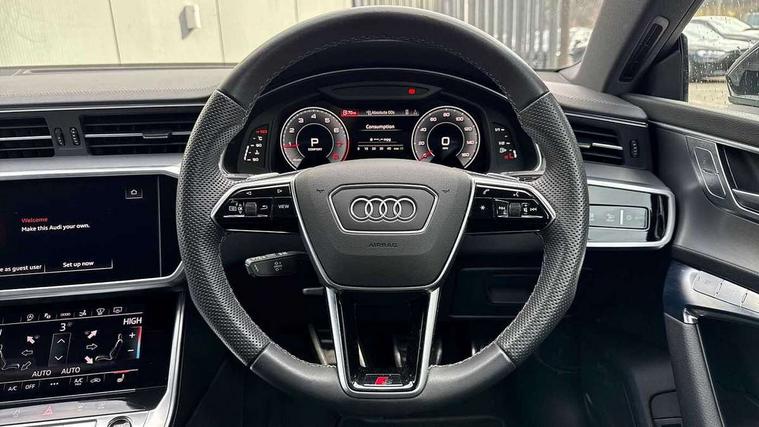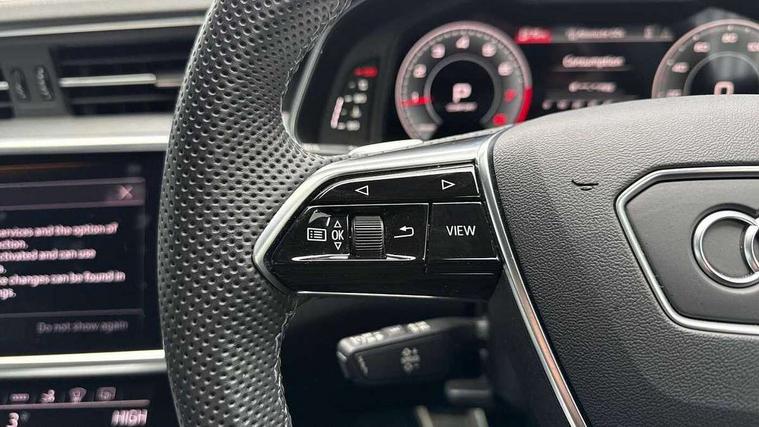 Audi connect safety and service (e-call), Audi connect with Amazon Alexa Integration, Audi drive select, Audi parking system plus - acoustic and visual park assist system for front and rear, Audi smartphone interface includes wireless Apple carplay/Android Auto, Audi virtual cockpit, Automatic start/stop system with coasting functionality, Bluetooth interface, Camera based traffic sign recognition, Colour driver's information system display, Lane departure warning system, MMI nav plus with MMI touch + 10.1" and 8.6" HD haptic touch screen/3D city models/country information/online map/route info and personal route assist, Operating buttons in black, glass look with haptic feedback, Progressive steering, Rear view camera, Service indicator, Voice control system, Quattro on demand, Sports suspension, Audi music interface, Audi sound system with 6 channel amplifier, 180 watt amplifying capacity and 10 loudspeakers including subwoofer, Auxiliary input socket, DAB digital radio module, Black rear diffuser with chrome inlays, Body coloured door mirrors, Electrically adjustable heated and folding + automatically dimming exterior mirrors with memory function, Frameless auto dimming interior rear view mirror, Front and rear electric windows, HD Matrix LED headlights, Heat insulating darkened glass in side and rear windows, High gloss black air inlets, High gloss black radiator grille with chrome single frame surround, LED rear lights with dynamic indicators, Privacy glass with side and rear windows, Rain and light sensors, Rear side wing doors, Rear wiper, Retractable rear spoiler, S Line front and rear bumpers, Signature LED daytime running lights, Towbar preparation, Windscreen with heat-insulating glass, 2 zone deluxe electronic climate control, 3 spoke high multi-function leather steering wheel with shift paddles, 4-way electric lumbar support, 40/20/40 split folding 3 seater rear seat bench with rear centre armrest, Audi phone box light, Black cloth headlining, Electrically adjustable front seats - driver seat with memory, Front and rear headrests, Front centre armrest, Heated front seats, Height/reach adjust steering wheel, Illuminated door sill trims with S logo, Illuminated sun visors with vanity mirrors, ISOFIX child seat mounting and top tether in front and outer rear seats with front passenger airbag deactivation, Leather gear knob, Leatherette upper instrument panel and door shoulders, Luggage compartment lid, electrically opening and closing, S line front and rear floor mats with contrast stitching, Single front passenger seat, Stainless steel pedals and foot rest, Tool kit, LED interior ambient lighting pack - A7, Non smoking pack - A7, S line exterior style pack - A7, 3 point seatbelts on all seats, Audi pre-sense front, Driver and passenger airbags, Electromechanical parking brake, Electronic stabilisation control including ABS, ASR and EDL, Extended pedestrian protection measures, Hill hold assist, Manual child lock in rear doors, Seatbelt monitoring, Tyre pressure warning light, Warning triangle and first aid kit, Anti theft alarm with tow away protection, Anti-theft wheel bolts and wheel loosening detection, Immobiliser, Keyless Go, Preparation for tracking system, Remote central locking, Dark matt brushed aluminium inlay,