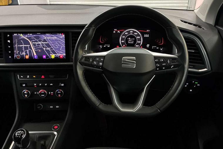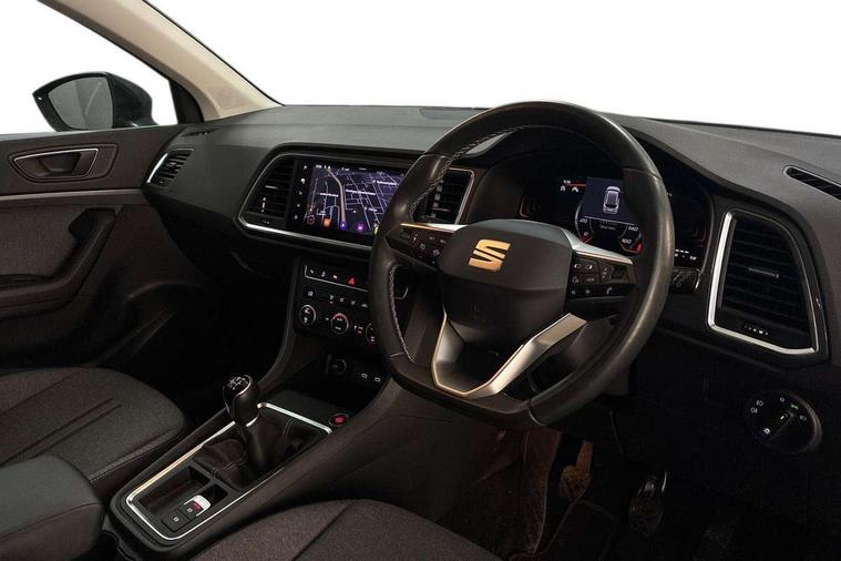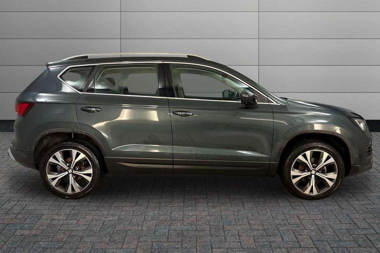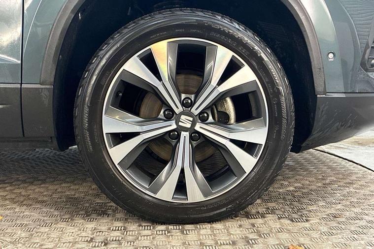 8" Digital cockpit, Colour multi-function on board computer display, Cruise control system with speed limiter, E-call, Outside temperature gauge, PAS, SEAT drive profile with driving experience button - Normal, Sport, Eco and Individual mode, steering and throttle response, Self parking functionality (includes front and rear parking sensors), Start/stop system, Tailgate, Trip computer, Wireless full link smartphone integration, Wireless phone charger, Steering wheel mounted audio/phone controls, Black wheel arch surrounds, Body colour bumpers, Chrome front grille frame, Chrome roof rails, Chrome side window trim, Daytime running lights, Door mirrors with welcome light silhouette, Dynamic headlight range control with self adjusting whilst driving, Electric adjustable/heated/folding door mirrors, Front and rear electric windows, Full LED headlamps with lens and LED front fog lamps with cornering function, LED rear tail lights with dynamic indicators, Rear fog lights, Rear side wing doors, Rear wash/wipe, Simulated exhaust pipes, Variable front intermittent wipers, 12V socket in front, 3 seat bench in 2nd row, 60/40 split folding rear seat, Cloth upholstery with front comfort seats, Drawer under right front seat, Dual zone climate control, Front and rear head restraints, Front centre armrest, Front seat back storage pockets, Height adjustable driver and passenger seat with lumbar adjustment, ISOFIX points in outer rear seats with top tether anchorage points, Leather steering wheel and gear knob, Rear armrest and easy back seat release mechanism from boot, Single front passenger seat, Interior lighting pack - Ateca, Navigation system pack with DAB - Ateca, 3x3 point rear seatbelts, ABS, Traction control system (TCS), Electronic stability control (ESC) and Electronic differential lock system (XDS), Airbags - Driver and front passenger airbag with deactivation, front side, two curtain and driver's knee airbags, Electric parking brake with auto hold function, Front and rear seatbelt reminder, Front assist with autonomous emergency braking, Hill hold control, Manual rear child locks, Single tone horn, Tiredness recognition system, Traction control, Tyre pressure monitoring system, Alarm, Keyless entry, Locking wheel bolts, Remote central locking, Chrome interior detailing, 18" Performance machined alloy wheels 36/2 in nuclear grey,