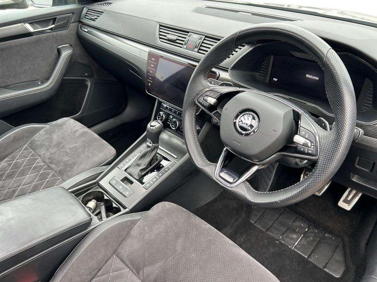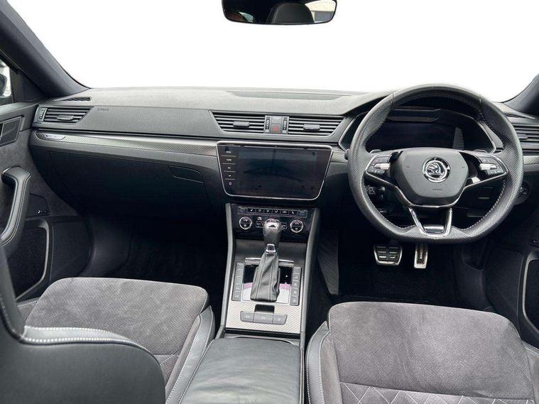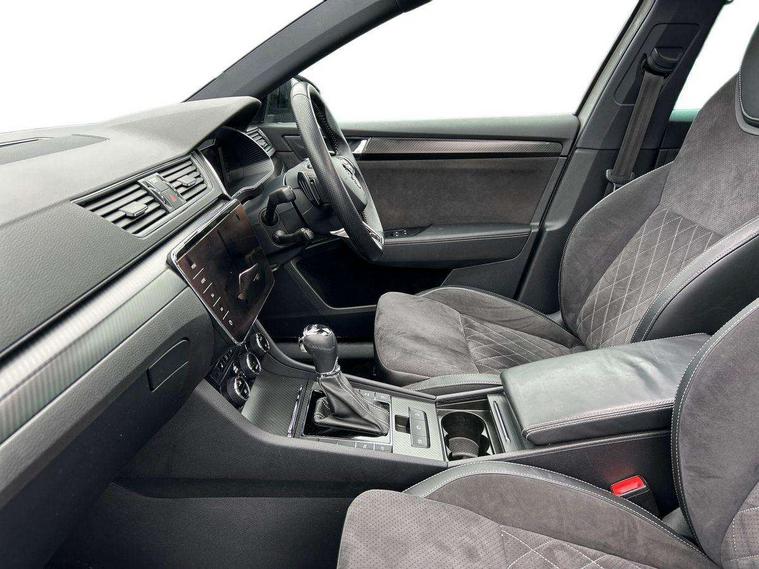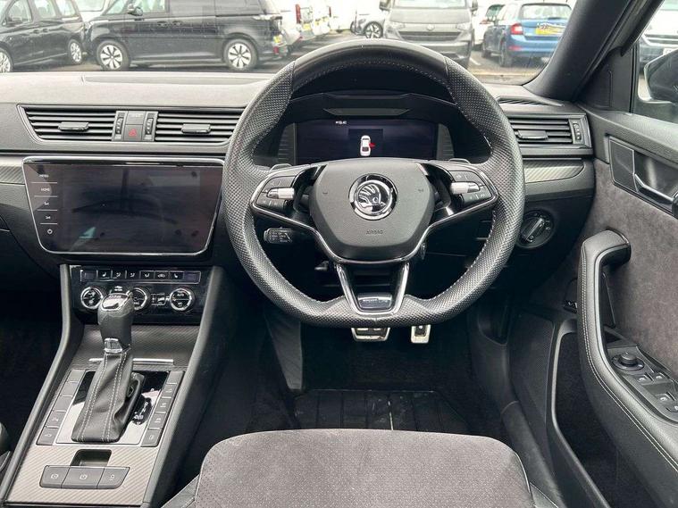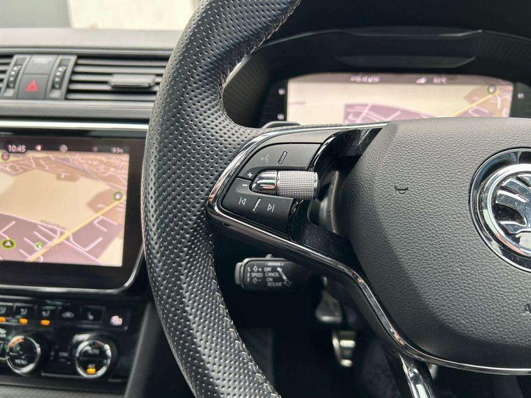Bluetooth system, CareConnect and Emergency Call, Columbus HDD satellite 3D map navigation with 9.2" colour touch screen, web radio, integrated Wi-Fi, Driver fatigue sensor, E mode button for electric/hybrid drive, Front assist with pedestrian protection, Progressive dynamic steering, Stop/start engine system and energy recovery, Unique iV instrument panel, Virtual cockpit, Voice control system, Wireless smartlink apple carplay, SmartLink+ android auto and mirror link connectivity, Dynamic chassis control, E-noise generator for electric drive with noise emitted upto speed of 50km/h, Two charging cables 16amp for wallbox/chargepoints (mode 3) and 10amp mains charge cable (mode 2), XDS+, 2 USB ports, Bolero radio with 8" touchscreen display, DAB Digital radio, Aero front windscreen wipers with intermittent function, Auto dimming rear view mirror, Black rear badge, Body colour door handles, Cornering front fog lights, Electrically adjustable heated and folding door mirrors with memory function, Front and rear electric windows, Full matrix LED headlights with AFS LED DRL integrated with headlight washer LED rear lights(High function), dynamic indicators and lighting animation, Gloss black exterior door mirrors with sports styling including front grill, side strip and window surrounds, Gloss black grille surround with gloss black rib elements, Gloss black rear spoiler, Gloss black strip between rear lights, Light assistant (coming/leaving home/tunnel light), Privacy glass, Rain sensor, Rear exhaust diffuser styling elements, Sport Line badging, Unique front grille with chrome-plated elements and charging socket cover, Unique iV badge on tailgate, 12v power point in centre console, 3 spoke leather multifunction sports steering wheel with silver stitching and DSG paddles, Alcantara/leather upholstery with silver diamond stitching sports seats, Black roof headlining, Black textile floor mats, Carbon optic interior elements, Front armrest with storage box, Height adjustable front and rear head restraints, Ice scraper, Illuminated and cooled glovebox, Interior lights with control switches, Isofix child seat fittings on outer rear seats, One umbrella compartments in driver door with one umbrella in drivers door, Overhead glasses storage compartment, Rear centre armrest with cupholders, Removable parcel shelf, Split folding rear seats, Sport button for hybrid drive delivering maximum system performance, Storage compartment for charging cables under the luggage compartment mat, Storage compartment with cover in luggage compartment side panels, Sun visors with illuminated vanity mirrors, Ticket holder on A Pillar, LED package plus - Superb, 3 rear seatbelts, 7 airbags - Front, front side, curtain, driver's knee airbag with front passenger deactivation switch, Driver and passenger seatbelts with warning light, Electronic parking brake, ESC including ABS, EBV, MSR, ASR, EDS, HBA, DSR, RBS, CBC, multi-collision brake (MKB) and Auto hold, Tyre pressure monitor, Alarm with interior monitoring tilt sensor and back up horn, Electronic engine immobiliser, Keyless entry and start/stop, Remote central locking with SAFE system, Third remote key, Unique decorative door sills front and rear, Tyre repair kit,