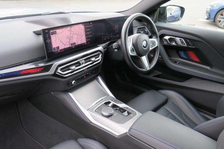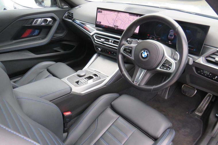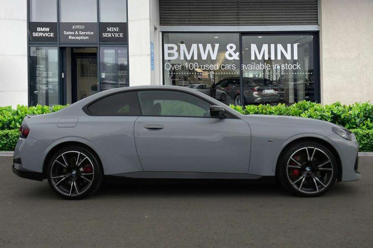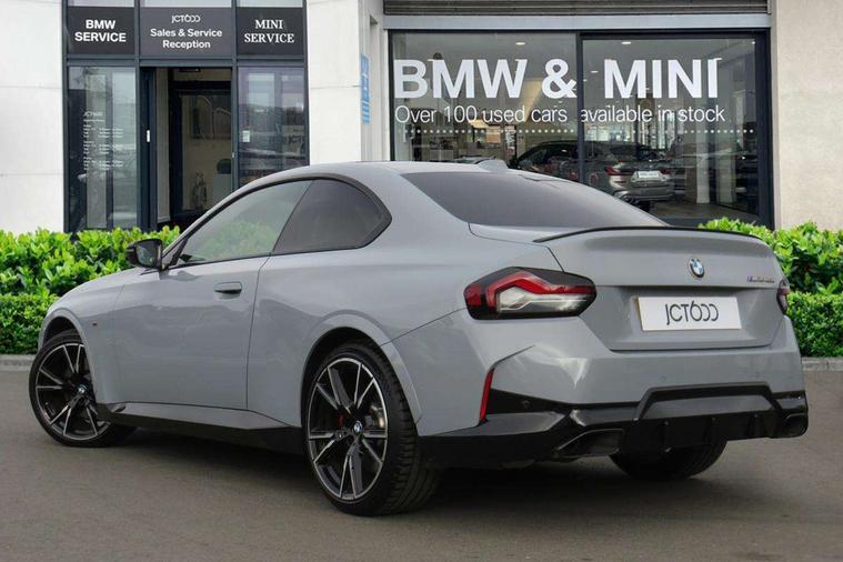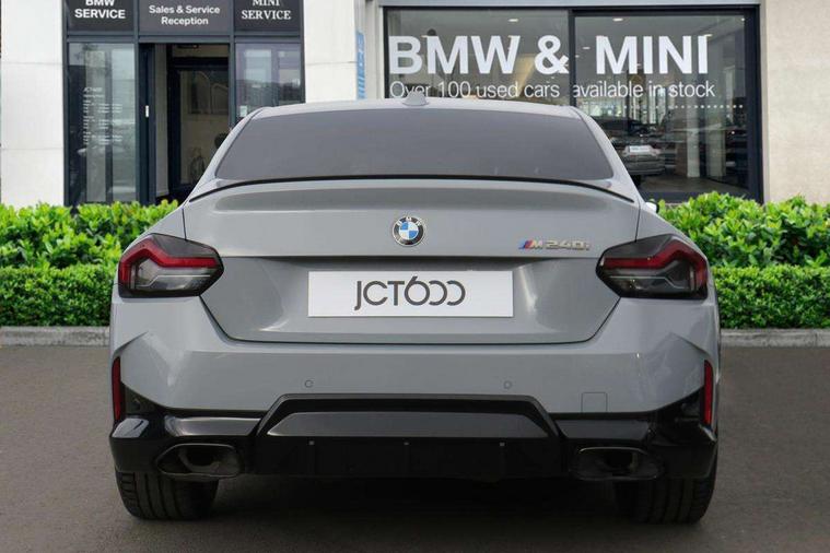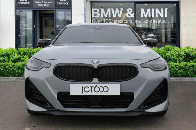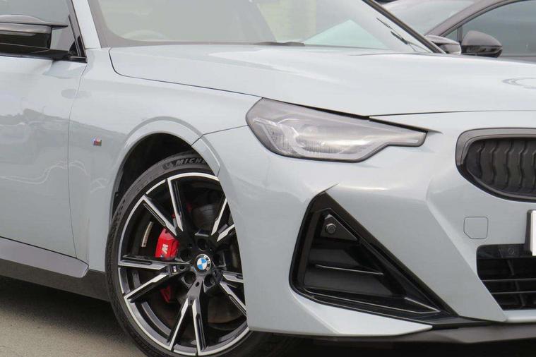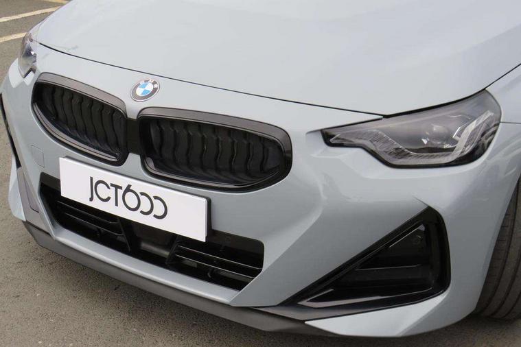 Attentiveness assist, Auto start-stop, Bluetooth, BMW ConnectedDrive online services, BMW Teleservices, Check Control warning system for monitoring of lights and door/luggage compartment open warning, Direct selection buttons, Drive off assistant, Driving experience switch with sport+ mode, Eco pro mode, Electric power steering, Front and rear parking sensors, Front/rear Parking distance control, iDrive controller with turn and press function, Integrated owners handbook, Intelligent functions, Live cockpit plus with nav function 12.3" instrument cluster and 14.9" centre display, Oil sensor for level and grade, Optimum shift indicator, Personal Profile, Touch operation on control display, Variable sport steering, Widescreen multi-media display, Aluminium lightweight construction, Balancer shaft, BMW TwinPower Turbo inline 6-cylinder petrol engine, Double VANOS, Drive performance control with ECO PRO comfort + sport mode, High precision injection, M Sport differential, Petrol Particulate Filter, Sport automatic steptronic transmission with gearshift paddles, manual gearshift time display, launch control, coasting idle ECO PRO/COMFORT modes, Twin scroll turbocharger with Valvetronic, xDrive with rear orientated application, DAB tuner, Acoustic windscreen wipers for reduced driving noise, Adaptive LED Headlights, Automatic windscreen wipers and automatic headlight, Automatically dimming rear view mirror, BMW individual lights shadow line, Body colour door handles flush with door surface, Body colour front and rear bumpers, Daytime running lights, Electric windows - front and rear, with open/close fingertip control and trap release, Exhaust tailpipes x2 - free form finisher in high gloss black in left and right, Exterior air inlets in front bumper with embellishers in high gloss black, Fading support, Flap controlled M Sport exhaust system, Front and rear bumper system with replaceable deformation elements, Front door sill finishers in black plastic with BMW designation, Front ornamental grille frame in high gloss black, Front windscreen wipers with integrated washer jets, Green tinted heat protection glazing, High beam assistant, High gloss black exterior M mirror caps, High gloss shadowline exterior trim in mirror triangle cover, mirror cover panel, mirror bezel and window border, High level third brake light, Indicators integrated int mirror housing, LED registration plate light, LED technology rear tail lights, brake lights and turn indicators, Lightweight engineering, M Sport spoiler - Gurney in body colour, Model designation and M badges in cerium grey, Model designation on right side of tailgate, Rear boot, Rear fog lights, Reversing light in rear light cluster, Shark fin antenna, Side frame decorative moulding black high gloss, Single part LED rear lights with smoked glass components, Sun protection glass, Trailer stabilisation logic, Visible VIN plate, xDrive designation on left tailgate, 12V power socket in front centre console with blanking plug, 2 cupholders in front centre console, 3 zone automatic air conditioning, Ambient lighting, Compartment in front of cupholder, Conditioned based service, Driver seat backrest width adjustment, Electric front seat adjustment with driver memory, Front and rear side armrests integrated into door trim, Front armrest, Front door pockets, Front head restraints, Front M Sport seats, Front passenger seat lumbar support, Heated front seats, Illuminated glove compartment with separate small compartment, Lumbar support for driver, M headliner Anthracite, M sport leather steering wheel, M240i badge in instrument cluster, Manually adjustment steering wheel column, Rear seat backrest with manual 40:20:40 split folding, Rear seat centre foldable armrest with integrated cup holder, Single front passenger seat, Storage compartment between rear seats, Storage tray and compartment with cover in centre console, Sun visors with vanity mirrors and insert tab, Through loading system with 40/20/40 split folding 2 rear seat in 2nd row, Two folding rear seat headrests, Velour floor mats, Vernasca leather upholstery, Additional storage compartment pack without USB - 2 Series Coupe, Connected pack professional - 2 Series Coupe, Interior and exterior mirror pack - 2 Series Coupe, M Sport exterior styling aerodynamics pack - 2 Series Coupe M240i, 2 tone horn, Anti lock braking system (ABS) with cornering brake control, Automatic Stability Control (ASC), BMW emergency call, Brake drying, Child seat ISOFIX attachment for the two outer rear seats, Crash sensor activating of airbags, Unlocking doors, hazard warning lights, interior light, safety battery terminal, Deactivation of fuel pump in the event of a crash, Driver and front passenger airbags, Driver and front passenger side airbags, integrated in the door side seat backrest bolsters for all seat variants, Dynamic brake control, Dynamic stability control + (DSC+), Dynamic Traction Control - DTC, Electrically operated hand brake including automatic hold function and automatic release when driving off, Front and rear disc brakes, Front passenger airbag deactivation, Head airbags for all 4 outer seats, M seat belts, M Sport brake with red calipers, Manual deactivation of front passenger airbag, Seat belt security check for driver and front passenger, Seatbelt warning, Side impact protection, Three point seat belts on 4 seats including front belt stopper, pyrotechnic belt tensioners and belt force limiters, Tyre pressure sensor, Warning triangle and first aid kit, Alarm system (Thatcham 1) with remote control and electronic engine immobiliser, Central locking switch for all doors, fuel filler cap and luggage compartment, Deadlocking function system to all doors, Drive away locking system on all doors and luggage compartment, Locking wheel bolts, Start/Stop button (illuminated) in centre console with keyless engine start and Auto Start-Stop deactivation button, Two remote control key with integrated key - one button for ope