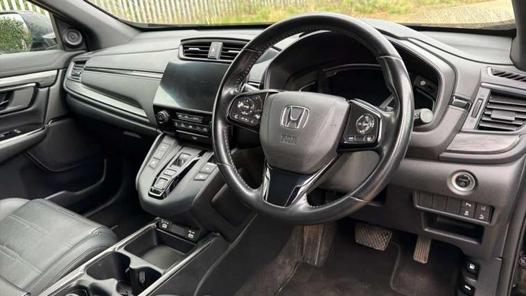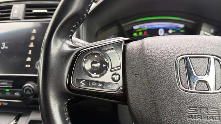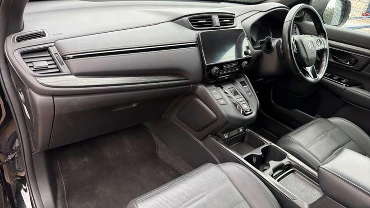 Adaptive cruise control, Agile handling assist, Bluetooth hands free telephone connection, Economy mode, Electric power steering, Emergency stop signalling system, Forward collision warning, Front and rear parking sensors, Honda CONNECT with GARMIN Navigation + 7" touchscreen, DAB radio, Apple CarPlay, Android Auto, Aha app integration and internet browsing, Intelligent multi info display, Lane departure warning system, Lane keep assist system, Low speed following, Rear view camera, Road departure mitigation, Speed limiter, Traffic sign recognition, Vehicle stability assist, 2 USB sockets in rear, 2x USB sockets in front, 9 speakers, DAB Digital radio, Dashboard centre speaker, Front tweeters, Steering wheel mounted controls, Subwoofer, Aspheric door mirrors, Auto dimming rear view mirror, Automatic headlights with dusk sensor, Black mirror caps, Body colour bumpers, Body colour door handles, Dark chrome grille, tailgate, front and rear bumper garnish, Door mirrors tilt when reversing, Electric front windows/one touch facility, Electric rear windows + one touch facility, Electrically adjustable and heated door mirrors, Electrically retractable door mirrors, High beam assist, LED daytime running lights, LED front fog lights, LED Headlights, LED rear lights, Pearlescent paint, Rain sensor, Rear privacy glass, Rear wiper, Shark fin roof aerial, Tailgate spoiler, Welcome home function, 60/40 split folding rear seat, Accessory sockets, Black edition embossed seats, Black headlining, Cargo hooks, Courtesy lights, Driver's electric adjustable lumbar support, Driver/passenger front seatback pockets, Driver/passenger sunvisors with illuminated vanity mirrors, Dual zone automatic climate control, Front centre armrest, Front map lights, Height adjustable driver's seat, Hybrid emblem, Illuminated glovebox, Isofix child seat preparation, Leather steering wheel, Leather upholstery, Paddle shift controls, Piano black interior door handles, Piano black shift knob, Piano black steering wheel, Rear air vents, Rear centre armrest, Rear headrests, Rear reading lights, Rear seat conversation mirror, Sunglasses holder with mirror, Tilt/telescopic adjustable steering wheel, Tonneau cover, Trunk light, 5 x 3 point seatbelts, ABS/EBD, Anti-whiplash front headrests, Brake assist function, Collision mitigation braking system, Deflation detection system, Driver airbag, Electronic parking brake with auto hold, Front and rear curtain airbags, Front and rear seat belts with emergency locking retractor (ELR), Front side airbags, Hill start assist, Passenger airbag deactivate switch, Honda super locks, Immobiliser, Security alarm, Smart entry + Smart start, Ultrasonic security sensor, Dark wood trim, 18" Black alloy wheels, Tyre repair kit,