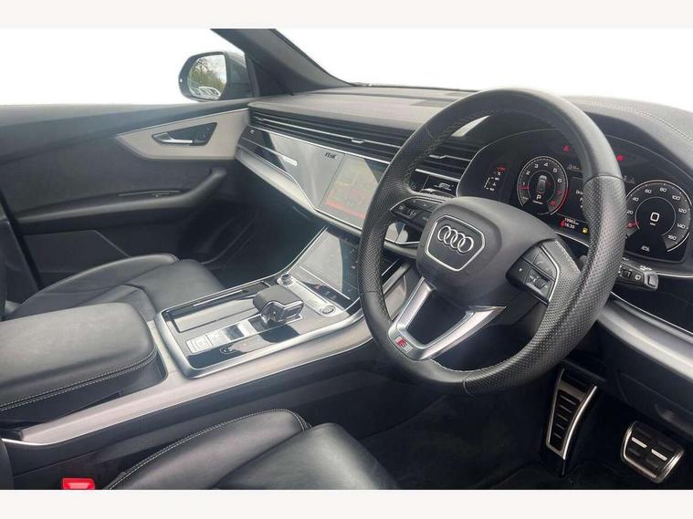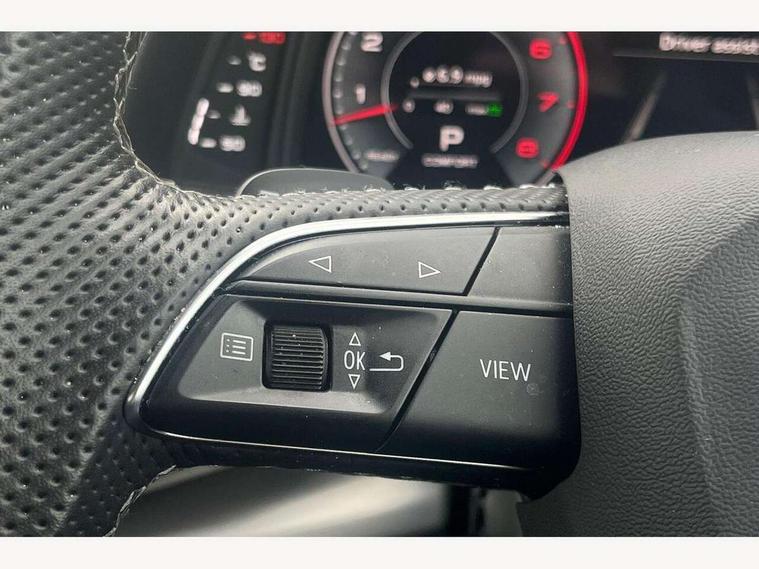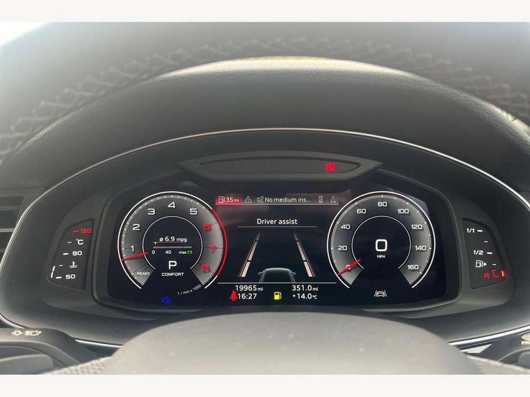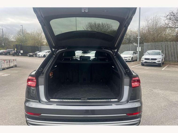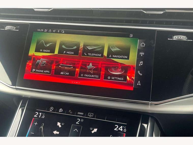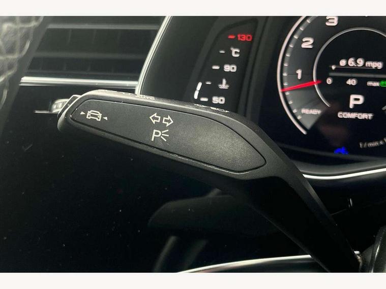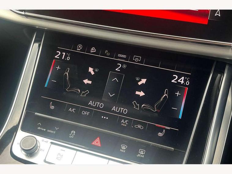 10.1" and 8.6" Dual colour touchscreens, Audi connect safety and service (e-call), Audi connect with Amazon Alexa Integration, Audi drive select, Audi parking system plus includes 360 degree display with front and rear sensors, Audi phone box light with wireless charging, Audi virtual cockpit - 12.3" high resolution LCD display with fully customisable instrument cluster, Automatic start/stop system, Electro-mechanical PAS, Low washer fluid indicator, MMI - Multi Media Interface control system, MMI navigation plus with MMI touch, Natural voice recognition, On board computer, Operating buttons in black, glass look with haptic feedback, Power operated tailgate, Rear view camera, Service interval indicator, Smartphone interface includes wireless Apple carplay/Android Auto, 48V Mild hybrid technology, 85 litre fuel tank, Adaptive sport air suspension, Quattro all wheel drive with self locking centre differential, Audi music interface with 2 USB ports with charge and data functions, Audi sound system with 6 channel amplifier, 180 watt amplifying capacity and 10 loudspeakers including subwoofer, Aux-in socket, DAB Digital radio, 3rd brake light, Acoustic windscreen, Aluminium window trim, Audi HD Matrix LED headlights with dynamic front and rear indicators, Auto dimming frameless rear view mirror, Body colour door mirrors, Coming/leaving home lighting function, Electric front+rear windows, Electrically folding auto dimming/adjustable/heated door mirrors with memory function, LED side indicators and kerb view function for passenger side, Headlight washers, Heat insulating glass in windshield, Illuminated door sill trims with S line logo, LED signature daytime running lights, Platinum grey front spoiler lip and diffuser insert with honeycomb grille in black, Privacy glass - dark tinted rear and rear side windows from B-pillar backwards, Rain and light sensors, Rear side wing doors, Rear wiper, S line badges on front wings, S Line body styling, S line bumpers in full body colour paint finish, S line roof spoiler, S Line side skirts, S line side ventilation grille, 2 zone automatic climate control, 3 bench rear seats in 2nd row, 4-way lumbar support for front seats, 40:20:40 split folding rear bench seat, Audi phone box light, Black cloth headlining, Comfort front centre armrest, Driver seat memory function, Electrically adjustable front seats, Front head restraints, Front/rear floor mats, Heated front seats, ISOFIX child seat mounting for front passenger seat and 2 outer rear seats with top tether child seat mounting for all 3 rear seats, LED interior ambient lighting, Luggage compartment sill protection in stainless steel, Rear centre armrest with 2 cupholders, Rear headrests, Seat cushion displaceable by 100mm in the ratio 60:40, Single front passenger seat, Stainless steel pedals, Sunvisors with illuminated vanity mirrors, 3 point seatbelts on all seats, Audi pre sense front, Child locks on rear doors, Driver and front passenger, front side and curtain airbags, Electromechanical parking brake, Electronic Stability Control (ESC) including ABS, ASR and EDL, Front passenger airbag deactivation, Hill descent control, Hill hold assist, Predictive pedestrian protection, Seatbelt monitoring, Traction control, Tyre pressure loss indicator, Warning triangle and first aid kit, Anti theft alarm with tow away protection, Anti-theft wheel bolts and wheel loosening detection, Immobiliser, Keyless go with remote central locking, Dark matt brushed aluminium inlay, Tool kit, Tyre repair kit,