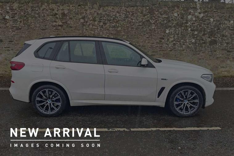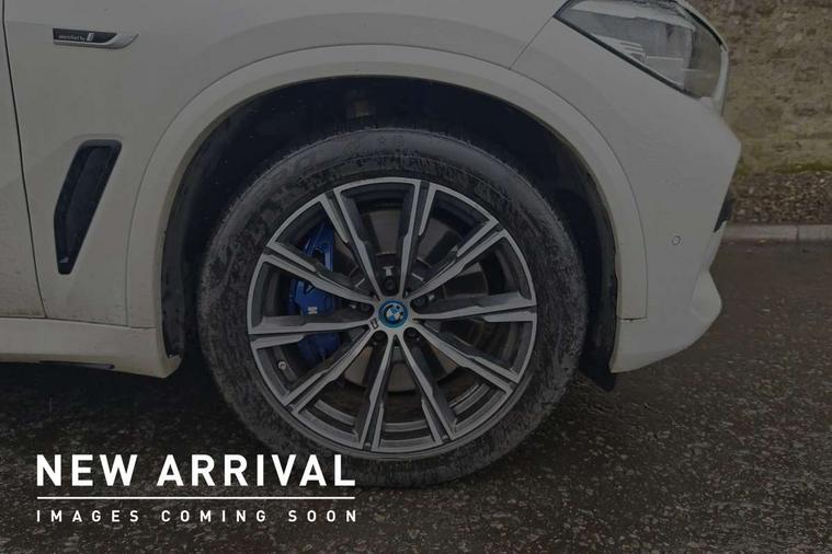 20GB hard disc drive (HDD) memory, Active guard plus, Attentiveness assist, Automatic tailgate with top hinged section open and manual bottom hinged section, BMW ConnectedDrive online services, BMW digital live cockpit professional - 12.3" digital instrument panel and 12.3" CID, with touch/voice command, BMW legal emergency call, BMW Teleservices, Brake force display, Brake pad wear indicator warning light, Cruise control with brake assist, eDrive button to select between AUTO eDrive, MAX eDrive and SAVE Battery settings, Front/rear park distance control, Lights on warning, Oil sensor for level and grade, On board computer inc. average speed, fuel consumption, liquid crystal Info display, journey computer, outside temperature display, personal profile, Service interval indicator, Speed limit info display, Speed limiting function, 5 metre AC Fast charge cable, Adaptive 2-axle air suspension, Double VANOS, Double wishbone front axle, Drive performance control with ECO PRO comfort + sport mode, eDrive exterior sound, Eight speed steptronic sport automatic transmission and gearshift paddles on the steering wheel, High precision injection, Petrol Particulate Filter, Safety battery terminal clamp, Standard Charging cable (Mode 2) for home socket, Twin scroll turbocharger with Valvetronic, DAB Tuner enables digital radio reception, Favourite buttons, USB connection, USB type A 1.5A in cupholder, USB Type C 3A in centre armrest, Active Air Stream kidney grille with high-gloss chrome, Adaptive air flap control bar in high-gloss black, Automatically dimming rear view mirror, BMW Individual high gloss black shadow line roof rails, Body colour bumpers, Body colour door handles, Dynamic brake lights with LED technology, Exhaust tailpipes - single, left and right with Chrome finisher, Follow me home headlight function, Front and rear electric windows with open and close fingertip control, anti trap facility and comfort closing, Heated windscreen washer jets, High beam assistant, High gloss black outer and central air intakes on front bumper with pearlescent chrome finish, High gloss black Side elements, LED daytime running lights, LED rear lights, Left charging flap on the front side, M aerodynamic body styling, M designation on left and right front side panels, Pearlescent chrome front grille bars, Rain sensor with automatic headlight activation and windscreen wiper control, Rear side wing doors, Satin aluminium side window graphic, Third brake light in rear spoiler, Variable intermittent rear wash/wipe, Welcome light carpet, X5 on left tailgate, xDrive designation on right tailgate, 12V - Power sockets with 2x centre console and 1x luggage compartment, 3 seat bench in 2nd row, 40:20:40 split folding rear seats, Ambient interior lighting with 6 pre-designed selectable lights including dynamic function, Centre and rear interior light, Child seat ISOFIX attachment with rear outer seats includes top tether, Compartment in front of cupholder, Electric front seat adjustment with driver and front passenger memory function, Electrical steering column with adjustable height and length with activation and control on the steering column, Foldable rear centre armrest with 2 cupholders and storage compartment, Front and rear cupholders x 2, Front and rear door pockets, Front and rear door sill inlays with illuminated BMW M designation, Front and rear side armrest integrated into door trim, Front footwell lights, Front reading lights, Light inside glove compartment, Lockable glove compartment, Luggage compartment floor panel with integral storage tray, Luggage compartment lighting, M leather steering wheel, M specific key, M specific pedals, M specific steering wheel, M specific velour floor mats, Make-up mirror lights, Multifunction controls for leather steering wheel, Multifunctional hooks, Rear head restraints, Seat back with flap pocket, Securing rings in luggage compartment, Storage bins on all doors, Storage tray and compartment with cover in centre console, Sunvisors with illuminated vanity mirrors, Toolkit located in luggage compartment, Connected Package Professional - X5 xDrive45e, Expanded exterior mirror pack - X5/X5 M, Non-smokers pack - X5, Airbags - driver/front passenger, rear and side, first and second row seats head airbags, front passenger seat airbag deactivation + knee airbag, Anti-lock braking system (ABS), Automatic Stability Control (ASC), Brake drying, Brake energy regeneration, Brake fade compensation, Braking pre-tensioning, Child proof locking system in rear door, Cornering brake control (CBC), Crash sensor activating central locking release, hazard warning lights, fuel cut off, interior lighting + activation of safety battery terminal clamp, Deformation zones - front and rear with door reinforcements and bumpers up to 2.5 mph, DSC - Dynamic Stability Control, Dynamic brake control, Dynamic Traction Control - DTC, Electromechanical parking brake with automatic drive away release and auto hold function, Electronic brake force distribution, Front and rear seatbelts with seatbelt stopper, seatbelt tensioner for front and outer rear seats and belt force limiter, Front head restraints with anti-whiplash, Height adjustable front seatbelts, Hill start assistant, Integrated brake system, M Sport braking system in blue high gloss + blue painted brake calipers with M designation, Mechanical child proof lock on rear doors, Passive protection for pedestrians, Seat occupancy detection for driver and passenger side, Side impact protection, Three 3 point inertia reel seatbelts, Two tone horn, Tyre pressure monitoring system, Ventilated front and rear disc brakes, Warning triangle and first aid kit, Closing system with central locking, Driver and front passenger door centre lock switch, Locking wheel bolts, Thatcham 1 alarm system with remote control and engine immobiliser, Start/stop toggle diamond shaped trim finisher in pearl chrome,