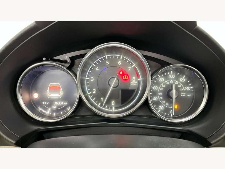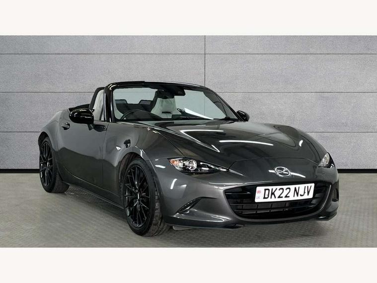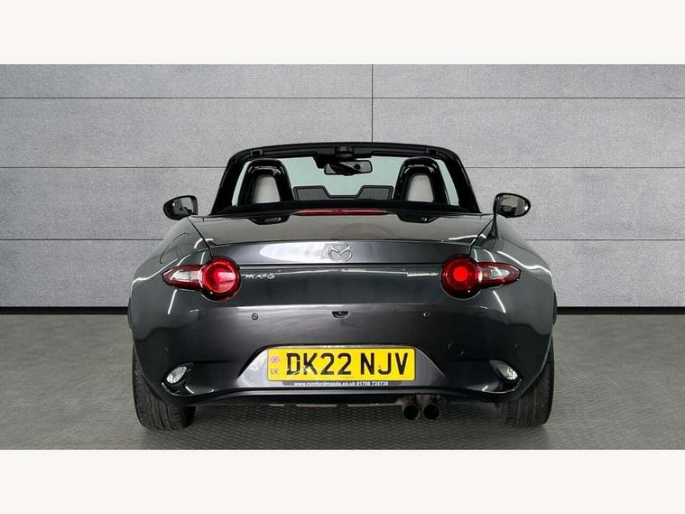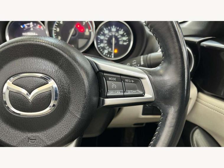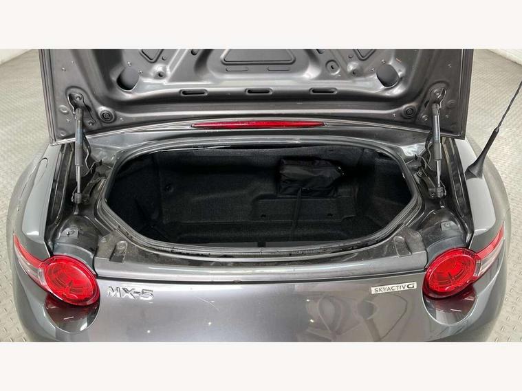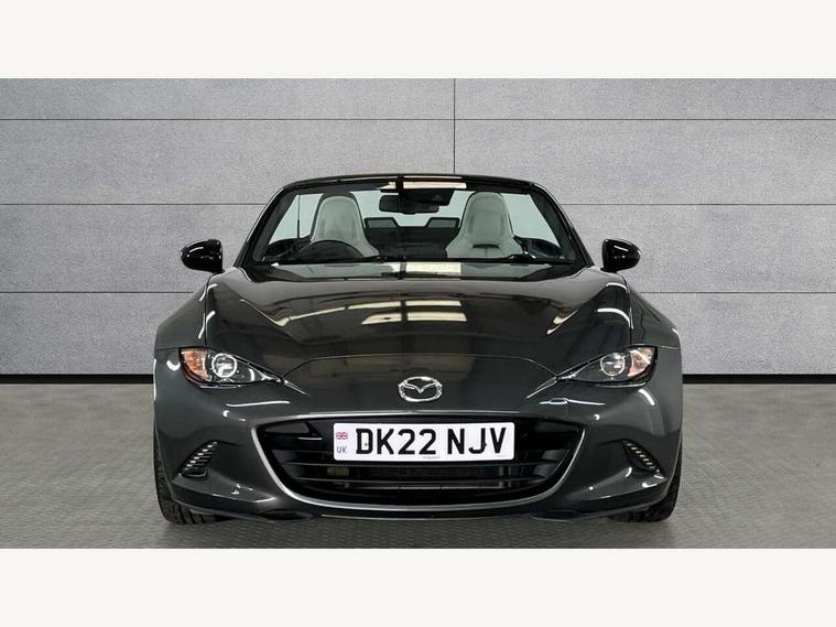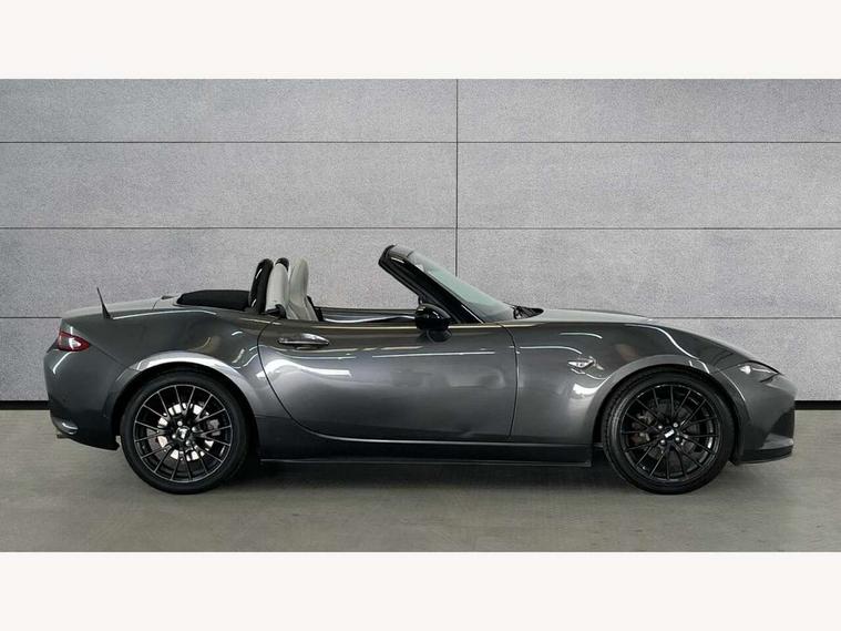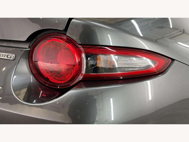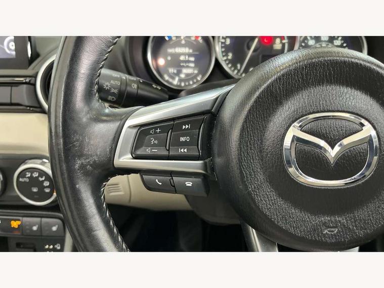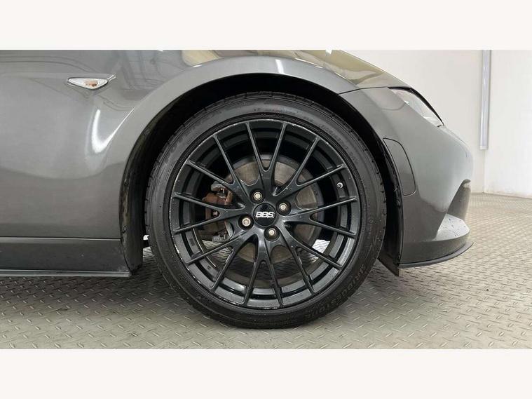 7" colour touch screen with Mazda connect infotainment, Aha and stitcher app, Analogue speedometer, Apple car play/Android Auto, Blind spot monitoring with rear cross traffic alert, Cruise control + speed limiter, Driver alert system, eCall emergency call system, Emergency stop signalling system, Engine start/stop button, Hands free phone preparation, Integrated bluetooth with hands-free calling, bluetooth audio and easy access to phone contacts, Integrated navigation system, Lane departure warning system, Multi dot display tachometer and electric odometer, PAS, Rear parking sensor, Reversing camera, Service indicator, Traffic sign recognition, Trip computer, Water temperature gauge, I-ELOOP, i-stop, Limited slip differential, Sports suspension featuring Bilstein dampers, 2 USB/aux input socket, Multimedia Commander including separate volume dial, Premium Bose sound system with 9 speakers with 2 in each front headrest, AM/FM/DAB radio and MP3, Steering wheel mounted audio/bluetooth controls, Adaptive LED Headlights, Auto dimming rear view mirror, Automatic headlamp levelling, Body colour bumpers, Body colour co ordinated interior upper door trim, Coming/leaving home lighting function, Dual exhaust pipes, Dusk sensitive headlamps, Electric front windows/one touch facility, High mounted rear brake light with Black coloured cover, LED 3rd brake light, LED daytime running lights, LED indicator lights, LED rear lights, Manually operated black premium cloth soft top with heated rear glass window, Piano black electric/heated door mirrors, Piano Black fashion bars, Rain sensing front wipers, Stainless steel scuff plates with MX-5 logo, 12V socket, Centre console storage box, Chrome Air conditioning dials, Climate control air conditioning, Coin Box, Driver and front passenger sunvisors with covered vanity mirror and driver ticket holder, Driver seat manual slide, recline and tilt adjustment, Front centre armrest, Front head restraints, Gear shift indicator, Heated front seats, in 3 heat levels, Interior courtesy light, ISOFIX front passenger seat child seat compliance, Leather gear knob, Leather handbrake lever, Leather steering wheel, Lockable rear centre box with lid, Passenger seat + manual slide/recline adjust, Perforated nappa leather upholstery, Side door trim in light stone vinyl with light stitching, Single front passenger seat, Sports seats, Strut brace, Tilt/telescopic steering column, Two cupholders, Windblocker, 3 point ELR front seatbelts with pretensioners, ABS+Electronic Brake force Distribution, Deployable Hood System (DHS), Driver and front passenger airbags, Driver and passenger seatbelt reminder audible warning, Front dynamic yaw stability control, Hill hold assist, Passenger airbag deactivate switch, SCBS - Smart City Brake Support, rear plus front with autonomous emergency braking, Side airbags, Traction control, Tyre pressure monitor, Remote central locking with deadlocking and remote boot release, Smart keyless entry, Superlocking, Thatcham category 1 alarm + immobiliser, Chrome air vent surrounds, Chrome meter rings, Dashboard panel - vinyl leather Light Stone, 17" BBS Gun Metallic alloy wheels, Tyre puncture repair kit,