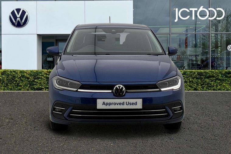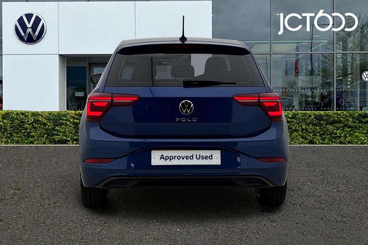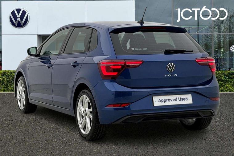 Adaptive cruise control without follow-to-stop and speed limiter, Bluetooth mobile phone interface, Digital Cockpit Pro with 10.25" Display, Driver alert system, Dynamic road sign display, Emergency call service, Power assisted speed sensitive steering, Preparation for We connect and We connect plus, Speedo and rev counter, electronic odometer, trip, service interval display and fuel gauge, Standard rear axle, Travel Assist - Lane keeping system and traffic jam assist, Travel assist including emergency assist, Trip computer, Warning signal and warning light for front and rear seatbelts not fastened, Washer fluid level indicator, Wireless app connect, Front wheel drive, Rear shock absorpion, Start-stop system with battery regeneration (recuperation - energy recovery during braking), DAB Digital radio, Diversity antenna for FM reception, Front and rear 6 speakers, Automatic dimming interior rear view mirror, Automatic headlights, Body colour door handles, Body coloured bumpers and radiator grille with chrome trims, Electric front windows, Heat insulating darkened glass in side and rear windows, Heat insulating glass windscreen, LED separate daytime running lights with coming/leaving home function, Power folding adjustable/heated exterior mirrors and front passenger exterior mirror lowering function, Rain sensor, Rear electric windows, Rear fog light, Rear side wing doors, Rear windscreen washer and wiper with interval delay, Third brake light, 12V power socket in centre console, 2 USB-C ports in the front, 2 USB-C charging sockets on the center console in the rear, 3 rear head restraints, 60/40 split folding rear seat and rear seat bench not split, Air care climatronic air conditoning system with active combination filter and 2-zone temperature control, Ambient lighting, Chrome plated radiator grille inserts, air vent surrounds and light switch surrounds, Door and side trim panel, Driver and front passenger seat height adjustment, Driver/passenger sunvisors with illuminated vanity mirrors, Front + rear carpet mats in recycled material, Front centre armrest, Front footwell illumination, Front seat backrest storage pockets, Front sports comfort seats, Handbrake lever handle in leather, Headliner in recycled material, Isofix child seat preparation easy-fit (for two outer rear seats, and front passenger seat) compatible with I-size, Leather trimmed gear knob, LED interior light with switch off delay and dimmer, 2 reading lights front and rear, Luggage compartment cover, Luggage compartment floor, Luggage compartment lighting, Lumbar adjustment for front seats, Multifunction steering wheel, Single front passenger seat, Standard pedal cluster, IQ LED matrix headlights pack - Polo, Light and vision pack - Polo, 3 point height adj front seatbelts + pretensioners, 3x3 point rear seatbelts, ABS, Driver and front passenger airbag with front passenger airbag deactivation, Drivers and front passengers safety optimised head restraints, ESC (Electronic stability control) + EDL (Electronic Differntial lock) and ASR (Traction control), Extended and predictive pedestrian/ cyclist protection, Front curtain and side airbags with center airbag, Front disc brakes, Hill hold control, Manual child lock in rear doors, Rear drum brakes, Single tone horn, Tyre pressure loss indicator, Alarm with interior protection, Anti-theft alarm system with interior monitoring, backup horn, and towing protection, Anti-theft wheel bolts, Electronic engine immobiliser, Chrome applications on rotary light, mirror adjustment, window regulator switches, outlet with frame in black, Low rolling resistance tyres,