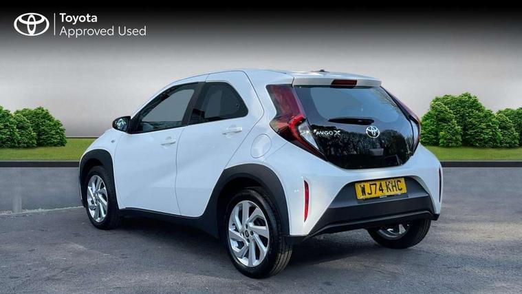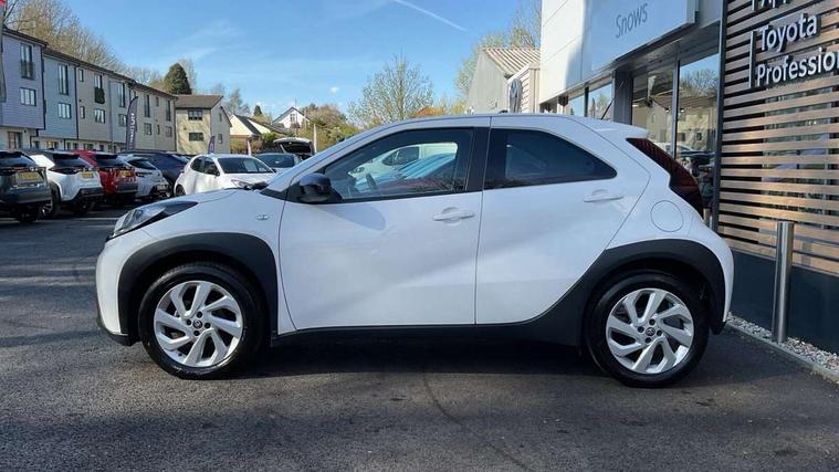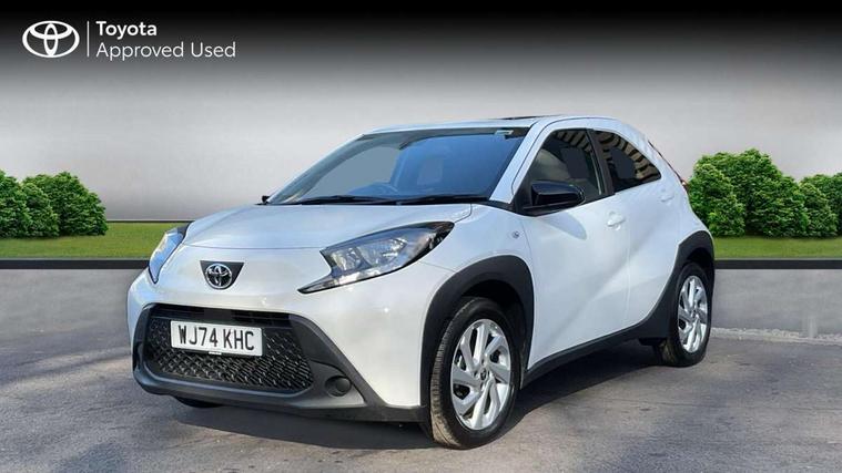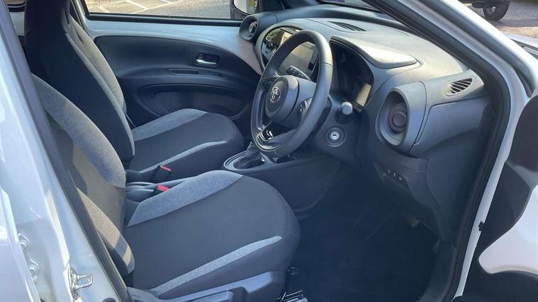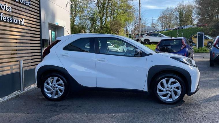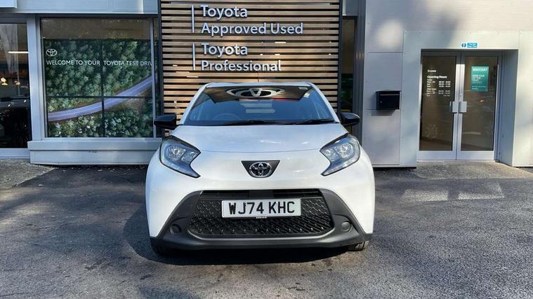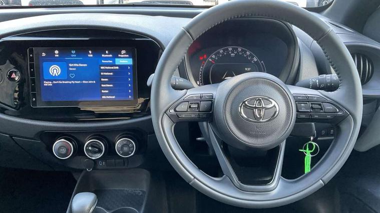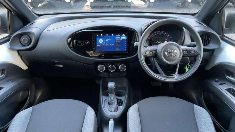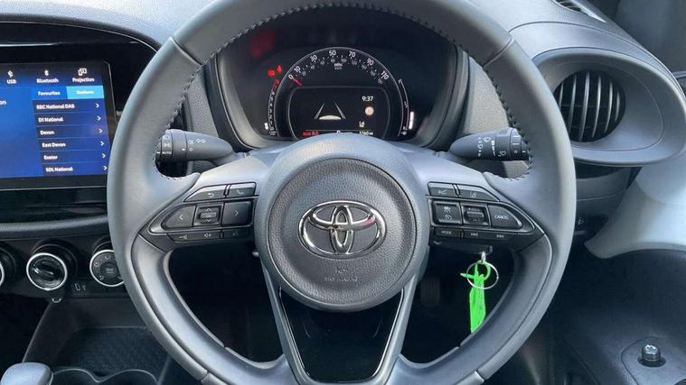 4.2" TFT colour screen, Adjustable speed limiter, Analogue speedometer, Bluetooth connectivity, Digital tachograph, Driver attention alert system, eCall emergency call system, ECO-driving indicator, Electric power steering, Intersection turn assist, Key reminder warning, Noise reduction kit, Pre collision system with emergency steering assist, Reversing camera with static guide lines, Smart phone integration with Apple car play/Android Auto, Speed limit display, Start and stop, Vehicle Stability Control (VSC), 4 speakers, 9" HD multimedia display touch screen with Toyota smart connect, DAB digital audio broadcast, USB connector, Auto headlights, Automatic headlights cut-off, Bicycle towing hook, Black lower front grille, Black rear bumper, Black side protection mouldings, Black upper front grille, Black wheel arch mouldings, Body colour door handles, Body coloured front bumper, Boot door scuff plate, Electric heated door mirrors, Follow me home headlights, Front power windows, Gloss black door mirrors, Headlight cut-off reminder, LED daytime running lights, LED front light guide, LED High mounted stop lamp, Manual day/night rear view mirror, Manual headlight levelling, Pagoda roof, Power adjustable door mirrors, Power back door, Projector halogen headlights, Rain sensor, Rear combination lights LED bulb type, Rear side wing doors, Rear windscreen defogger, Rear windscreen wiper, Short antenna, Variable intermittent windscreen wipers, 12v power outlet - front, 2 seat bench in 2nd row, 3 spoke leather steering wheel, 50/50 split folding rear seat, Adhesive roof headlining, Adjustable speed limiter switch on steering wheel, Audio and telephone switches on steering wheel, Black insert on steering wheel, Boot light, Centre room light, Chrome interior door handles, Chrome surround on air conditioning buttons, Clean air filter, Fabric upholstery, Floor mats, Front and rear cup holders, Front head rest deco art, Front head restraints, Gear shift indicator, Height adjustable driver seat, Intelligent adaptive cruise control switch on steering wheel, ISOFIX child restraint system on rear seats, Lane departure alert switch on steering wheel, Leather gearshift knob, Light grey roof lining, Manual air conditioning, Manual tilt steering wheel, Manually reclining and sliding driver seat, Manually reclining and sliding front passenger seat, Multimedia switches on steering wheel, Pollen filter, Rear door pockets, Rear head restraints, Resin console box storage, Satin silver insert on gear shift knob, Silver stitching on gear shift knob, Single compartment glovebox with lights, Single front passenger seat, Soft tonneau cover, Sun visors with mirror on driver and passenger side, Voice recognition switch on steering wheel, Toyota safety sense pack - Aygo X, Anti lock braking system + Electronic brake force distribution, Child safety door lock, Emergency brake light signal (EBS), Hill start assist control (HAC), Passenger airbag on/off switch, Seat belt reminder for front and rear seats, Supplement restraints system (SRS) - 6 airbags, Traction control, Tyre pressure warning system, Immobiliser, Remote power door locks, Black air vent surround, Black wheel centre caps, Tyre repair kit,