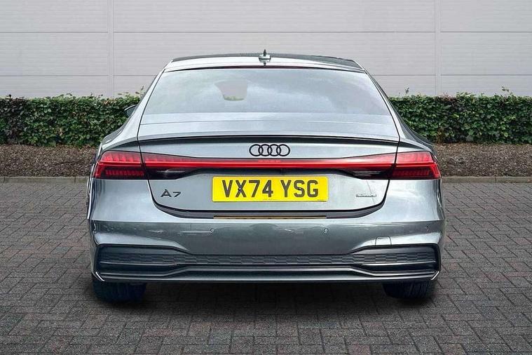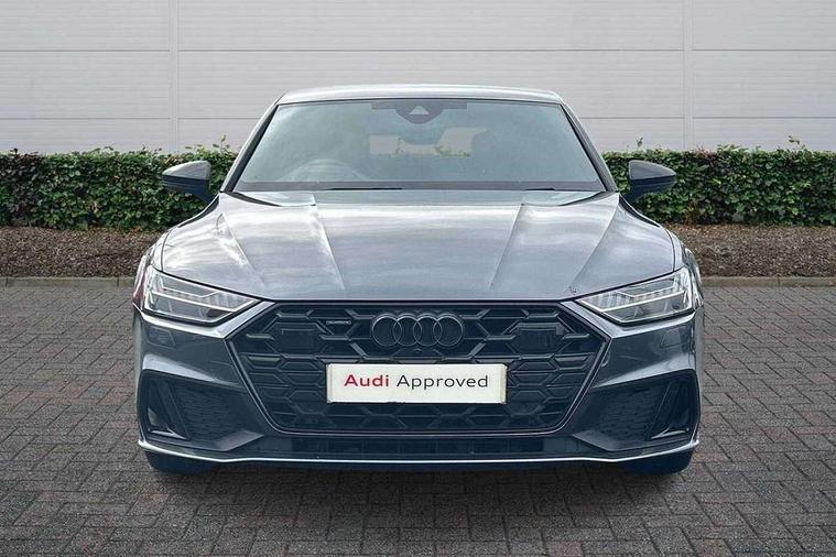 Audi connect safety and service (e-call), Audi connect with Amazon Alexa Integration, Audi drive select, Audi parking system plus - acoustic and visual park assist system for front and rear, Audi virtual cockpit, Automatic start/stop system with coasting functionality, Bluetooth interface, Camera based traffic sign recognition, Colour driver's information system display, Lane departure warning system, MMI nav plus with MMI touch + 10.1" and 8.6" HD haptic touch screen/3D city models/country information/online map/route info and personal route assist, Operating buttons in black, glass look with haptic feedback, Progressive steering, Rear view camera, Service indicator, Smartphone interface includes wireless Apple carplay/Android Auto, Voice control system, 22 litre AdBlue tank, Diesel particulate filter, Quattro on demand, Sports suspension, Audi music interface, Audi sound system with 6 channel amplifier, 180 watt amplifying capacity and 10 loudspeakers including subwoofer, Auxiliary input socket, DAB digital radio module, Audi beam, Audi rings, front and rear as well as A7 at the rear in black, Black rear diffuser with chrome inlays, Electrically adjustable heated and folding + automatically dimming exterior mirrors with memory function, Frameless auto dimming interior rear view mirror, Front and rear electric windows, Gloss black highlights on the exterior area of the Audi Single frame, Gloss black highlights on the front and rear bumpers, Gloss black highlights on the radiator grille, Gloss black highlights on the side windows trim strips, HD Matrix LED headlights, Heat insulating darkened glass in side and rear windows, High gloss black air inlets, LED 3rd brake light, LED rear lights with dynamic indicators, Omission of output/technology badging, Privacy glass with side and rear windows, Rain and light sensors, Rear side wing doors, Rear wiper, Retractable rear boot spoiler, Signature LED daytime running lights, Towbar preparation, Windscreen with heat-insulating glass, 2 zone deluxe electronic climate control, 4-way electric lumbar support, 40/20/40 split folding 3 seater rear seat bench with rear centre armrest, Audi phone box light, Black cloth headlining, Electrically adjustable front seats - driver seat with memory, Front and rear headrests, Front centre armrest, Heated front seats, Height/reach adjust steering wheel, Illuminated door sill trims with S logo, Illuminated sun visors with vanity mirrors, ISOFIX child seat mounting and top tether in front and outer rear seats with front passenger airbag deactivation, Leather gear knob, Leatherette upper instrument panel and door shoulders, Luggage compartment lid, electrically opening and closing, S line front and rear floor mats with contrast stitching, Single front passenger seat, Stainless steel pedals and foot rest, LED interior ambient lighting pack - A7, Non smoking pack - A7, 3 point seatbelts on all seats, Audi pre-sense front, Driver and passenger airbags, Electromechanical parking brake, Electronic stabilisation control including ABS, ASR and EDL, Extended pedestrian protection measures, Hill hold assist, Manual child lock in rear doors, Seatbelt monitoring, Tyre pressure warning light, Warning triangle and first aid kit, Anti theft alarm with tow away protection, Anti-theft wheel bolts and wheel loosening detection, Immobiliser, Keyless Go, Preparation for tracking system, Remote central locking, Carbon twill inlays, 20" 5 segment spoke evo style Audi sport black matte diamond turned alloy wheels, Tool kit,