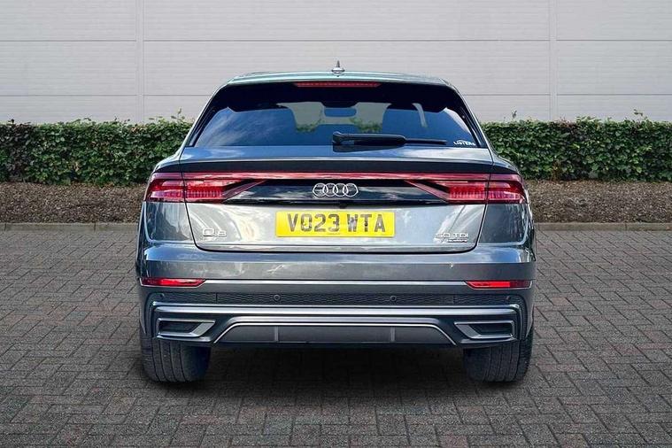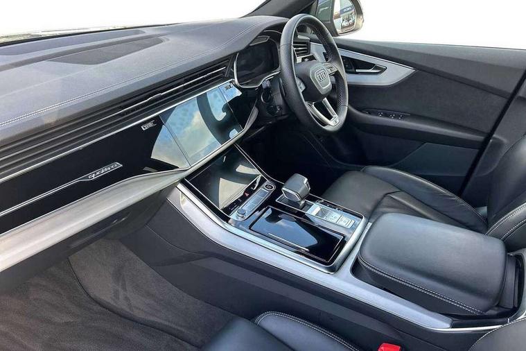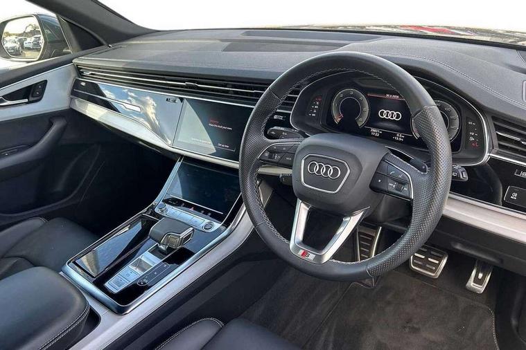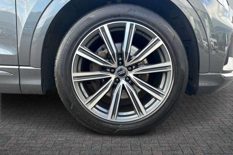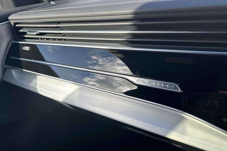 10.1" and 8.6" Dual colour touchscreens, Audi connect safety and service (e-call), Audi connect with Amazon Alexa Integration, Audi drive select, Audi parking system plus includes 360 degree display with front and rear sensors, Audi virtual cockpit - 12.3" high resolution LCD display with fully customisable instrument cluster, Automatic start/stop system, Electro-mechanical PAS, Low washer fluid indicator, MMI - Multi Media Interface control system, MMI navigation plus with MMI touch, Natural voice recognition, On board computer, Operating buttons in black, glass look with haptic feedback, Power operated tailgate, Rear view camera, Service interval indicator, Smartphone interface includes wireless Apple carplay/Android Auto, 48V Mild hybrid technology, Adaptive sport air suspension, Diesel particulate filter, Quattro all wheel drive with self locking centre differential, Audi music interface with 2 USB ports with charge and data functions, Audi sound system with 6 channel amplifier, 180 watt amplifying capacity and 10 loudspeakers including subwoofer, Aux-in socket, DAB Digital radio, 3rd brake light, Acoustic windscreen, Aluminium window trim, Audi HD Matrix LED headlights with dynamic front and rear indicators, Auto dimming frameless rear view mirror, Body colour door mirrors, Coming/leaving home lighting function, Electric front+rear windows, Electrically folding auto dimming/adjustable/heated door mirrors with memory function, LED side indicators and kerb view function for passenger side, Headlight washers, Heat insulating glass in windshield, Illuminated door sill trims with S line logo, LED signature daytime running lights, Platinum grey front spoiler lip and diffuser insert with honeycomb grille in black, Privacy glass - dark tinted rear and rear side windows from B-pillar backwards, Rain and light sensors, Rear side wing doors, Rear wiper, S line badges on front wings, S Line body styling, S line bumpers in full body colour paint finish, S line roof spoiler, S Line side skirts, S line side ventilation grille, 2 zone automatic climate control, 3 bench rear seats in 2nd row, 4-way lumbar support for front seats, 40:20:40 split folding rear bench seat, Black cloth headlining, Comfort front centre armrest, Driver seat memory function, Electrically adjustable front seats, Front head restraints, Front/rear floor mats, Heated front seats, ISOFIX child seat mounting for front passenger seat and 2 outer rear seats with top tether child seat mounting for all 3 rear seats, LED interior ambient lighting, Luggage compartment sill protection in stainless steel, Rear centre armrest with 2 cupholders, Rear headrests, Single front passenger seat, Stainless steel pedals, Sunvisors with illuminated vanity mirrors, 3 point seatbelts on all seats, Audi pre sense front, Child locks on rear doors, Driver and front passenger, front side and curtain airbags, Electromechanical parking brake, Electronic Stability Control (ESC) including ABS, ASR and EDL, Front passenger airbag deactivation, Hill descent control, Hill hold assist, Predictive pedestrian protection, Seatbelt monitoring, Traction control, Tyre pressure loss indicator, Warning triangle and first aid kit, Anti theft alarm with tow away protection, Anti-theft wheel bolts and wheel loosening detection, Immobiliser, Keyless go with remote central locking, Dark matt brushed aluminium inlay, Tool kit, Tyre repair kit,