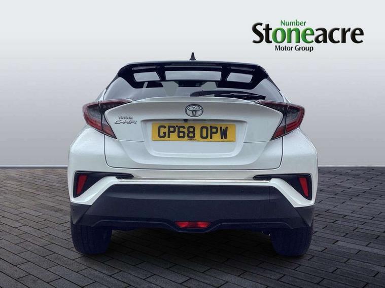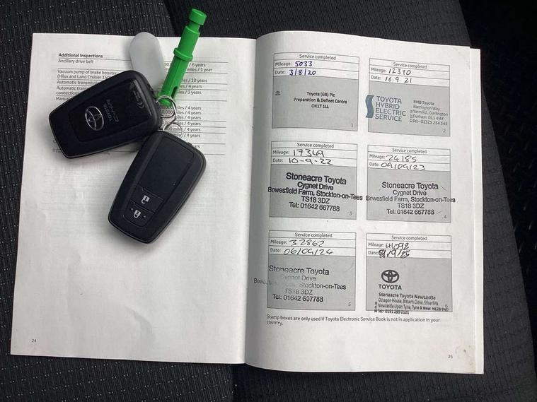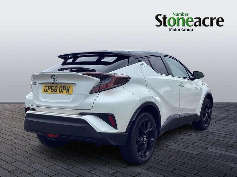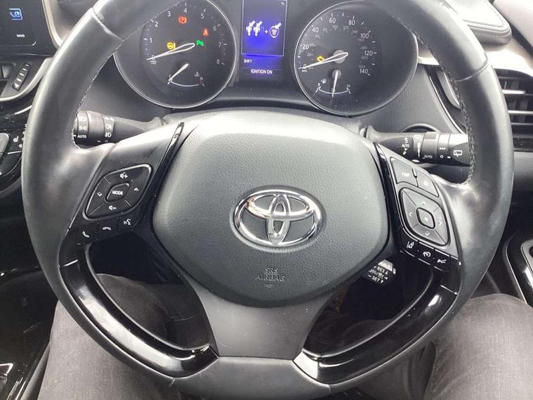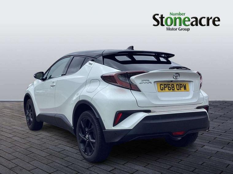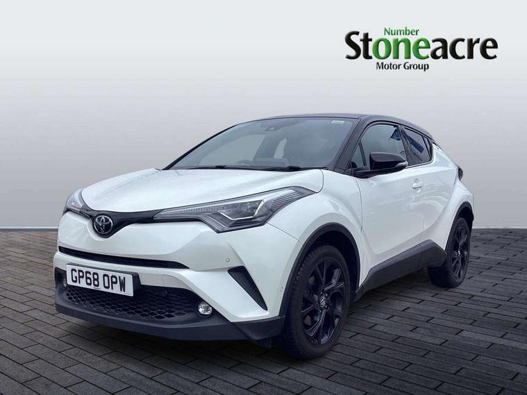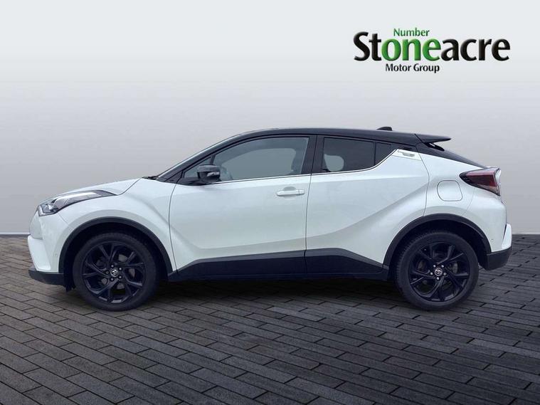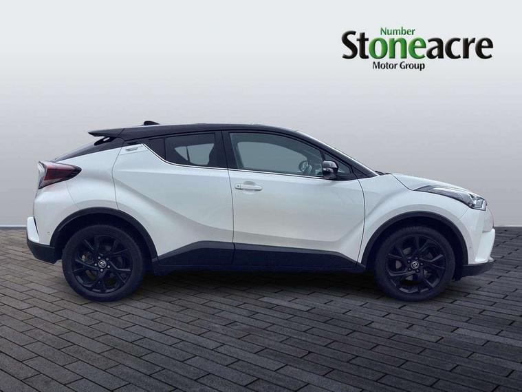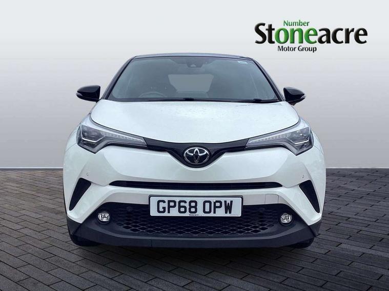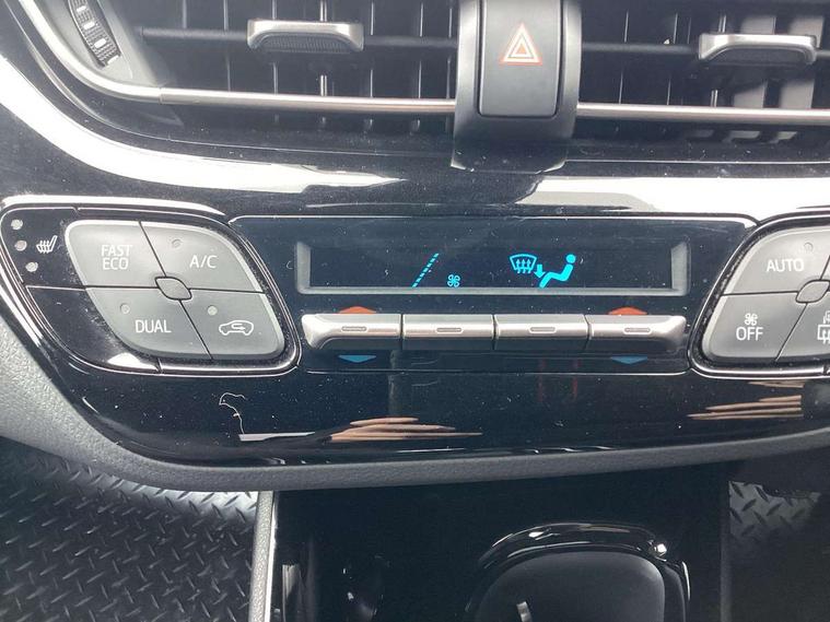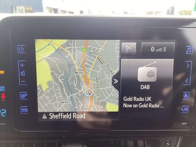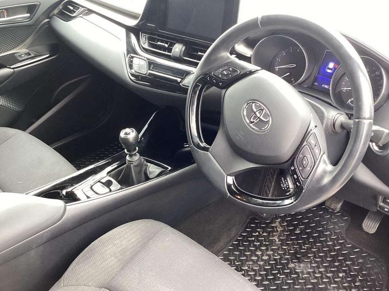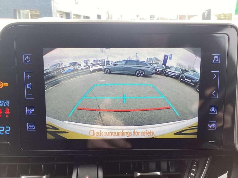 4.2" Colour TFT driver information display, 8" touch screen, Adaptive cruise control, Adjustable speed limiter, Bluetooth system, Collision prevention assist, Lane change assist and blind spot monitor, Lane departure warning system, Lights on warning, PAS, Push button starter, Rear cross traffic alert, Reversing camera, Touch 2 Go navigation system, Traffic sign recognition, Trip computer, Vehicle Stability Control (VSC), 6 speakers, Auxiliary input socket, DAB Digital radio, Steering wheel mounted controls, USB connection, Auto dimming rear view mirror, Auto folding mirrors, Auto high beam, Automatic headlight levelling, Bi-tone black roof, Body colour door handles, Body colour heated door mirrors, Body coloured bumpers, Electric folding/heated door mirrors with integrated indicators, Follow me home headlights, Front and rear electric windows, Heated rear windscreen, LED daytime running lights, LED front fog lights, LED Headlights, LED rear lights, Privacy glass, Rain sensitive windscreen wipers, Rear spoiler, Rear wiper, Shark fin roof aerial, 12V Accessory socket, Ambient lighting, Child seat anchorage points, Chrome interior door handles, Cloth upholstery, Driver/passenger sunvisors and illuminated vanity mirrors, Dual zone automatic air conditioning, Folding rear seats, Front and rear door pockets, Front centre armrest, Front cupholders x 2, Front head restraints, Glovebox illumination, Heated front seats, Height adjustable drivers seat, Illuminated door sills, Illuminated entry system, Leather gear knob, Lumbar support, Nappa leather steering wheel, Rear headrests, Tilt/telescopic steering column, WIL - Whiplash Injury Lessening seats, Parking pack - C-HR, 3x3 point rear seatbelts, ABS+EBD+Brake assist, Airbag deactivation switch, Driver/Front Passenger airbags, Driver/front passenger side airbags, Drivers knee airbag, ESP + traction control, Front and rear curtain airbags, Front and rear seatbelt reminder, Hill start assist control (HAC), Rear child proof door locks, Road sign information display, Toyota safety sense, Tyre pressure monitoring system, Alarm, Immobiliser, Remote central locking, Smart entry, Silver dash inserts, 18" 5 twin spoke matt black alloy wheels, Tyre repair kit,
