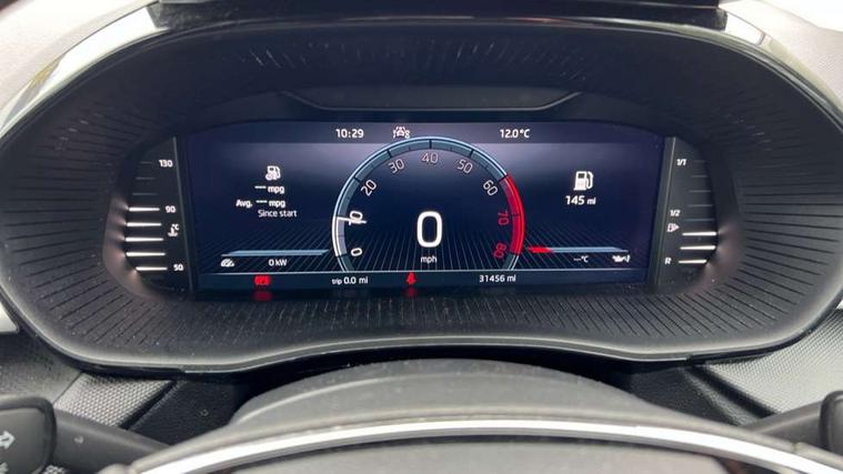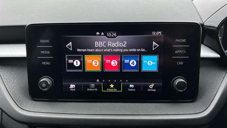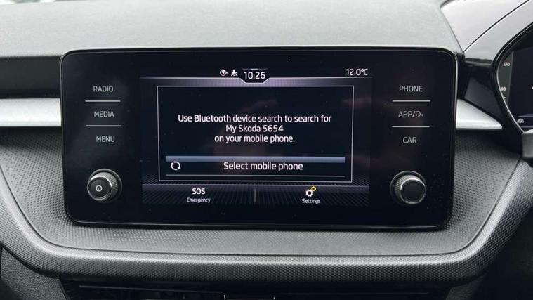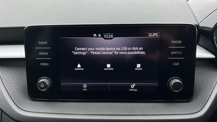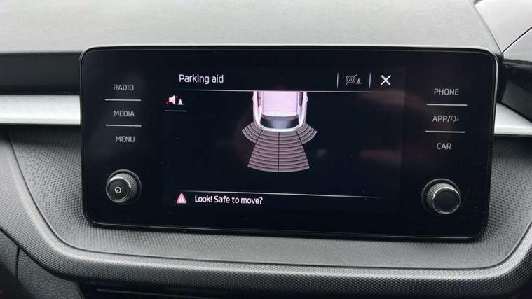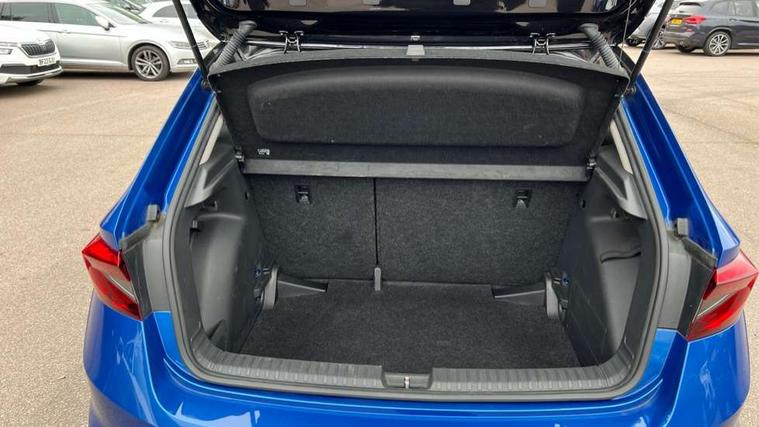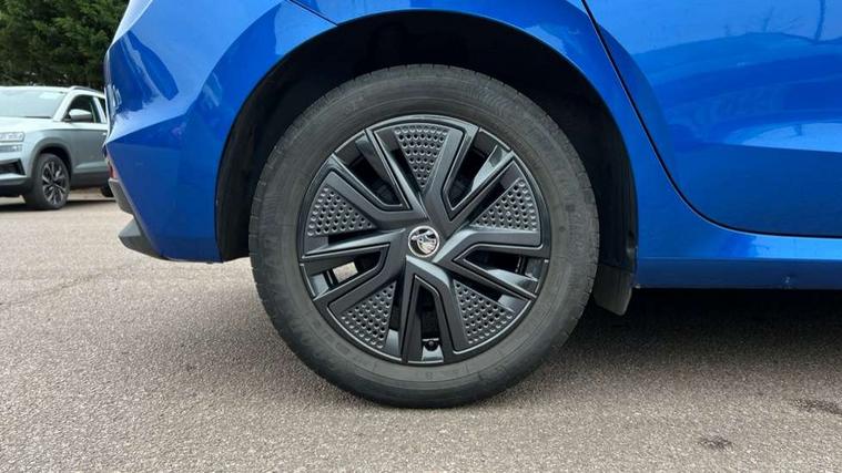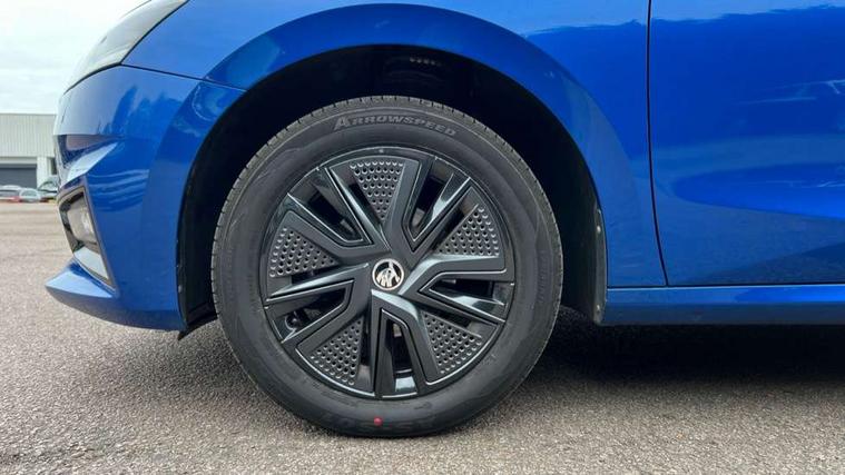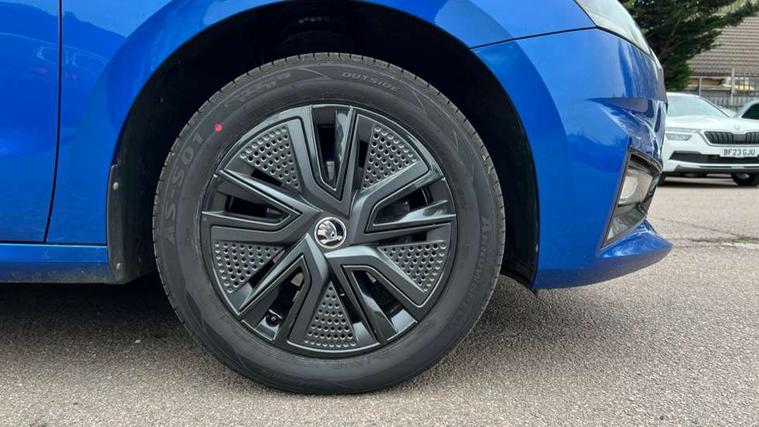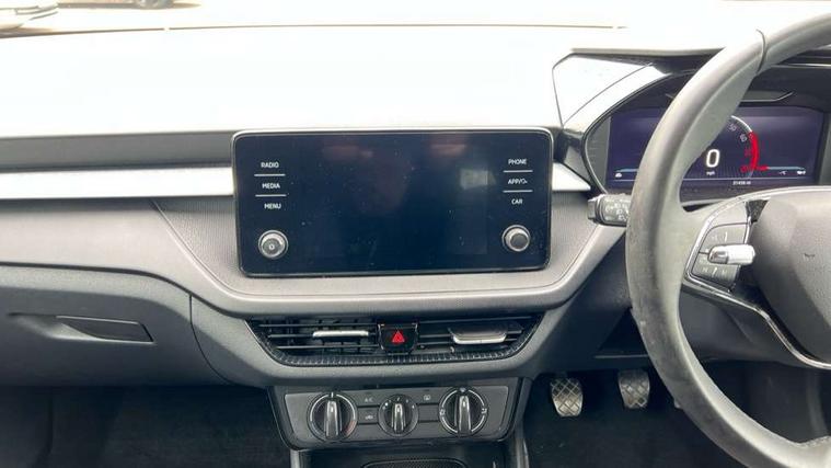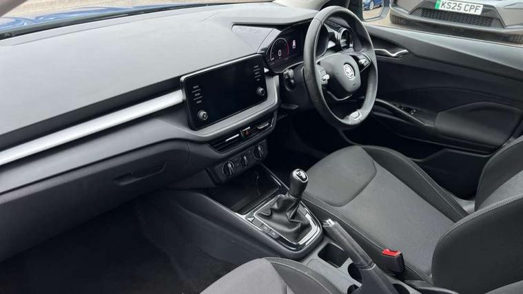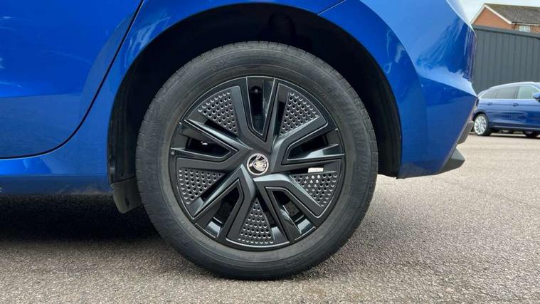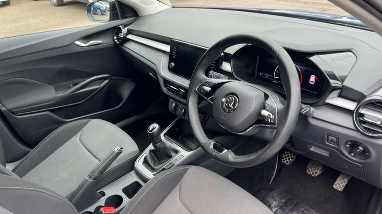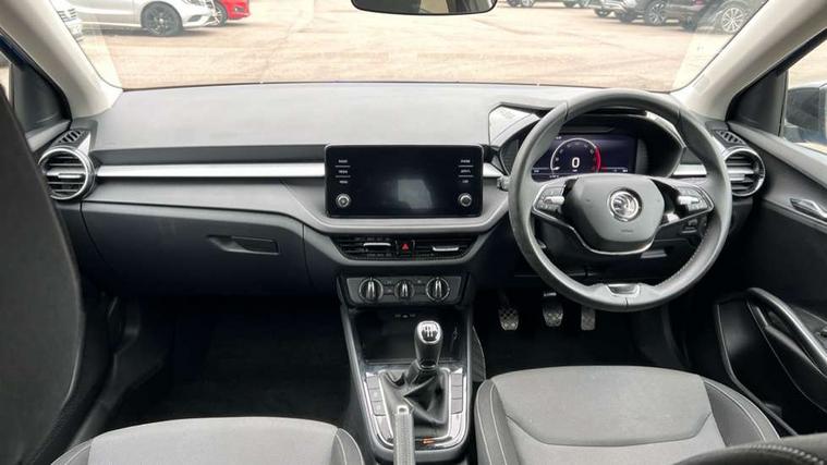 Bluetooth connection, Driver alert system - DAS, Electromechanical power steering, Exterior temperature gauge, Lane assist including road edge detection, Service interval indicator, Virtual cockpit with 10.25" colour display, 2x USB-C in the front (for data transmission and charging), 6 Speakers (4 in front and 2 in rear), Auxiliary socket for external MP3 player, Bolero radio with 8" colour display, DAB digital radio reception, Basic rear lights, Body coloured bumpers, Dimming rear view mirror with black frame, Door mirror integrated indicators, Electrically adjustable and heated door mirrors, Electrically adjustable front windows with function auto up/down, Front window wiper intermittent control, Headlight range control - Automatic, Ice scraper in fuel cap, LED daytime running lights with coming and leaving home feature, Mechanical adjustable rear windows, Privacy glass, Rear LED fog light, Rear side wing doors, Rear window wiper with washing nozzles, Roof colour door mirrors, Roof mounted spoiler, SKODA tailgate lettering in chrome, Third brake light, 3 rear headrests, Backrest split and folding, Central console with fixed cup holder and storage box, Chrome handbrake release button, Fabric upholstery, Gearshift knob/handle in leather, Grain satin black interior door handles, Hand brake lever handle in leather, Height adjustable front headrests, Height adjustable steering wheel, ISOFIX and TopTether anchorage points to the outer rear seats, ISOFIX and TopTether on the front passenger seat, Luggage compartment lighting, Pollen filter, Rear seat bench unsplit, Single front passenger seat, Storm grey headlining, Sun visors with mirror and airbag label on passenger side, Ticket holder, Umbrella in drivers door, 3-point height adjustable front seats belts with pretensioner and force limiter, Automatic warning lights in case of crash, Driver and passengers airbag with switch off function, e-Call+, ESC including ABS, MSR, ASR, EDS, HBA and XDS, Front and rear seat belt warning, FRONT ASSIST (AEB City and AEB Inter Urban), Front side airbags, Head airbags, One tone horn, Pedestrian protection, Three rear 3-points safety seat belts with pretensioner and force limiter including stop function for outer rear seat belts, Tyre pressure monitoring system, Anti-theft alarm system including immobiliser, interior monitoring, backup horn, and towing protection, Anodized cross line upper decorative trim, Colour Edition air vents, Grain satin black central console cover, Grain satin black lower decorative trim, Satin black door and side trim panel in front, Anti-theft wheel bolts protection, Super-low rolling resistance tyres,