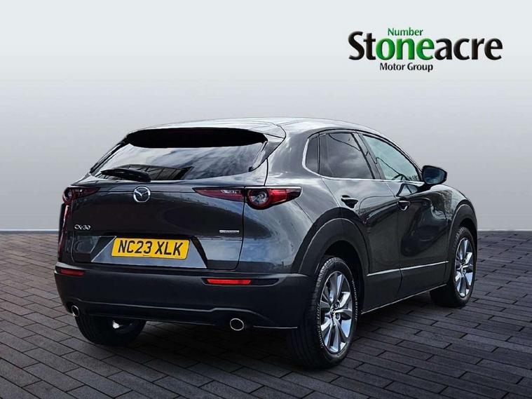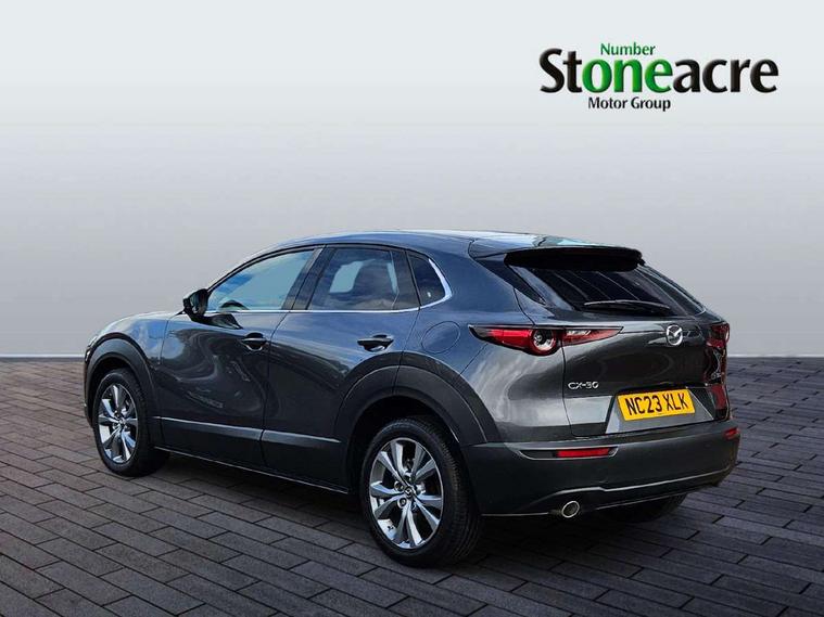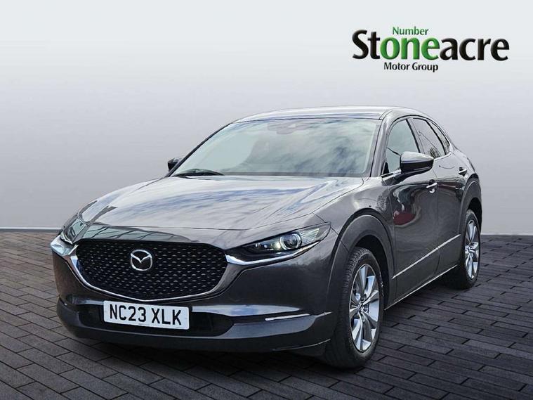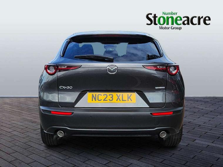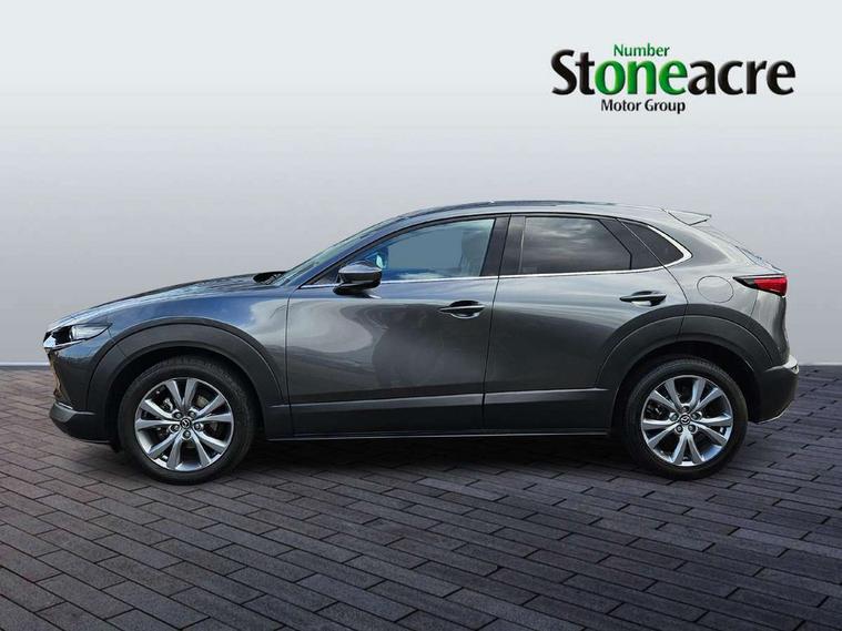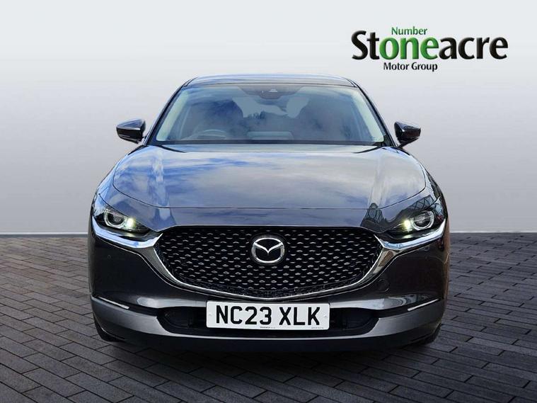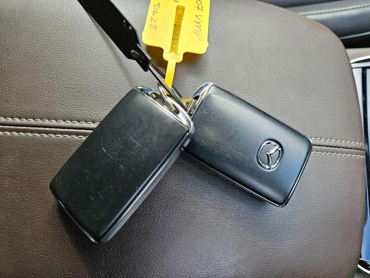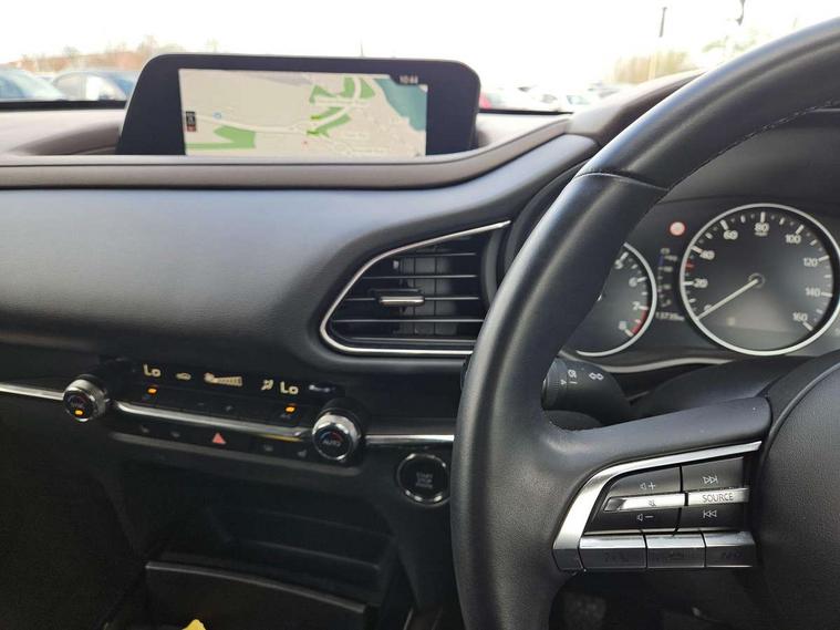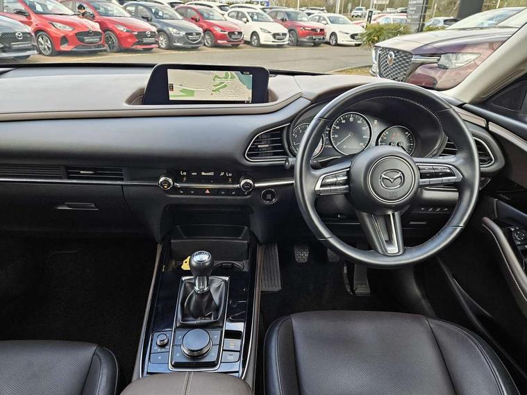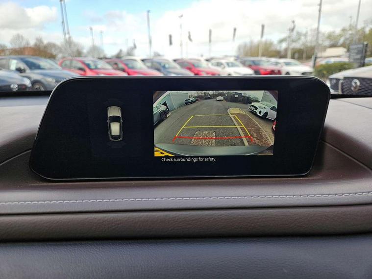 7" TFT Colour driver instrument panel display, 8.8" Colour centre touch screen display with Mazda Connect infotainment, Adaptive cruise control (Mazda radar cruise control), Apple car play/Android Auto, Blind spot monitoring with rear cross traffic alert, Driver attention alert system, E-call with GPS, Emergency stop signalling system, Engine start/stop button, Front and rear parking sensors, Integrated bluetooth, Integrated Mazda navigation system, Intelligent speed assist, Lane keep assist system (LAS) with Lane departure warning system (LDWS), Mazda connected services, PAS, Power lift gate, Reversing camera, Service indicator, Tailgate, Traffic sign recognition, Trip computer, Windscreen projected colour active driving display (HUD), Cylinder Deactivation, i-stop, 2 USB charging ports in front inner central armrest, AM/FM and DAB radio, Bose surround sound system with 12 Speaker, Bose center point, Bass match and audio pilot technology, Multimedia Commander including separate volume dial, Steering wheel mounted audio/bluetooth controls, Auto dimming driver's door mirror, Auto headlight levelling, B-pillar and C-pillar garnishes in piano black finish, Body coloured, electrically adjustable, heated auto power folding door mirrors with integrated indicators, Chrome finish signature wing in front grille, Coming/leaving home lighting function, Door mirrors with adjustable memory and tilt-down function when reversing, Dual chrome exhaust, Dusk sensing headlights, Electric front/rear windows with one touch auto up/down, Frameless auto dimming interior rear view mirror, Front kodo turn signal, Gloss black front grille, Gloss black rear roof spoiler, High beam assist, LED Headlights, LED signature daytime running lights, Privacy glass (rear side windows and rear screen), Rain sensing front wipers with adjustable speed and intermittent wipe, Rear fog lights, Rear side wing doors, Rear wiper, Signature LED rear combination lights, Third brake light, 12V power outlet in centre console, 3 seat bench in 2nd row, 60/40 split fold down rear seats, Chrome horn pad ring, Chrome interior trim accents with steering wheel centre bezel, surround of engine start / stop button and glove box handle, Dashboard, door cards and front centre armrest in rich brown leather, Driver and front passenger visors with covered vanity mirror and driver ticket holder, Driver's seat, power tilt, slide, recline, height and lumbar adjustment, Driver, front passenger and two rear door storage, Driver, Front passenger and two rear grab handles with coathooks, Dual zone climate control air conditioning with rear air vents, Folding rear centre armrest with two cup holders, Front and rear (x3) head restraints, Front and rear LED lighting, Front armrest, Front centre storage with two cupholders with lid, Front passenger seatback pockets, Front passengers seat manual slide, recline and height adjustment, Gear shift indicator, Glovebox illumination, Heated front seats with 3 stage setting, Heated steering wheel, ISOFIX child seat anchorage points attached on outer rear seats, Leather upholstery with interior accents, Leather wrapped gear shift knob, Leather wrapped steering wheel with telescopic and tilt adjustment, LED luggage compartment lighting, Light roof headlining and pillars, Rear armrest inner material in cloth, Roof mounted sunglasses holder, Single front passenger seat, 3 point ELR front seat belts x2 with pretensioners, 3 point ELR rear seat belts, Anti-lock braking system (ABS), Drivers knee airbag, DSC - Dynamic Stability Control, Electronic parking brake with auto disengage function and auto hold function, Front and rear curtain airbags, Front dual stage driver and single stage front passenger airbags, Front passenger airbag cut-off switch, Front side airbags, Front smart city brake support, G-Vectoring control plus, Hill launch assist, Manual child lock in rear doors, Mild Hybrid system with regenerative braking, Seatbelt reminder for driver/front passenger and rear seats, Traction control system (TCS), Tyre pressure monitoring system (TPMS), Remote central locking with deadlocking and automatic door lock when driving, Smart keyless entry, Thatcham accredited alarm and immobiliser, Dark vinyl door panel inserts, 18" Silver alloy wheels, Emergency tyre repair kit,
