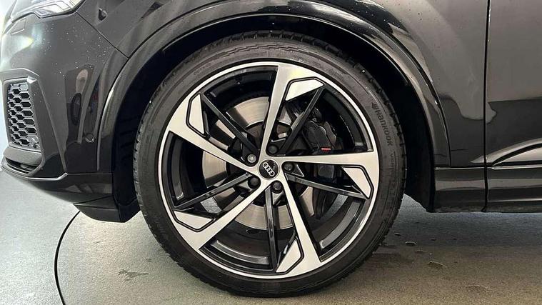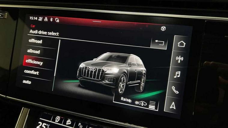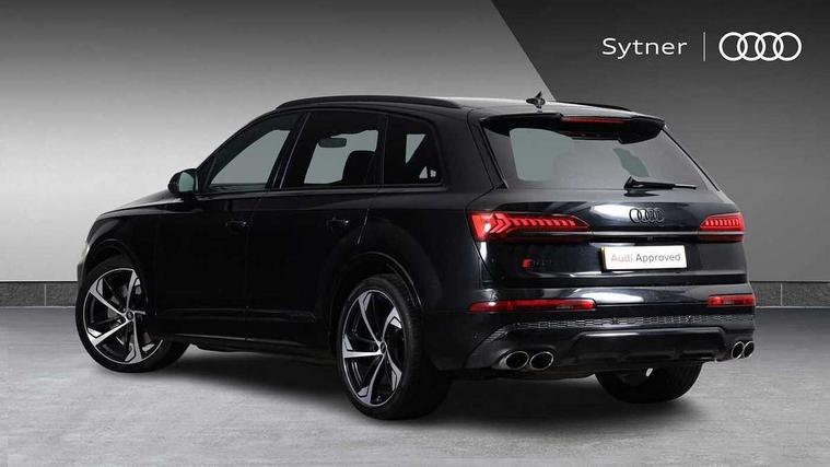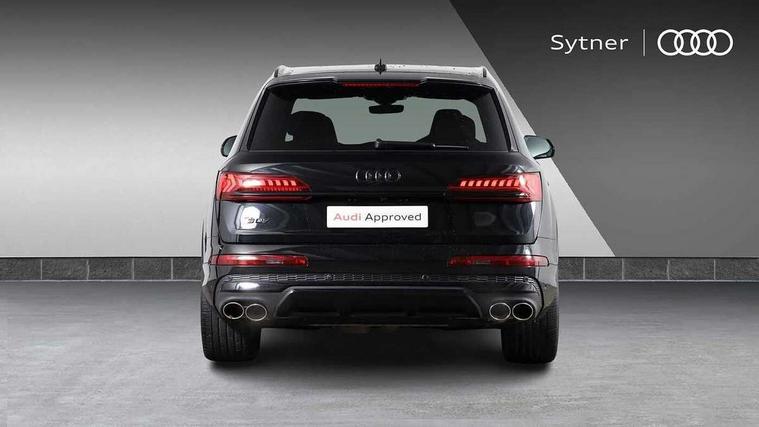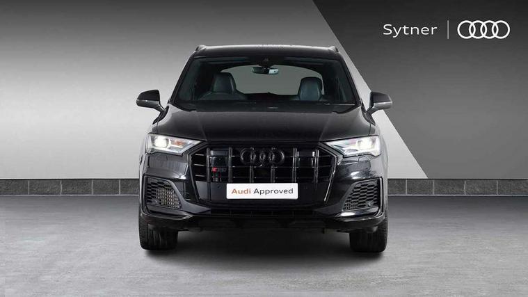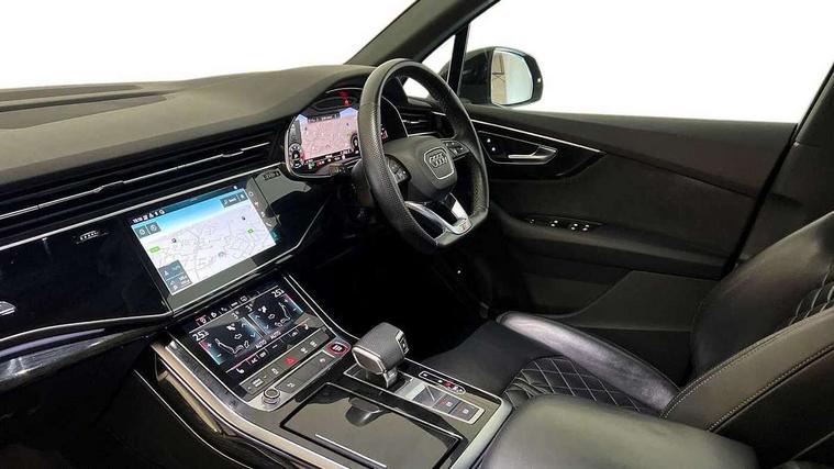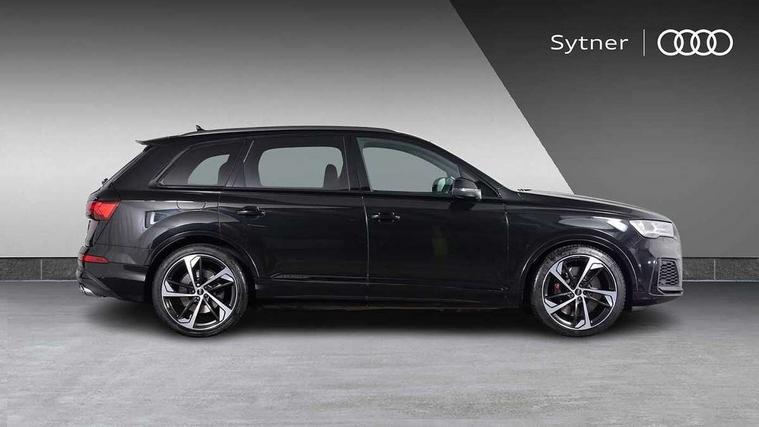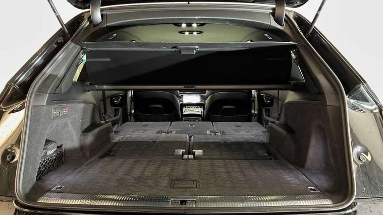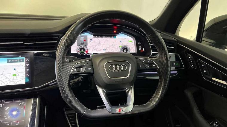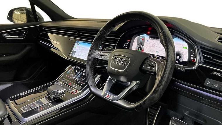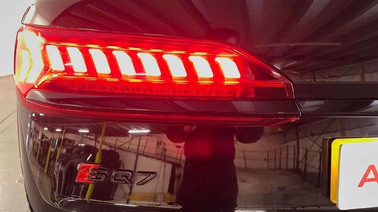 All wheel steering, Audi connect safety and service (e-call), Audi connect with Amazon Alexa Integration, Audi drive select (Auto, Comfort, Dynamic, Efficiency, Individual, Off-road and All road), Audi virtual cockpit - 12.3" high-resolution LCD display with fully customisable instrument cluster, Bluetooth interface, Camera based traffic sign recognition, MMI navigation plus with MMI touch screens includes 10.1" and 8.6" screens with haptic feedback, Natural voice recognition, Parking system plus with 360 degree display (front, rear and side sensors) - acoustic and visual park assist system, Power operated tailgate, Rear view camera, Smartphone interface includes wireless Apple carplay/Android Auto, Start/stop system, 48V Mild hybrid technology, 85 litre fuel tank, Quattro all wheel drive with self locking centre differential, S specific adaptive air sport suspension, Audi music interface - front 2 USB-C ports with charger and data functions, Audi sound system with 6 channel amplifier, 180 watt amplifying capacity and 10 loudspeakers including subwoofer, DAB digital radio module, 3rd brake light, Audi Beam uses LEDs to project Audi logo onto the ground as you exit your SQ7, Audi matrix LED headlights with dynamic front and rear indicators, Auto dimming frameless rear view mirror, Black roof rails, Electrically adj heated/folding + automatically dimming exterior mirrors with memory + automatic kerb side function for passenger side exterior mirror, Gloss black finish for exterior Audi rings and SQ7 logos, Heat insulating glass in windshield, Integrated LED indications in door mirrors, LED daytime running lights, LED rear tail lights, Privacy glass - dark tinted rear and rear side windows from B-pillar backwards, Rear side wing doors, Rear wiper, S front and rear bumpers, S specific rear bumper with 4 exhaust pipes, 2 seat bench in 3rd row, 3 seat bench in 2nd row, 4 zone deluxe automatic climate control, 7 seat layout with ISOFIX points for the front passenger seat and rear passenger seat, Black cloth headlining, Comfort front centre armrest, Electric adjustable front seats/backrest bolsters, lumbar support, memory functionality, Folding rear seats, Front head restraints, Front/rear floor mats, Heated front seats, Illuminated door sill trims with S logo, LED interior ambient lighting, Luggage compartment cover, Luggage compartment sill protection in stainless steel, Rear head restraints, Single front passenger seat, Stainless steel pedals, Sunvisors with illuminated vanity mirrors, Valcona leather upholstery with front super sport seat, Titanium black styling pack - Q7/SQ7, 3 point seatbelts on all rear seats, Audi pre sense front, Child locks on rear doors, Driver and front passenger, front side and curtain airbags, Electromechanical parking brake, Electronic Stabilisation Control (ESC) including ABS, ASR and EDL, Extended pedestrian protection measures, Hill hold assist, Seatbelt monitoring, Tyre pressure loss indicator, Warning triangle and first aid kit, Anti theft alarm, Anti-theft wheel bolts and wheel loosening detection, Keyless Go, Remote central locking, Polished oak trim with grey finish inlay, 22" 5 arm trapezoid design audi sport alloy wheels in anthracite black with gloss turned finish, Tool kit, Tyre repair kit,