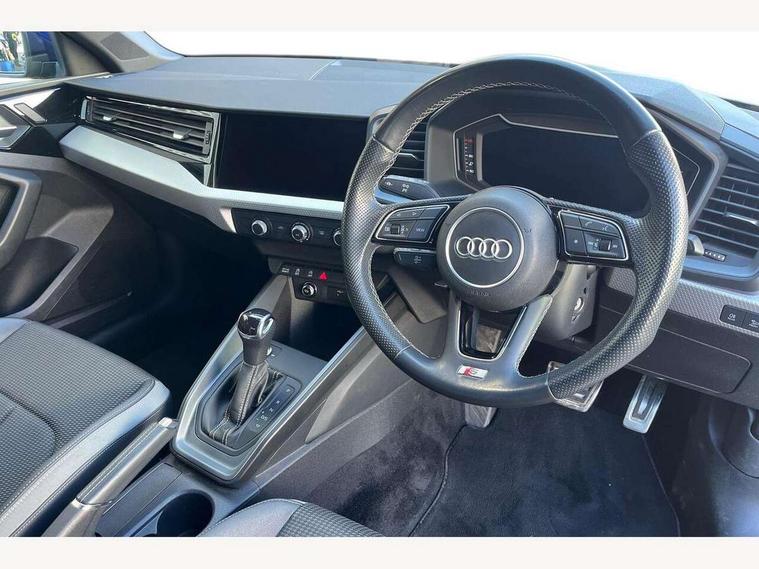 10.25" Digital instrument cluster display classis style instrument dials + speed, odometer, time, outside temperature, telephone menu + fuel level warning, Audi drive select - power steering assistance + engine + gear shift 3 preset modes (auto, dynamic, efficiency and an Individual mode), Audi smartphone interface with connect compatible smartphone via USB directly MMI display + Nav, music, third party apps controlled via MMI controller, Automatic start/stop system, Bluetooth interface, Cruise control, Driver's information system, Electromechanical power steering, Emergency e-call, Lane departure warning system, Rear parking sensor, Service interval indicator, Speed limiter, Voice control system, Washer fluid level indicator, Sports suspension, 2 x USB type C connection points, 6 passive loudspeakers, DAB Digital radio, MMI radio plus with 10.1" colour MMI display screen and MMI touch, Auto dimming rear view mirror, Body coloured door mirrors, Door sills with aluminium inlays and S Line logo, Electric front and rear windows, Electrically adjustable, heated, folding door mirrors with integrated LED side indicator, Front side air inlets in grained matt black and C frame in anthracite black, Heat insulating glass windscreen and side windows, Heated rear windscreen, High level LED brake light, LED headlights with LED rear lights + dynamic rear indicators + headlight adjustment and high beam, turning light + LED daytime running lights, Privacy glass, Radiator grille and rear diffuser in matt anthracite black, Radiator protective grille frame in matt aluminium silver, Rain and light sensors, Rear fog lights, Rear side wing doors, Rear wiper, S line badges on front wings, Side front spoiler lips in grained matt black, 12V socket in centre console with two cup holders, 3 rear seats with headrests, 3 seat bench in 2nd row, 3 spoke leather multi-function plus steering wheel features S badging and grips in perforated leather with contrast stitching, 40:60 Split folding rear seat or folded fully, Black cloth headlining, Driver and passenger seat with manual height adjust with forward and backwards adjustment, Front and rear black floor mats with contrast stitching in fine silver, Front head restraints, Front passenger seat, Height and reach adjustable steering wheel, ISOFIX child seat mounting for front passenger and outer rear seats including top tether attachment point of outer rear seats, Leather gear knob with aluminium trim, Leather handbrake grip, Luggage compartment light with front and rear reading lights, Manual air conditioning, Manually adjustable lumbar support in front seats, Stainless steel pedals, LED interior lighting pack - A1, Luggage compartment pack - A1, S line exterior styling pack - A1 Sportback, 3x3 point rear seatbelts, Audi pre-sense front with pedestrain and cyclist recognition, Brake assist function, Driver and front passenger airbag with front side and head airbags, Electronic Stability Control including ABS, EBD, ASR and EDL, Front passenger airbag deactivation switch, Hill hold assist, Manual rear child locks, Seatbelt height adjustment for front seats, Seatbelt monitoring, Tyre pressure warning light, Warning triangle and first aid kit, Anti theft alarm, Anti theft wheel bolts and loose wheel warning, Immobiliser, Remote central locking with 2 foldaway keys, Aluminium trim for control switches, air vents and digital instrument cluster, Black dashboard, Silver grey inlays polygon structure in diamond paint finish, Structured grey accent areas including air vents, door handle recesses and centre console in quartz paint finish,