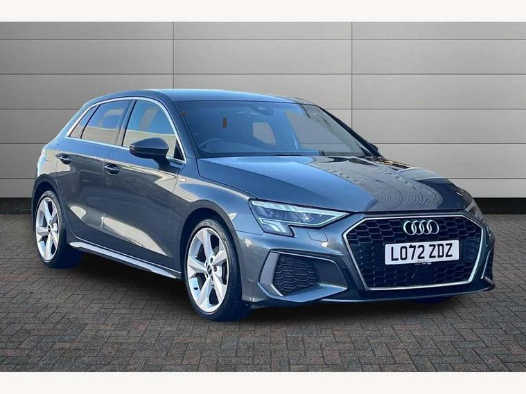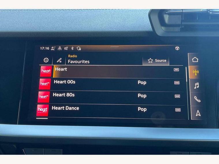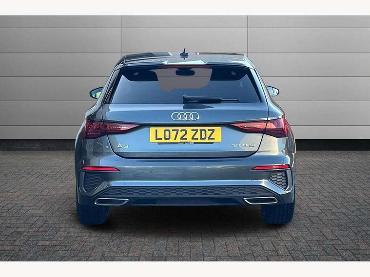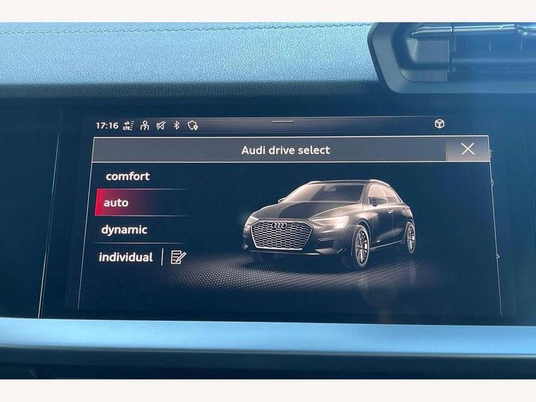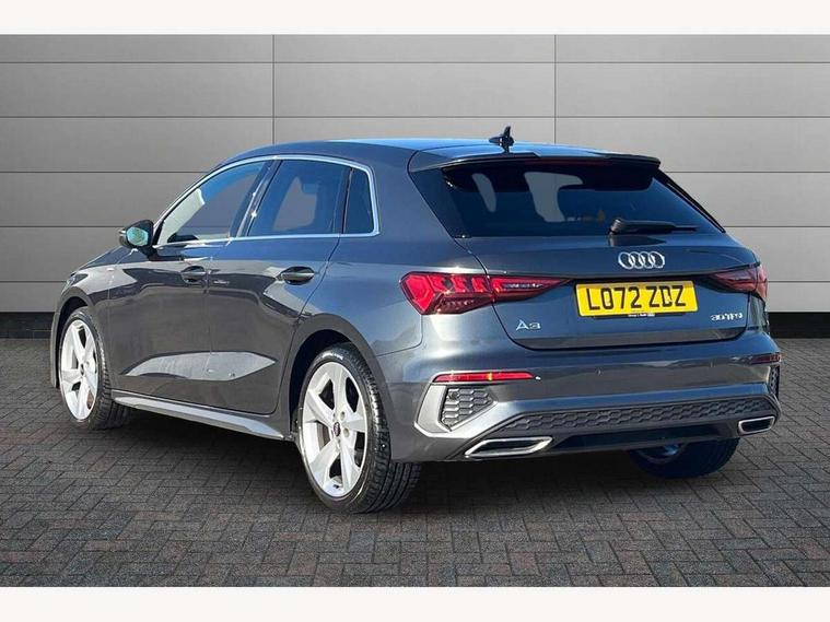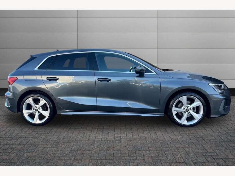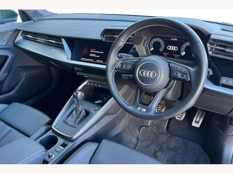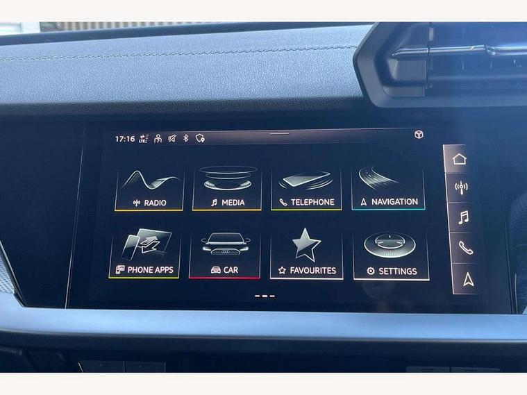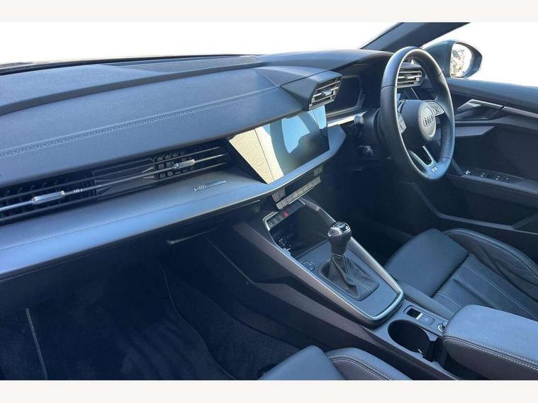 Audi drive select (Auto, Comfort, Dynamic and Individual), Audi smartphone interface, Audi Virtual Cockpit - 10.25" digital and colour instrument cluster, Automatic start/stop system with recuperation, Bluetooth interface, Collision avoidance assistant, Cruise control, e-Call (emergency call), Electromechanical power speed sensitive steering, Lane departure warning system, MMI Navigation Plus with high resolution 10.1" colour touch screen display, Rear parking sensors, Service indicator, Trip computer, Voice control system with natural language interaction, 2xUSB-C connection with data and charging functions, 6 passive loudspeakers, DAB Digital radio, 3rd brake light, Acoustic glass windscreen, Aluminium window trim, Auto dimming frameless rear view mirror, Electrically adjustable/heated/folding/auto dimming door mirrors with integrated LED indications + kerb view function for passenger side, Front electric windows, Illuminated aluminium inserts front door sills with S logo, LED daytime running lights, LED headlights with LED rear lights and dynamic rear indicators, Light and rain sensors, Privacy glass - dark tinted rear window, rear door and side windows, Rear electric windows, Rear side air outlets in grained matt black, Rear side wing doors, Rear wiper, S line bumpers, S roof spoiler, 12V socket and storage compartment in front centre console, 3 seat bench in 2nd row, 40/20/40 split folding rear seat bench with cupholder, Black cloth headlining, Dual zone electronic climate control, Front and rear centre armrest in leather, Front and rear headrests, Front/rear floor mats, Height and reach adjustable steering wheel, Illuminated vanity mirror, Interior lighting - glove compartment light and right hand side, Luggage compartment floor covering, Manual boot compartment lid, Manually adjustable front seats, Seat side bolsters, Single front passenger seat, Stainless steel pedals and front footrest in black, Twin leather upholstery with front sports seats S embossed logo, Aluminium interior elements pack - A3 Sportback, LED interior lighting pack - A3 Sportback, S line styling pack - A3 Sportback, 3x3 point rear seat belts, Audi pre sense front, Driver and front passenger airbag with passenger airbag deactivation, Electronic Stabilisation Control (ESC) including ABS, ASR and EDL, First aid kit with warning triangle and 2 safety vests, Front side airbags with head airbags and interaction airbag, Pre-sense front with pedestrian and cyclist detection, Seatbelt monitoring, Tyre pressure loss indicator, Anti theft alarm, Anti-theft wheel bolts, Electronically operated child lock, Immobiliser, Remote control central locking, Accent surfaces in the dashboard and centre console in platinum grey silk effect paint finish, Dark spectrum aluminium inlays,