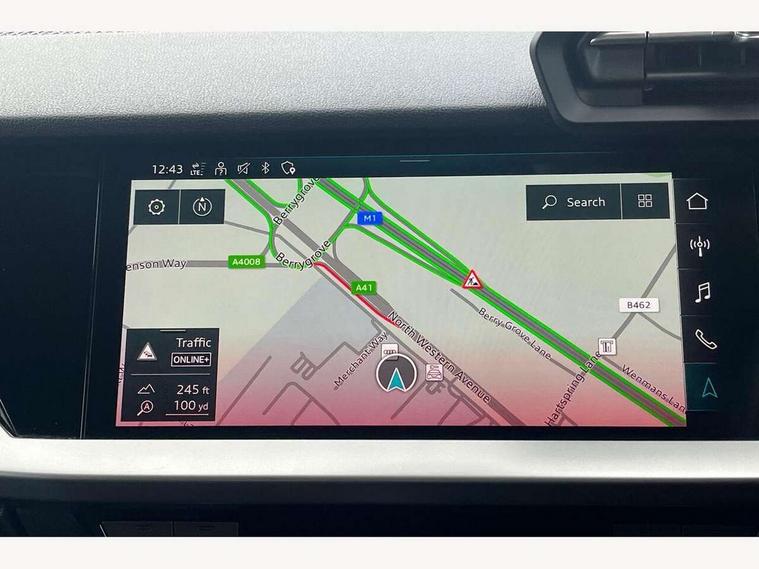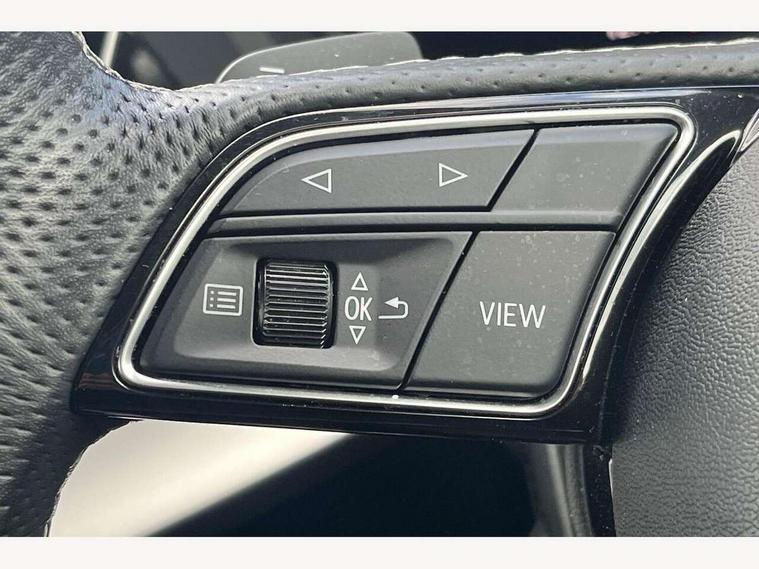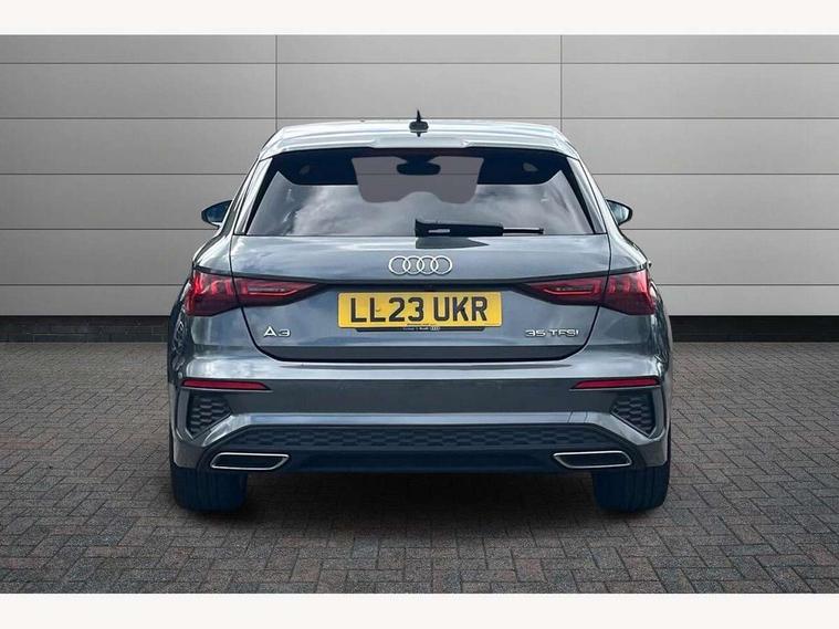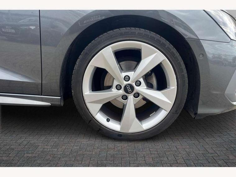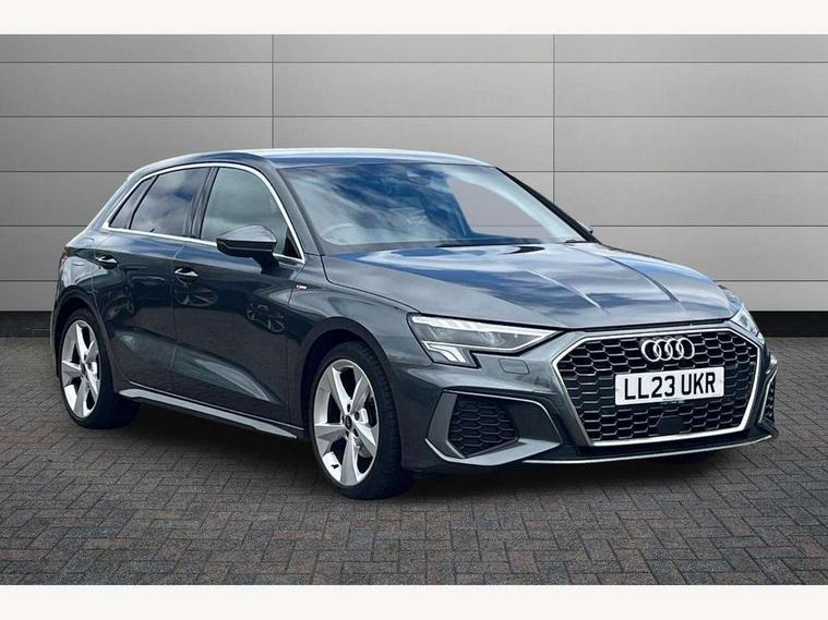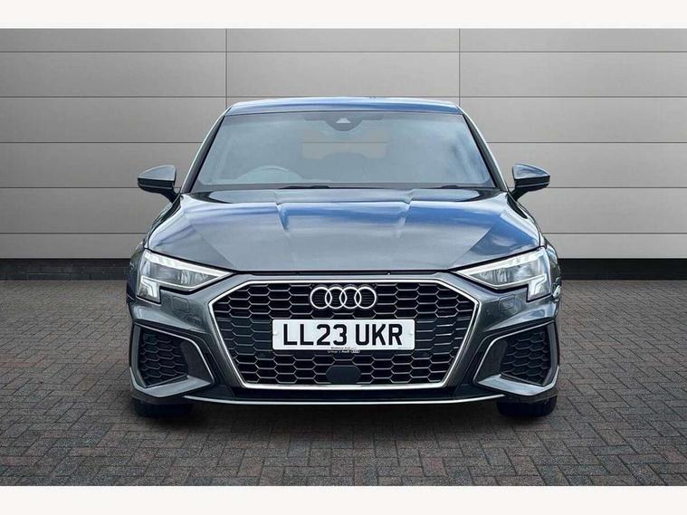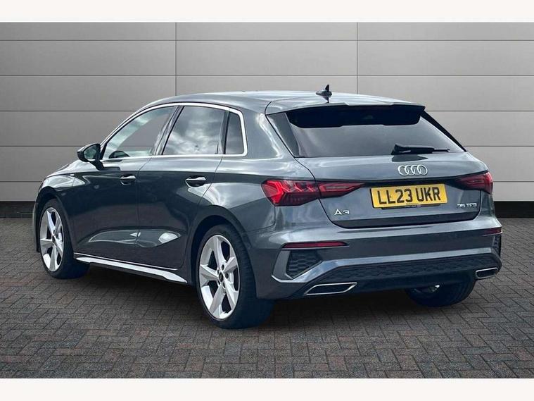 Audi drive select (Auto, Comfort, Dynamic, Efficiency and Individual), Audi smartphone interface, Audi Virtual Cockpit - 10.25" digital and colour instrument cluster, Automatic start/stop system with recuperation, Bluetooth interface, Collision avoidance assistant, e-Call (emergency call), Electromechanical power speed sensitive steering, Lane departure warning system, MMI Navigation Plus with high resolution 10.1" colour touch screen display, Service indicator, Trip computer, Voice control system with natural language interaction, Sports suspension, 2xUSB-C connection with data and charging functions, 6 passive loudspeakers, DAB Digital radio, 3rd brake light, Acoustic glass windscreen, Aluminium window trim, Auto dimming frameless rear view mirror, Body colour exterior mirrors, Electrically adjustable/heated/folding/auto dimming door mirrors with integrated LED indications + kerb view function for passenger side, Front electric windows, Illuminated aluminium inserts front door sills with S logo, LED daytime running lights, LED headlights with LED rear lights and dynamic rear indicators, Light and rain sensors, Privacy glass - dark tinted rear window, rear door and side windows, Rear electric windows, Rear side air outlets in grained matt black, Rear side wing doors, Rear wiper, S line bumpers, S roof spoiler, 12V socket and storage compartment in front centre console, 3 seat bench in 2nd row, 3 spoke leather multifunction steering wheel with paddle shift, 4 way electrically adjustable lumbar support for driver and front passenger, 60/40 split folding rear seat bench, Black cloth headlining, Dual zone electronic climate control, Front and rear centre armrest in leather, Front and rear headrests, Front/rear floor mats, Height and reach adjustable steering wheel, Interior lighting - glove compartment light and right hand side, Luggage compartment floor covering, Manual boot compartment lid, Manually adjustable front seats, Seat side bolsters, Single front passenger seat, Stainless steel pedals and front footrest in black, Twin leather upholstery with front sports seats S embossed logo, Aluminium interior elements pack - A3 Sportback, LED interior lighting pack - A3 Sportback, S line styling pack - A3 Sportback, 3x3 point rear seat belts, Driver and front passenger airbag with passenger airbag deactivation, Electronic Stabilisation Control (ESC) including ABS, ASR and EDL, First aid kit with warning triangle and 2 safety vests, Front side airbags with head airbags and interaction airbag, Pre-sense front with pedestrian and cyclist detection, Seatbelt monitoring, Tyre pressure loss indicator, Anti theft alarm, Anti-theft wheel bolts, Electronically operated child lock, Immobiliser, Remote control central locking, Dark spectrum aluminium inlays, accent surfaces in the dashboard and centre console in platinum grey silk effect paint finish,