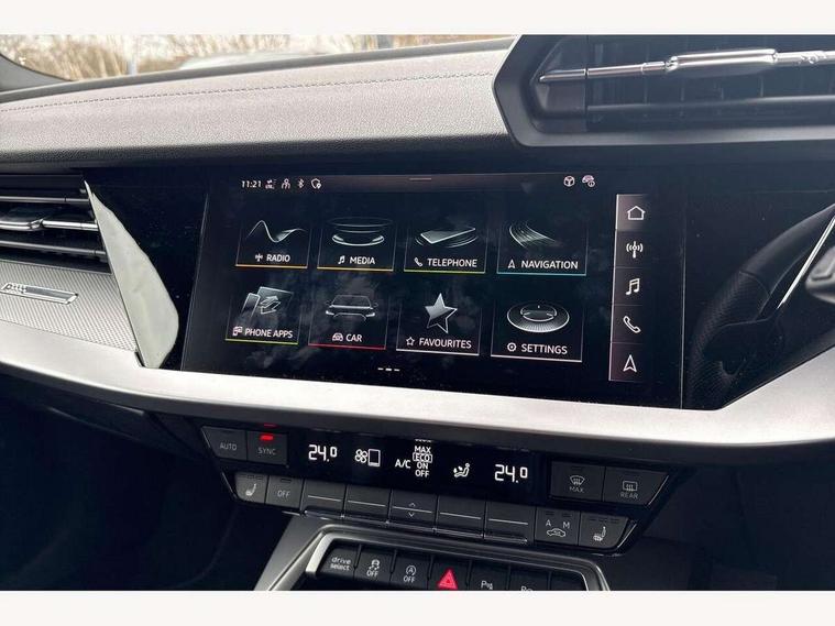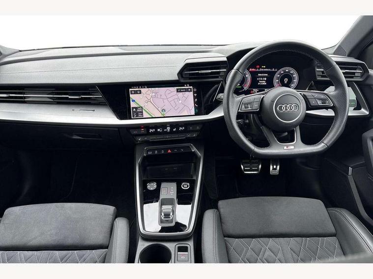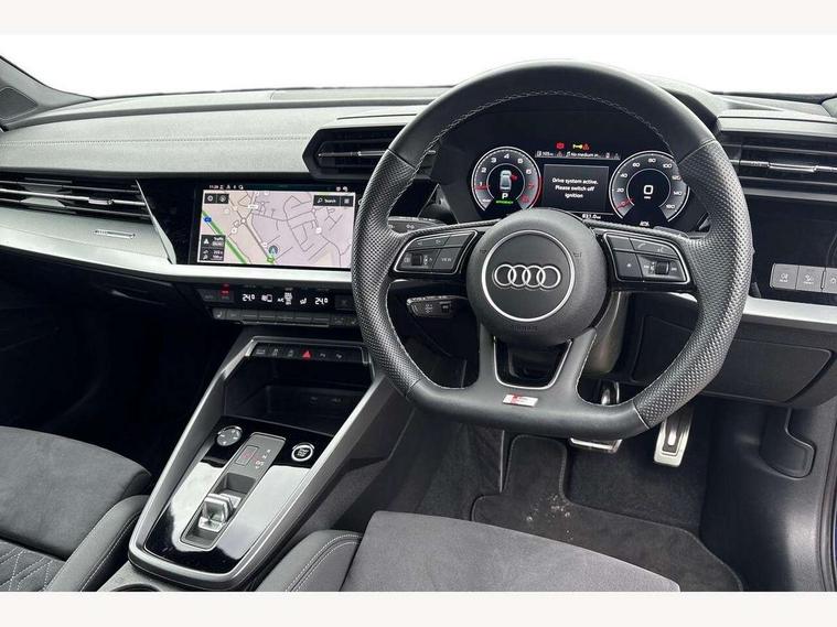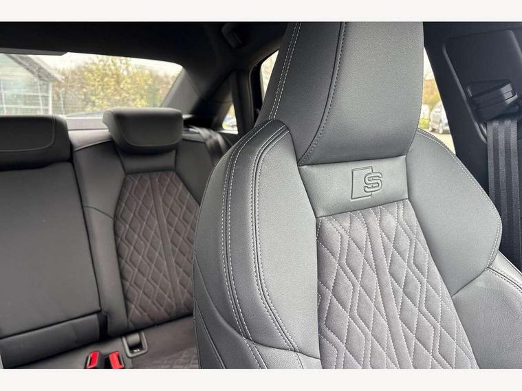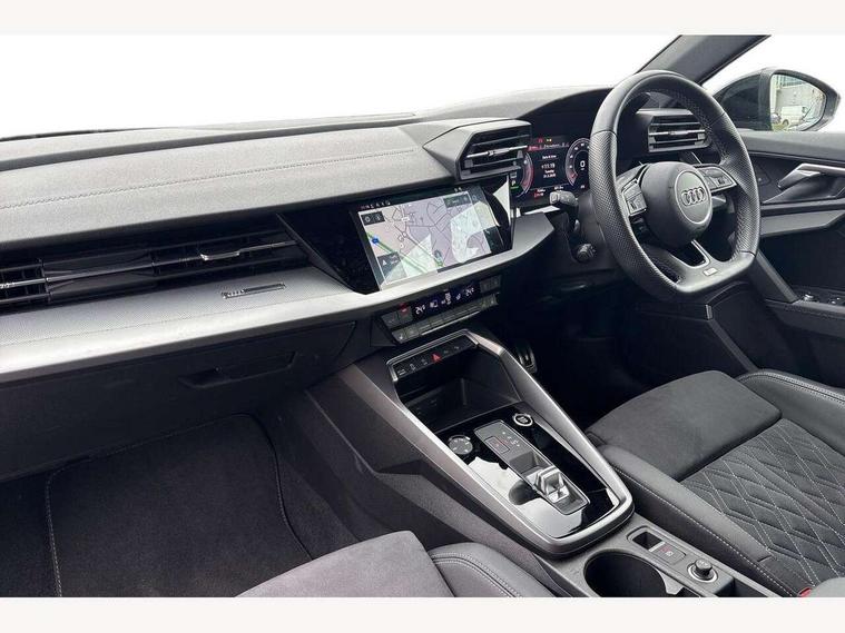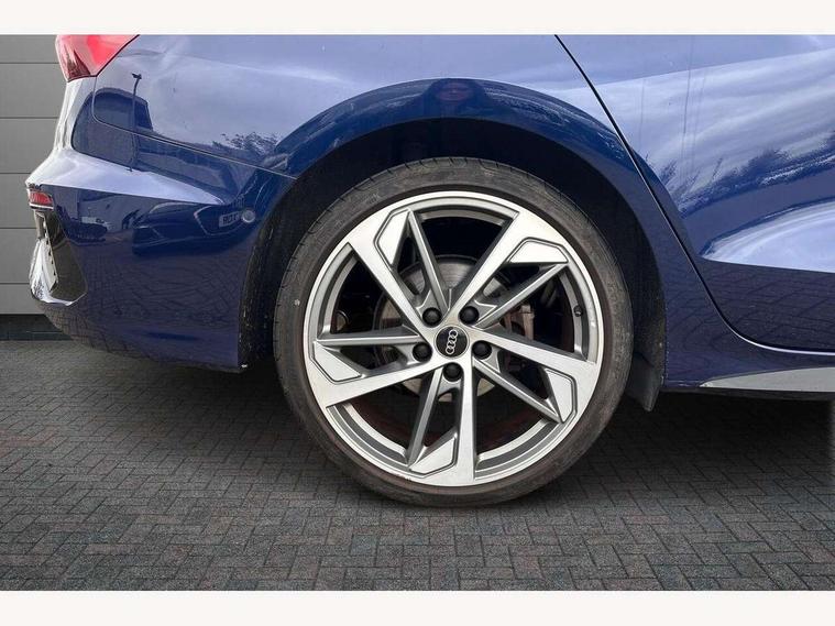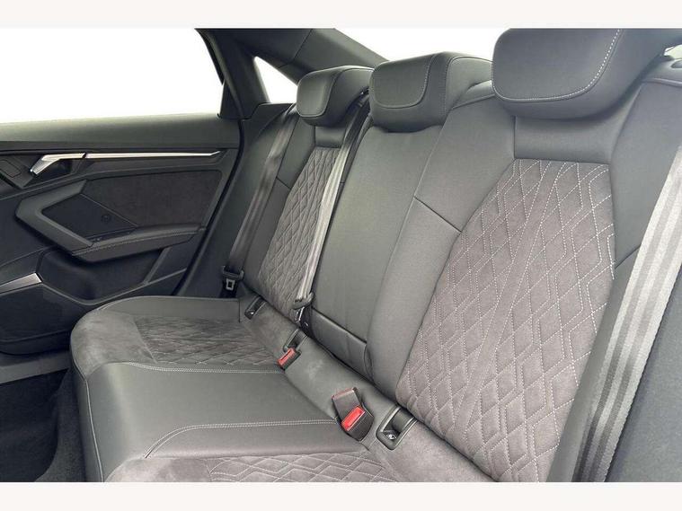 Audi connect emergency call and service, Audi drive select (Auto, Comfort, Dynamic, Efficiency and Individual), Audi smartphone interface, Audi virtual cockpit plus - 12.3" dynamic digital instrument cluster, Automatic start/stop system with recuperation, Bluetooth interface, Collision avoidance assistant, Electromechanical power speed sensitive steering, Lane departure warning system, MMI Navigation Plus with high resolution 10.1" colour touch screen display, Service indicator, Voice control system with natural language interaction, Sports suspension, 2x USB Type C ports (for charging and data transfer), 6 passive loudspeakers, CD player, DAB Digital radio, 3rd brake light, Acoustic glass windscreen, Audi matrix LED headlights, LED rear lights, dynamic front and rear indicators and headlight cleaning system, Auto dimming frameless rear view mirror, Electrically adj heated/folding + automatically dimming exterior mirrors + automatic kerb side function for passenger side exterior mirror, Front electric windows, Illuminated door sills with aluminium inserts at the front with S logo, Integrated LED indicators in door mirrors, LED daytime running lights, Light and rain sensors, Model and engine designation badges at rear, Privacy glass - dark tinted rear window, rear door and side windows, Rear boot, Rear electric windows, Rear side wing doors, S roof spoiler, 12V socket and storage compartment in front centre console, 3 seat bench in 2nd row, 4 way electrically adjustable lumbar support for driver and front passenger, 40/20/40 split folding rear seat bench with cupholder, Black cloth headlining, Dual zone electronic climate control, Electrically adjustable front seats, Front and rear centre armrest in leather, Front and rear headrests, Front/rear floor mats, Heated front seats, Height and reach adjustable steering wheel, Illuminated vanity mirror, Interior lighting - glove compartment light and right hand side, Luggage compartment floor covering, Manual boot compartment lid, Single front passenger seat, Stainless steel pedals and front footrest in black, Aluminium interior elements pack - A3, Black styling pack - A3/S3, Dinamica microfibre/mono.pur 550 artificial leather pack - A3 Saloon, Extended ambient lighting pack - A3/S3 Saloon, LED interior lighting pack - A3 Saloon, 3x3 point rear seat belts, Driver and front passenger airbag with passenger airbag deactivation, Electronic Stabilisation Control (ESC) including ABS, ASR and EDL, First aid kit with warning triangle and 2 safety vests, Front side airbags with head airbags and interaction airbag, Hill hold assist, Pre-sense front with pedestrian and cyclist detection, Seatbelt monitoring, Tyre pressure loss indicator, Anti theft alarm, Anti-theft wheel bolts, Electronically operated child locks, Immobiliser, Remote control central locking, Aluminium air vent surrounds, Aluminium trim elements, Dark spectrum aluminium inlays, accent surfaces in the dashboard and centre console in platinum grey silk effect paint finish, 19" 5 arm trapezoid design alloy wheels in matt grey with diamond cut finish,