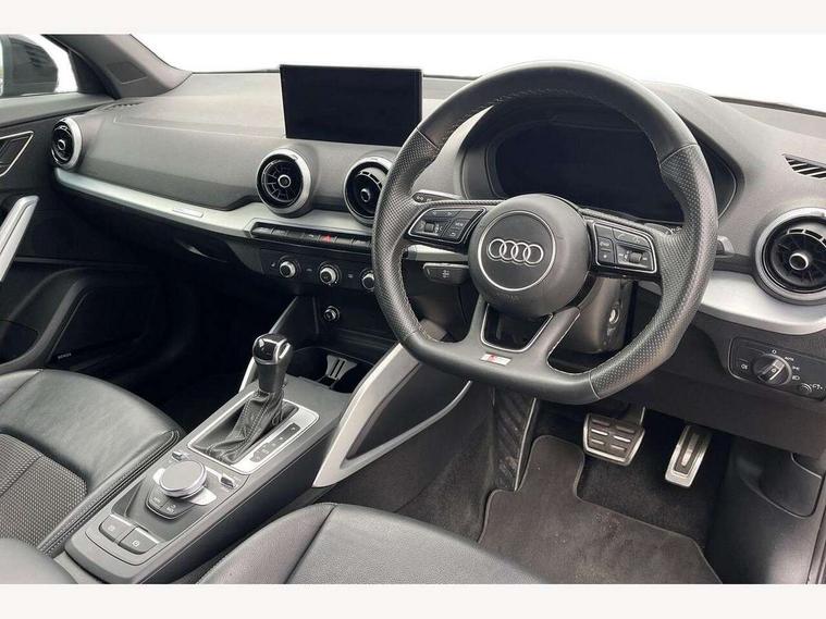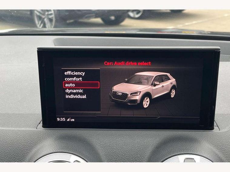 Audi connect navigation and infotainment includes innovative services, Audi connect remote and control connects your vehicle to your smartphone, Audi drive select, Audi drive select - Power steering assistance + engine + gearshift, Audi drive select with efficiency, Audi smartphone interface, Audi virtual cockpit, Automatic start/stop system with recuperation, Bluetooth interface includes bluetooth audio streaming, Cruise control, E-call, MMI navigation plus with MMI touch, Power operated tailgate, Progressive steering, Rear parking sensors, 2 x SDXC card reader, 8 passive loudspeakers, DAB Digital radio, DVD Drive, Auto dimming rear view mirror, Black window trims, Bumper in full body colour paint finish, Electrically adjustable, folding, auto dimming and heated door mirrors with integrated LED side indicators, Front windscreen with grey tinted sunband, LED daytime running lights, LED headlights with LED rear lights, LED third brake light, Privacy glass - dark tinted rear and rear side windows from B-pillar backwards, Rear side wing doors, Rear wiper, Variable front intermittent wipers, Wheel arch trims in manhattan grey, 12V socket in front, 3 seat bench in 2nd row, 3 spoke flat bottomed multi-function leather sport steering wheel with gear shift paddles, 4-way electric lumbar support for front seats including seat height adjustment for both front seat, 60/40 split folding rear seat bench, Black cloth headlining, Front and rear head restraints, Front centre armrest, Front/rear floor mats, Height/reach adjust steering wheel, Illuminated door sill trims with S logo, ISOFIX child seat mounting for front passenger with airbag deactivation and outer rear seat including top tether attachment point for outer rear seats, Single front passenger seat, Stainless steel pedals, Black styling pack - Q2, 3x3 point rear seatbelts, 6 airbags - Front, curtain and front side airbags, Electromechanical parking brake, Electronic stabilisation control including ABS, ASR and EDL, Hill hold assist, Pre-sense front with pedestrian recognition, Seatbelt monitoring, Tyre pressure warning light, Warning triangle and first aid kit, Anti theft alarm, Anti theft wheel bolts, Electronically operated child locks, Remote central door locking, Aluminium interior element, Matt brushed aluminium trim inlays, Tool kit,