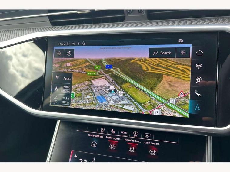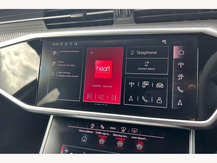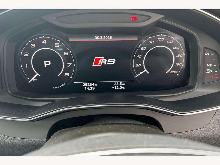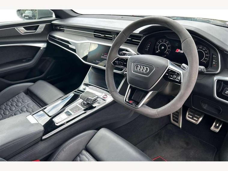 Audi connect safety and service (e-call), Audi connect with Amazon Alexa Integration, Audi drive select with 2 configurable RS modes, Audi smartphone interface with app store includes wireless Apple carplay, Android auto and Amazon alexa integration, Audi virtual cockpit plus with RS specific design and 12.3" display with additional graphic display options, Automatic start/stop system, Bluetooth interface, Convenience key, Dynamic all wheel steering, Head up Display, Lane departure warning system, MMI navigation with MMI touch + twin touch screens 10.1" and 8.6" with haptic and acoustic feedback, Operating buttons in black, glass look with haptic feedback including extended aluminium look, Power operated tailgate, Service interval indicator, Surround view camera system, Voice control system, 48V Mild hybrid technology, 73 litre fuel tank, Increased top speed to 174mph, Quattro sports differential, Audi music interface, Bang & Olufsen 3D Premium Sound System, DAB Digital radio, 3rd brake light, Adaptive windscreen wipers with integrated washer jets, Black audi rings and black RS badges, Electric front/rear windows, Electrically adjustable, heated and folding door mirrors with integrated LED indicators and kerb view function for passenger side, Frameless auto dimming interior rear view mirror, HD Matrix LED headlights with Audi laser light with dynamic light design and dynamic turn signal, Headlight washers, Heat insulating darkened glass in side and rear windows, LED daytime running lights, LED rear combination lamps with dynamic light design and dynamic turn signal, Matt grey mirror housing, Privacy glass with rear/side windows and acoustic glazing side windows, Radiator grille in honeycomb structure, large front air inlets and rear diffuser in gloss black, Rain and light sensors, Rear side wing doors, Rear wiper, RS front bumper with air inlets on both side, RS rear spoiler in body colour, RS sports exhaust system with high gloss black oval tailpipe trims, Towbar preparation, 3 seat bench in 2nd row, 3 spoke RS flat bottom alcantara leather multifunction steering wheel with shift paddles, heated funtion, contrast stitching, RS mode button/RS emblem, 4 way electric lumbar support for driver and front passenger, 4 zone deluxe automatic climate control, Audi phone box light, Electric steering wheel adjustment, Electrically adjustable front seats with driver memory, Entry LED with RS Performance projection (Audi Beam) in front and rear, Front and rear headrests, Front centre armrest, Front seat ventilation, Heated front seats, Illuminated front and rear door sill trims with aluminium inlays and RS6 logo, ISOFIX and Top Tether child seat mounting for the outer rear seats, ISOFIX child seat mounting and Top Tether with front passenger airbag deactivation, RS sports seat plus, Single passenger seat, Stainless steel pedals and foot rest, Air quality pack - RS6, Ambient lighting pack plus - RS6, Matt grey exterior styling pack - RS6, Park assist pack with park assist plus - RS6, Storage pack - RS6, 3 point rear seatbelts, Audi pre sense basic, Audi pre-sense front, Curtain Airbag System, Direct tyre pressure monitoring system, EBD - Electronic brakeforce distribution, Electromechanical parking brake, Electronic Stability Control (ESC) including ABS, ASR and EDL, Extended pedestrian protection measures, Manual child lock in rear doors, Warning triangle and first aid kit, Anti theft alarm with tow away protection, Immobiliser, Keyless Go, Remote central locking, Tyre repair kit,