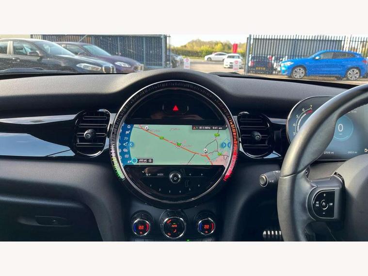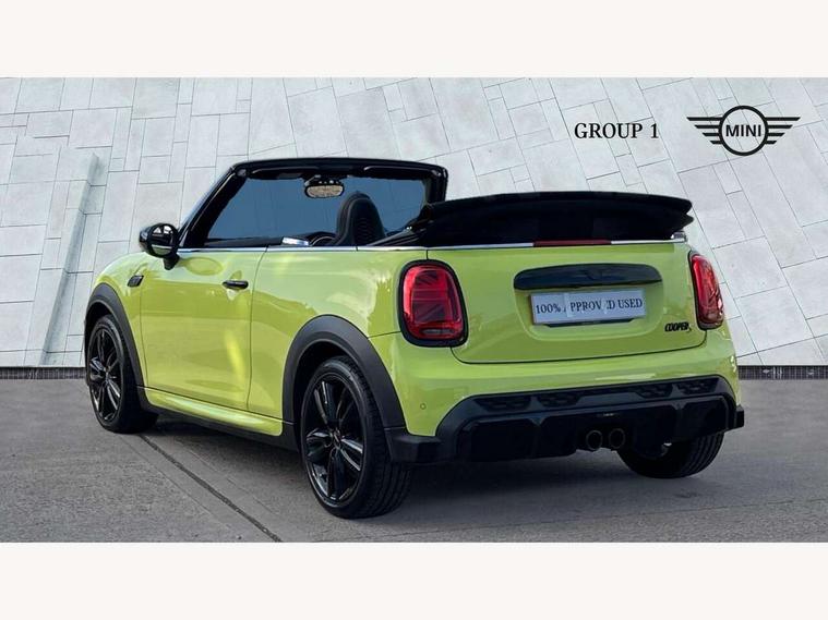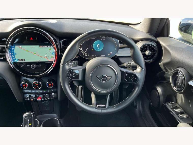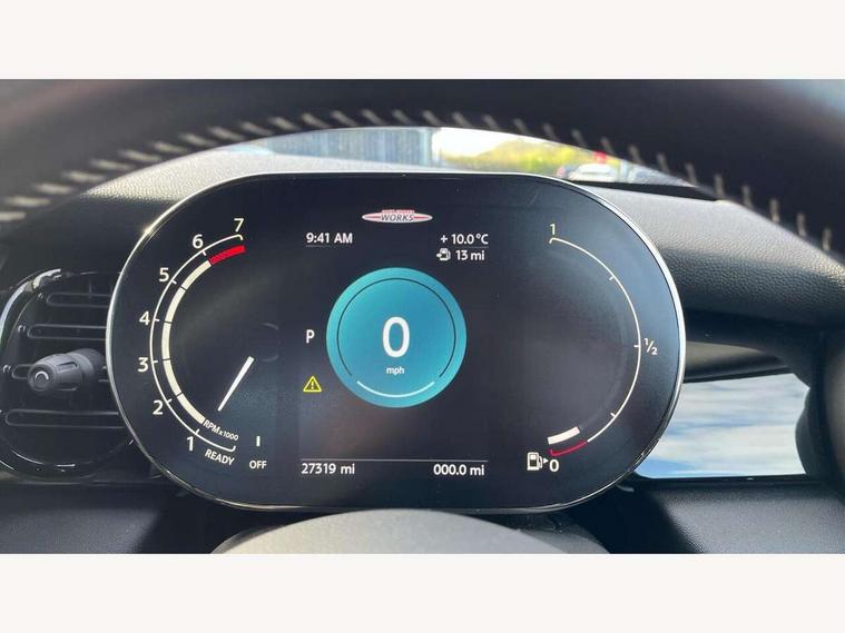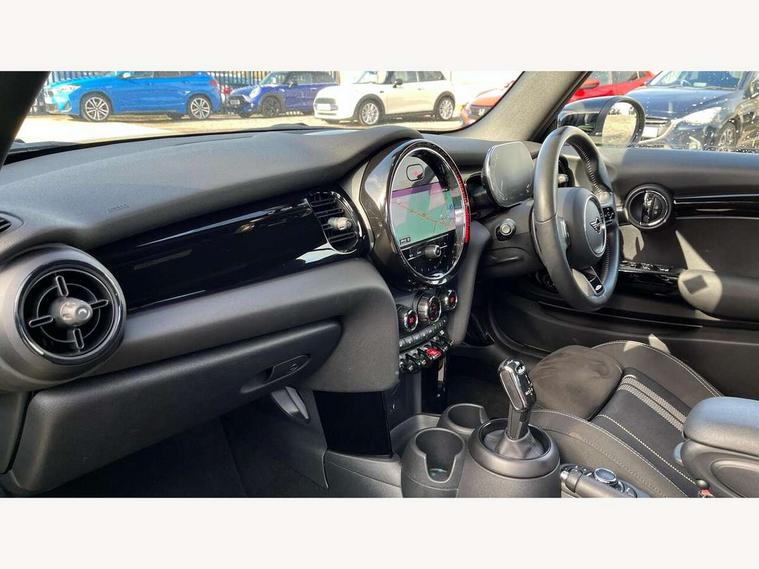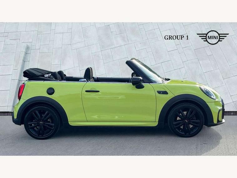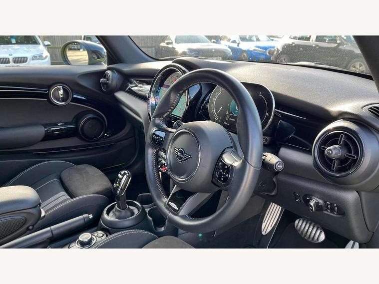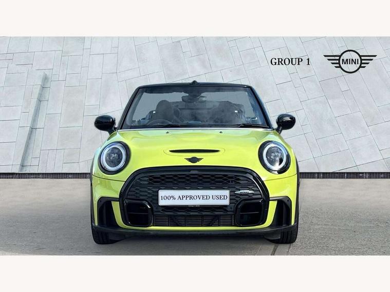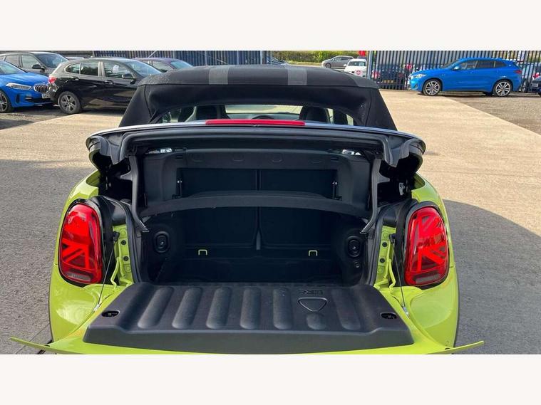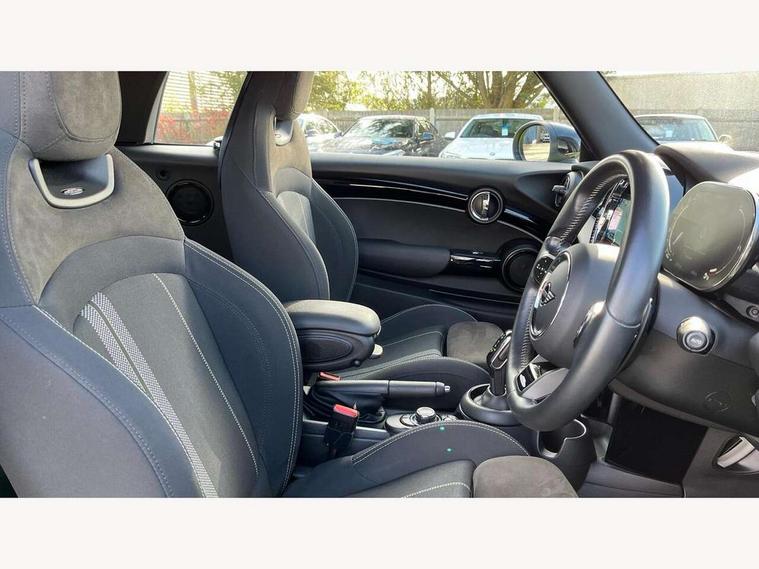 Automatic start/stop function with brake energy recuperation, Compatible mobile phone bluetooth with audio streaming, Digital instrument cluster, Electro-mechanical speed dependant steering assistance, MINI Driving Modes - centre toggle switch to control driving setting (sport, mid and green), Mini E-call, MINI TeleServices, On board computer, Rear park distance control, Service interval indicator, Adaptive suspension, Double Vanos system, Fully variable valve control, High precision injection, Performance Control, Steptronic sport transmission with double clutch and steering wheel paddles, 8.8" touchscreen with LED ring, FM tuner and DAB digital radio, Automatic headlight activation switch, Bonnet scoop, Chrome border honeycomb structure radiator grille with S badge, Dynamic brake lights, Electric windows, Fully electric black softtop with integrated sunroof functionality, Heated rear window, Heated windscreen washer jets, John Cooper Works - aerodynamic kit (front and rear apron, spoiler), front and rear sport bumpers and part-painted side sills with door sill finishers, LED headlight with closed ring and daytime driving lights, Metal door sill strips with Cooper S imprint, Model logo Cooper S on right of tailgate, Piano black exterior, Piano black fuel filler cap, Rain sensor window wipers, Rear fog lights, Rear LED lights with union jack design, Side scuttle panel with integrated indicator, Sun/heat protection glass, Two central exhaust tailpipes with chrome finisher, White indicator lenses, 12V Accessory socket in centre console, 4 lashing eyes in luggage compartment, 50/50 split folding rear seats, Chrome interior highlights, Colour line - Carbon black, Cupholders, Easy Load boot handles, Front and rear isofix with front passenger airbag deactivation, Front seatback storage pockets, Glove compartment, Height and length steering column adjustment, Interior lighting with 12 basic colours selectable via toggle switch in roof, John Cooper Works walk nappa leather steering wheel with grey seam and John Cooper Works badge on piano black lower steering wheel spoke, Leather gearshift lever and handbrake gaiters, Leatherette integrated headrest, adjustable thigh support with john cooper works logo, LED reading lights, vanity mirror lights, front foot well light and spotlight on front seats, Manual air conditioning, Mechanical seat adjustment, driver seat height adjust, forward/back and front seats backrest, Multifunction steering wheel, Rear head restraints, Storage compartments in doors, Sunvisors with vanity mirrors, Velour floor mats, Convertible pack with comfort access - Mini Convertible, 3 point seatbelts on all four seats, 6 Airbags - front, side and seat belt tensioners, Active rollover protection, Anti-lock braking system (ABS), DSC - Dynamic Stability Control, Front and rear disc brakes, Hill start assist, Two tone horn, Tyre pressure monitoring system, Alarm system with tilt sensor, monitoring doors, bonnet interior and tailgate, Electronic vehicle immobiliser, Keyless Go, Piano black interior trim, Tool kit,