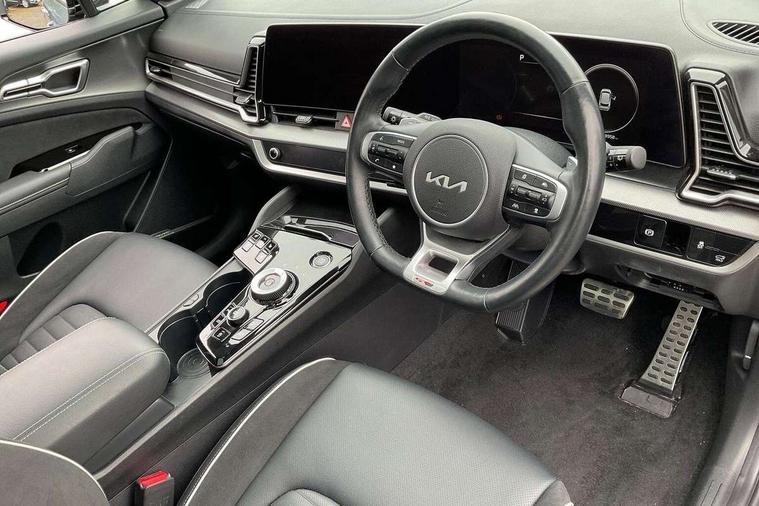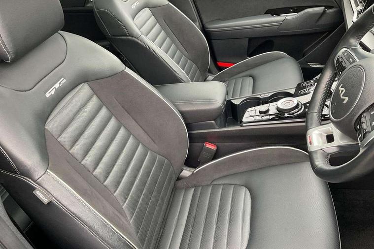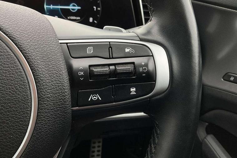 12.3" Display with navigation, 12.3" supervision colour cluster display, 360 degree around view monitor, Apple car play/Android Auto with voice control, Blind spot collision avoidance assist, Blind spot view monitor, Drive mode selector, E-call, Forward collision avoidance assist (FCA) - city/pedestrian/cyclist/junction covering, Front and rear parking sensors, Highway Driving Assist (HDA), Intelligent speed limit assist, Kia Connect (UVO), Lane Following Assist (LFA), Lane keep assist, Low washer fluid warning, Parking collision avoidance assist (PCA), Reversing camera system integrated into centre fascia screen, Smart cruise control with stop and go functionality, Smart power tailgate, Speed sensitive power steering, Trip computer, Windscreen washer level indicator, Wireless Smartphone charger, Intelligent Stop and Go, Bluetooth audio streaming, DAB Radio with MP3, Harman Kardon premium sound system, Rear USB port, Steering wheel mounted audio controls, USB C type charging ports on centre console, USB C type charging ports on side of front seats, USB port for connection of a media device, All round electric windows with drivers and front passenger auto up/down function, Automatic headlight control system, Automatic window defogger, Backlite glass heated with timer, Body colour and black bumper with silver accents, Body colour exterior door handles, Body colour radiator upper garnish and door garnish, Dual LED adaptive headlamps, Electric panoramic glass sunroof (Electric one touch with safety function), Electrically adjustable/heated/folding door mirrors with LED indicators, Front and rear chrome skid plates, Gloss black door mirrors, Gloss black radiator grille, Gloss black side sill and wheel arch body mouldings, Glossy black roof rack, High beam assist, Interior electrochromic mirror, LED daytime running lights, LED front fog lamps, LED High mounted stop light, LED rear combination lamp, Rain sensing wipers with aero blades, Rear fog lamp, Rear privacy glass, Rear side wing doors, Rear spoiler, Rear wiper, Satin finished beltline, Silver coloured inserts to bumpers, Tinted rear glass, Trailer stability assist, 10 way driver/8 way passenger electrically power adjustable seats, 12V power socket in front centre fascia and luggage compartment, 3 seat bench in 2nd row, 3 x passenger assist grips, 40/20/40 split folding rear seat, All-round height adjustable headrests, Ambient lighting, Black headlining, Centre console storage box, Cupholders in rear armrest, D-Shaped sports leather steering wheel and perforated inserts with GT-Line logo, Door courtesy lamps, Drink holder at centre armrest, Driver and front passenger side sunvisors with illuminated vanity mirrors, Driver seat memory function, Drivers seat power lumbar support, Front and rear door storage, Front seat and rear pockets, Front/rear centre armrests, Gear shift indicator, Glovebox illumination, Heated front and outer rear seats, Heated steering wheel, Interior door lock/unlock function, ISOFIX Child seat top tethers and anchor fixings outer rear seats, LED interior personal lamp, LED lighting in overhead console, Luggage area LED light, Luggage area load cover, Luggage net with hooks, Metal paint interior door handles, Paddle shift controls, Rear cabin light, Rear coat hooks, Single front passenger seat, Sports pedals, Suede leather upholstery, Three zone climate control, Tilt/telescopic adjustable steering wheel, Ventilated front seats, Ventilation ducts to rear compartment, Active front headrests, All round 3-point seatbelts, Anti-lock braking system (ABS), Dual front side airbags, Dual horn, Electronic parking brake, Electronic stability control with downhill brake control, Front passenger airbag cut-off switch, Front seatbelt pretensioners + load limiters, Height adjustable front seatbelts, Hill start assist control (HAC), Impact sensing auto door unlocking, Multi collision brake assist, Rear door child safety locks, Rear seat alert system, Traction control, Twin curtain airbags, Twin front airbags, Tyre pressure monitoring system, Advanced anti-theft system including immobiliser and alarm, Door deadlocks, Engine Start/Stop Button with Smart Entry System, Locking wheel nuts, Speed sensitive auto door locking, Visible vehicle identification number, Aluminium pattern finish centre fascia and door garnish, 19" GT-Line alloy wheels, Michelin tyres, Tyre mobility kit,
