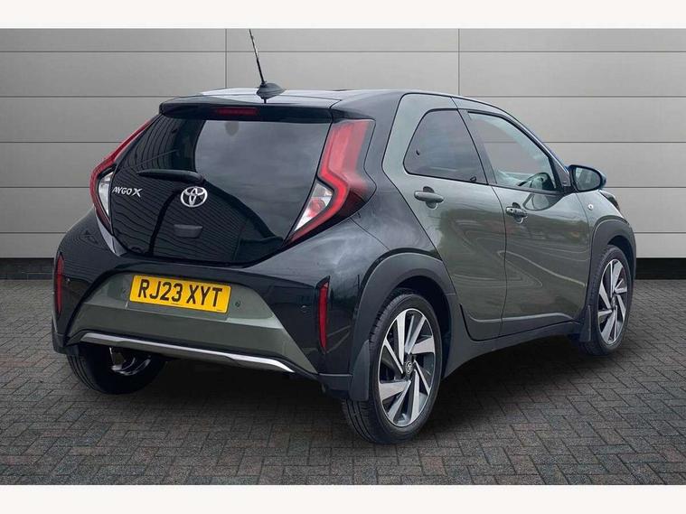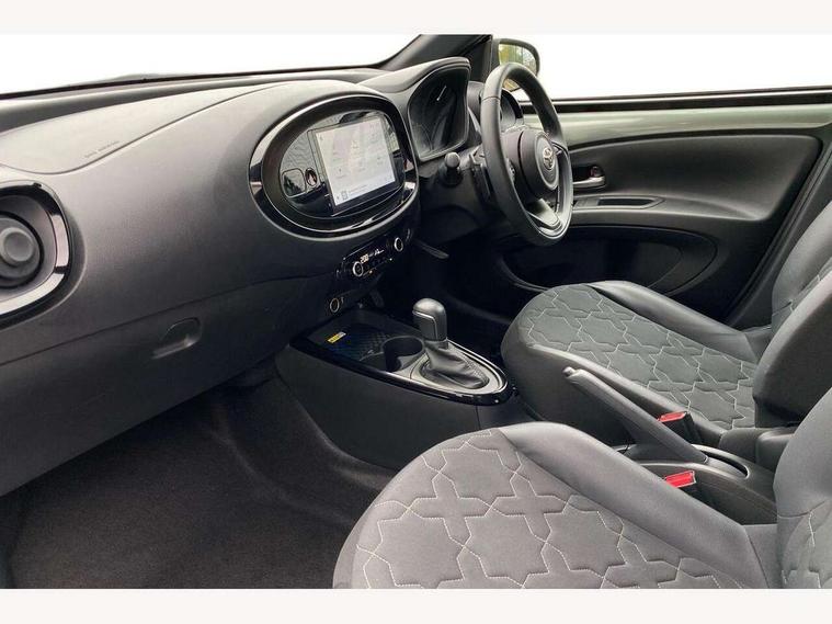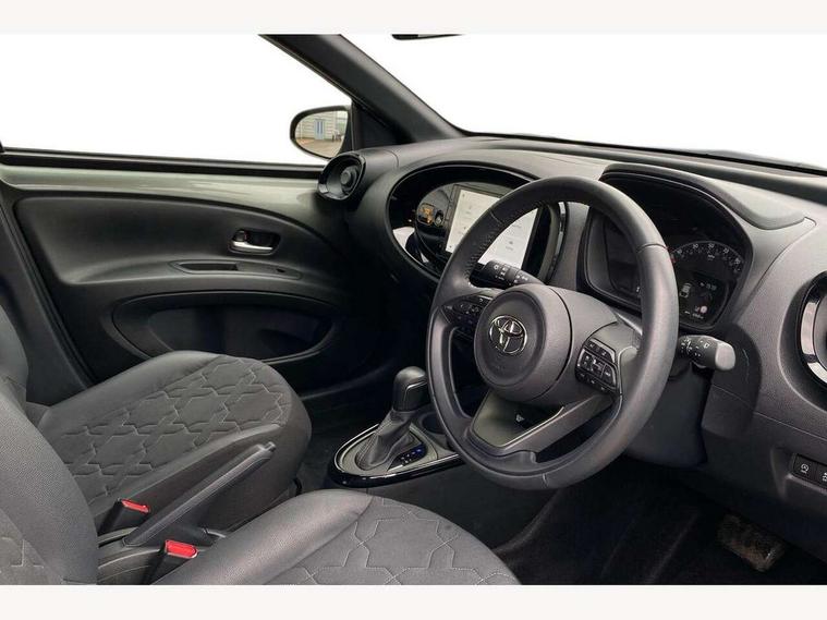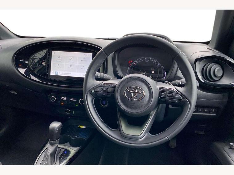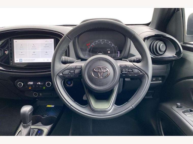 4.2" TFT colour screen, Adjustable speed limiter, Analogue speedometer, Bluetooth connectivity, Digital tachograph, Driver attention alert system, eCall emergency call system, ECO-driving indicator, Electric power steering, Front and rear parking sensors with auto brake, Intersection turn assist, Key reminder warning, Noise reduction kit, Pre collision system with emergency steering assist, Remote boot door release on key, Reversing camera with static guide lines, Smart entry and push button start, Speed limit display, Start and stop, Wireless charger, Wireless Smartphone Integration includes Apple CarPlay and Android auto, Vehicle Stability Control (VSC), 4 speakers, 9" HD multimedia display touch screen with Toyota smart connect, DAB digital audio broadcast, USB connector, Auto headlights, Auto wipers, Automatic headlights cut-off, Automatic high beam On/Off switch, Bicycle towing hook, Black fog light surrounds, Black side protection mouldings, Black wheel arch mouldings, Body colour door handles, Body coloured front bumper, Boot door scuff plate, Eclipse black rear bumper, Electric heated door mirrors, Follow me home headlights, Front and rear underruns in silver, Front fog lights, Front power windows, Gloss black door mirrors, Gloss black upper front grille, Headlight cut-off reminder, LED daytime running lights guide, LED front light guide, LED High mounted stop lamp, LED projector headlights, Manual day/night rear view mirror, Manual headlight levelling, Pagoda roof, Power adjustable door mirrors, Power back door, Privacy glass, Rain sensor, Rear combination lights LED bulb type, Rear side wing doors, Rear windscreen defogger, Rear windscreen wiper, Remote hazard lights system, Short antenna, Variable intermittent windscreen wipers, 12v power outlet - front, 2 seat bench in 2nd row, 3 spoke leather steering wheel, 50/50 split folding rear seat, Adhesive roof headlining, Adjustable speed limiter switch on steering wheel, Audio and telephone switches on steering wheel, Auto air conditioning, Black roof lining, Body colour satin anodised insert on steering wheel, Boot light, Centre room light, Chrome interior door handles, Chrome surround on air conditioning buttons, Clean air filter, Console box storage, Floor mats, Front and rear cup holders, Front head rest deco art, Front head restraints, Gear shift indicator, Height adjustable driver seat, Intelligent adaptive cruise control switch on steering wheel, ISOFIX child restraint system on rear seats, Lane departure alert switch on steering wheel, Leather gearshift knob, Light blue ambient lighting in centre console, Manual tilt steering wheel, Manually reclining and sliding driver seat, Manually reclining and sliding front passenger seat, Multimedia switches on steering wheel, Paddle shift levers on steering wheel, Partial synthetic leather upholstery, Pollen filter, Rear door pockets, Rear head restraints, Remote air-conditioning system, Satin silver insert on gear shift knob, Single compartment glovebox with lights, Single front passenger seat, Soft tonneau cover, Sun visors with mirror on driver and passenger side, Voice recognition switch on steering wheel, Toyota safety sense pack - Aygo X, Anti lock braking system + Electronic brake force distribution, Child safety door lock, Emergency brake light signal (EBS), Hill start assist control (HAC), Passenger airbag on/off switch, Seat belt reminder for front and rear seats, Supplement restraints system (SRS) - 6 airbags, Traction control, Tyre pressure warning system, Immobiliser, Remote power door locks, Black wheel centre caps, Tyre repair kit,
