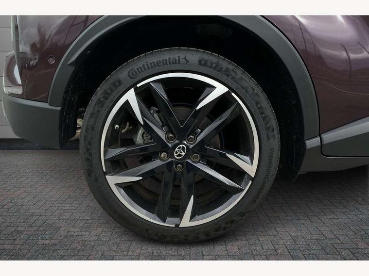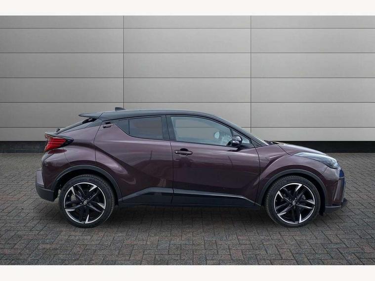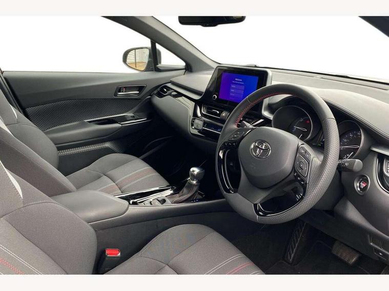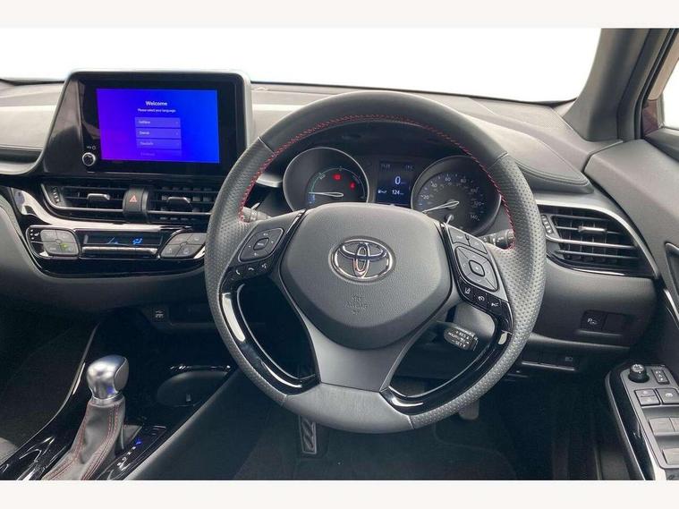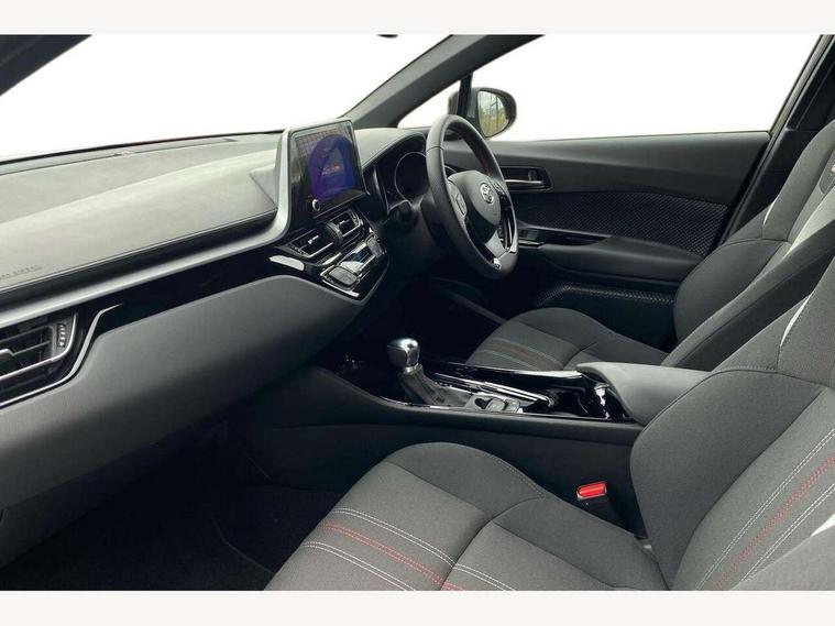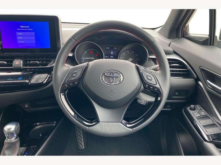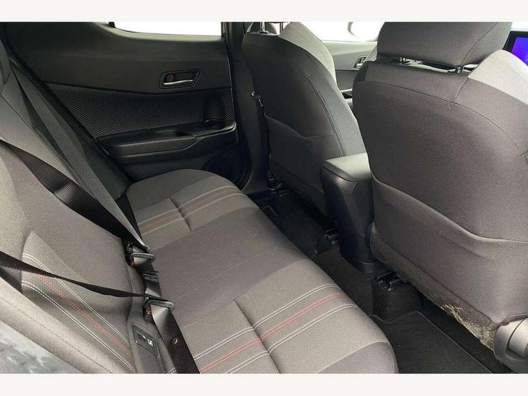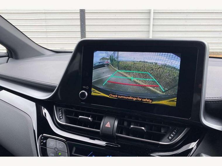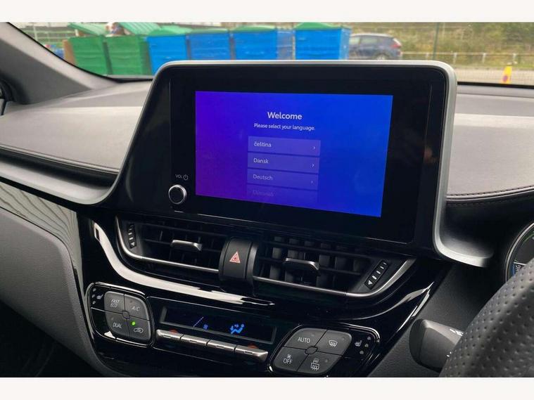 4.2" coloured TFT screen for multi-information display, Adaptive cruise control, Apple car play and Android auto, Bluetooth connectivity, E-call, Electric power steering, Hybrid system indicator, Lane departure alert with steering control, Lane trace assist, Push button tailgate release, Remote boot door release in cabin, Remote boot door release in key, Reversing camera, Road sign assist - RSA, Simple Intelligent parking assist, Smart voice assist, Touch 2 Go navigation system, Trip computer, Voice recognition, Wireless smartphone integration, Vehicle Stability Control (VSC), 6 speakers, AM/FM radio, DAB Radio (Digital Audio Broadcasting), Toyota touch 2 multimedia system with 8" display, USB connector, Wi-fi connectivity, Adaptive front light system, Adaptive LED Headlights, Anti-jam protection on power windows, Auto high beam, Auto up and down function on all power windows, Automatic headlight levelling, Automatic headlights, Automatic headlights cut-off, Black and body coloured rear bumper, Black upper front grille, Body colour door handles, Body colour door mirrors, Body coloured front bumper, Boot door release with push button, Chrome front lower bumper, Electric heated door mirrors, Follow me home headlights, Front and rear power windows, Front spoiler lip in black, Headlight cut off reminder, Honeycomb lower front grille, LED daytime running lights, LED fog lights, LED front light guide, LED High mounted stop light, LED rear brake lights, LED rear combination lights, Noise reduction layer on front windows and windscreen, Power adjustable door mirrors, Privacy glass, Rain sensor, Rear sequential indicators, Rear side wing doors, Rear spoiler, Rear tailgate, Rear window defogger, Rear window wiper, Shark fin antenna, UV-filter on driver and passenger windows, UV-filter on rear windows, Variable front intermittent wipers, 12v power outlet - front, 3 rear headrests, 3 seat bench in 2nd row, 3 spoke perforated leather steering wheel, 60/40 split folding 2nd row rear seats, Adjustable rear headrests, Adjustable speed limiter switch on steering wheel, Assist grips front and centre pillar, Audio and telephone switches on steering wheel, Black front door assist grips, Blue ambient lighting on front cup holders, Blue ambient lighting on front doors, Boot light, Chrome interior door handles, Cloth upholstery, Driver and front passenger personal light, Driver and front passenger Whiplash Injury Lessening seats, Driver and passenger seatback pockets, Dual zone automatic air conditioning, Floor mats, Front cupholders, Front head restraints, Front sports seats, Glovebox with internal light, Hard tonneau cover, Heated driver and front passenger seats, Hooks for luggage holding net, Humidifying Nanoe air purifier, Illuminated entry system, Isofix attachments on outer rear seats, Leather gearshift, Light on driver sun visor, Light on passenger sun visor, Manual telescopic steering wheel, Manual tilt steering wheel, Manually height adjustable driver seat, Manually height adjustable front passenger seat, Manually reclining driver seat, Manually reclining front passenger seat, Manually sliding driver seat, Manually sliding front passenger seat, Microphone on front personal light, Mirror on driver sun visor, Mirror on passenger sun visor, Multimedia switches on steering wheel, Pollen filter, Power adjustable lumbar support on driver seat, Shopping bag hooks, Single front passenger seat, Slow opening on lower glovebox, Voice recognition switch on steering wheel, Tech with parking sensor pack - C-HR, 16 Disk front wheel brake, 3x3 point rear seatbelts, ABS+EBD+Brake assist, Electronic parking brake, Front and rear seatbelt reminder, Front passenger airbag on/off switch, Hill start assist control (HAC), Pre collision system with pedestrian detection, Pre-tensioners and force limiters, Rear door child safety locks, SRS Airbags - Driver + Front passenger, front side, front and rear curtain and driver's knee airbags, Toyota safety sense, Tyre pressure monitoring system, Tyre pressure warning system, Acoustic vehicle alert system (AVAS), Glass-breaking alarm sensors, Immobiliser, Intrusion alarm, Intrusion sensor, Motion sensor alarm, Power door locks, Power passenger window lock, Remote central locking, Black lower dashboard, Black upper dashboard, Piano black console, Silver deco line on upper dashboard, 19" Black machined alloy wheels, Tyre repair kit,