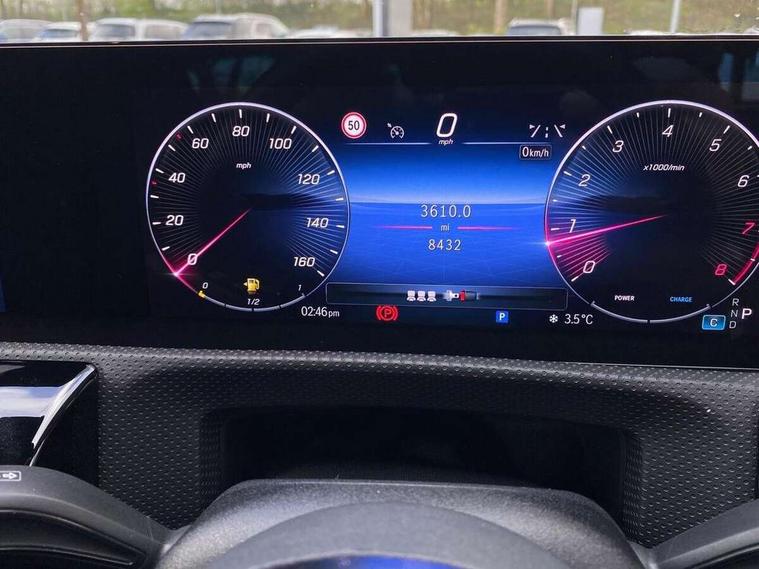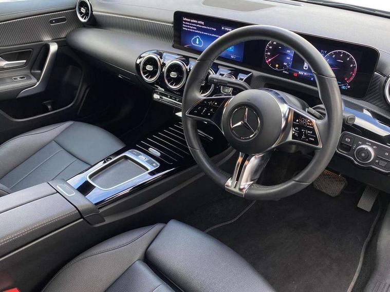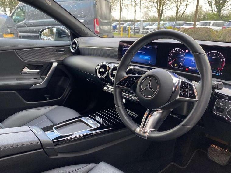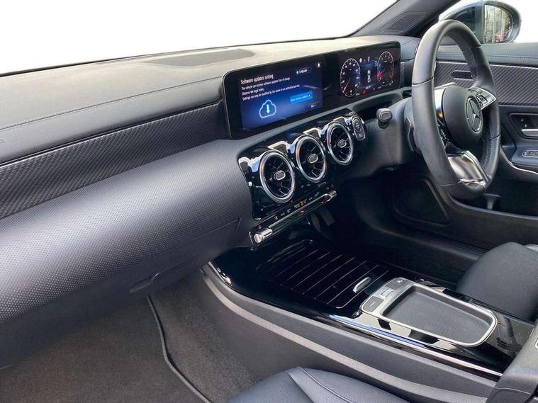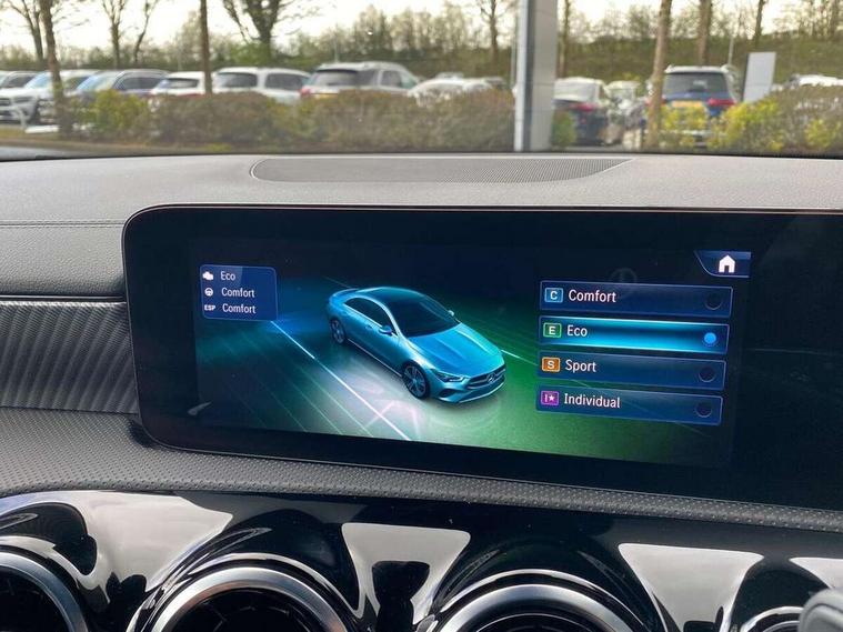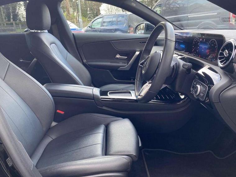 10.25 inch Instrument display with digital cockpit, 10.25 inch touchscreen central media display, Active lane keeping assist, Attention assist - Monitors steering behaviour and long journey fatigue, Bluetooth connection, Car wash mode, Cruise control with limiter, Direct steer system, DYNAMIC SELECT with a choice of driving modes (ECO, Comfort, Sport and Individual), ECO start/stop function, Fluid level warning indicator for fuel, oil, coolant and washer fluid, Hard-disk navigation, Hey Mercedes Voice activation, Lamp failure indicator, Mercedes me connect including emergency call system, accident recovery, breakdown and maintenance management, Mercedes me remote services, Outside temperature gauge, Owners manual in English, Pre-installation of private car share, Radio aerial integrated into front and rear windshields, Service indicator (ASSYST), Smartphone integration with Apple CarPlay and Android auto, Speed limit assist, Trip computer in multifunction display with current consumption indicator, Comfort suspension, Rear axle multi-link, DAB digital radio tuner, MBUX multimedia system, Mercedes Benz sound system (100 W) with 6 speakers, Pre installation for Mercedes Benz Link, Adaptive brake lights, Body colour door handles (Chrome insert with Keyless entry), Chrome beltline strips, Electric windows, Electrically adjustable and heated door mirrors with integrated LED indicators, Exhaust system with 2 Visible tailpipe trim elements and rear apron with trim in chrome, Headlamp assist automatic headlamp activation, Heated glass rear windscreen + timer control, High level LED third brake light, Interior mirror with black reading lamps and frameless, LED high performance headlamps with integrated LED daytime running lights and adaptive highbeam assist, LED tail lamp, Privacy glass with dark tinting on rear side windows and rear window, Progressive body-styling - Front apron with trim strip in chrome, visible tailpipe trim elements and rear apron with trim strip in chrome, Radiator grille with Mercedes-Benz pattern in high-gloss black and central Mercedes star, single louvre in matt grey with chrome inserts, Rain sensing windscreen wipers with two sensitivity settings, Rear boot, Rear fog lamp, Rear side wing doors, Variable front intermittent wipers, Window line trim strip in chrome, 3 seat bench in 2nd row, 3 spoke ARTICO man made leather multi function sports steering wheel with black grained gearshift paddles, oeration via touch control panels, 4 way lumbar support, 40:20:40 split folding rear seat backrests, Air conditioning - One zone THERMATIC automatic climate control with automatically controlled air distribution, Air vents with surround in silver chrome, Artico man-made leather upholstery, Automatic child seat recognition sensor, Black roof lining, Brushed stainless steel sports pedals with rubber studs, Comfort seats, Fluorescent jacket, Front centre armrest with stowage, Front head restraints, Heated front seats, Luggage net on driver/front passenger seat backrest, Manually height and reach adjustable steering column, Rear head restraints, Single front passenger seat, Stowage compartment in centre console with retractable cover, Sunvisors with illuminated vanity mirrors, Twin front cupholders, Two outer rear seat isofix and top tether child seat fixing points, Velour floor mats, Light and sight pack - CLA, Mirror pack - CLA, Parking pack with reversing camera - CLA, Seat comfort pack - CLA, USB package plus - CLA, Active bonnet pedestrain safety measure which detects an impact and raises bonnet by 65mm, Active brake assist includes forward collision warning system with autonomous braking, Adaptive brake assist with hold function and hill start assist, Anti lock braking system (ABS) with brake assist, Black seat belts, Bonnet with power domes, Brake pad wear warning indicator, Childproof locks manually operated for rear doors and electrically operated for rear power windows, Crash responsive emergency lighting, Driver and front passenger head and sidebags, Driver and front passenger windowbags, Drivers knee airbag, Dual stage driver and front passenger airbags, Electric parking brake, Electronic stability programme with acceleration skid control, ESP curve dynamic assist, Front and rear seatbelt reminder, Front passenger seat occupancy sensor, Three point rear seat belts, Tyre pressure monitoring system, Warning triangle and first aid kit, Alarm system with immobiliser and interior protection -Thatcham category 1, Guard 360 deg vehicle protection - tow away protection with visual, acoustic warning, interior monitoring, preinstallation for parking damage, Remote central locking and crash sensor with emergency opening function, Dark carbon fibre look trim, 18" multi-spoke himalayas grey painted light alloy wheels with high sheen rim finish, Summer tyres, Tirefit tyre sealant kit,