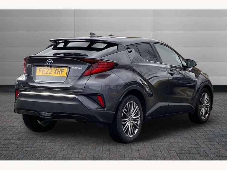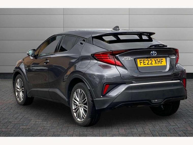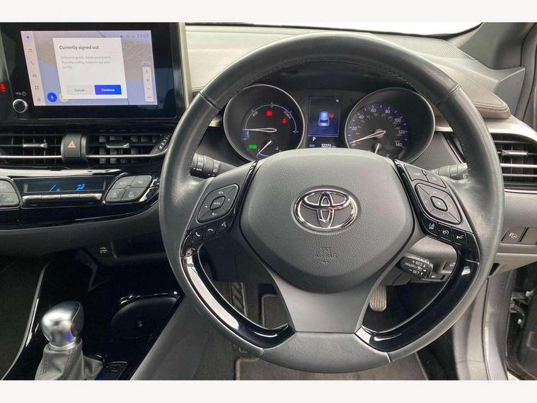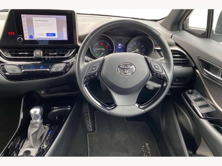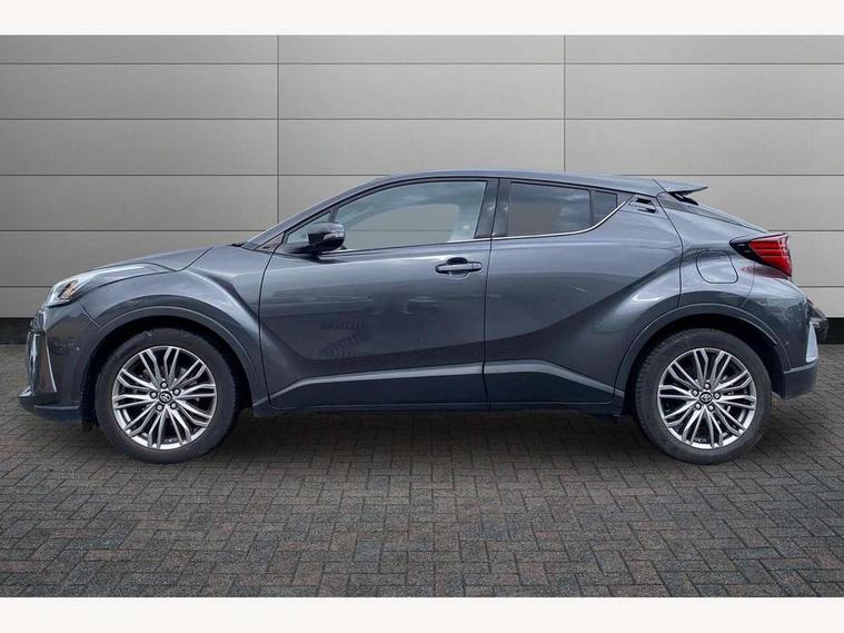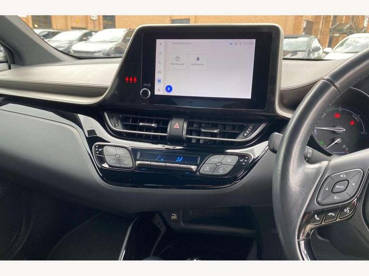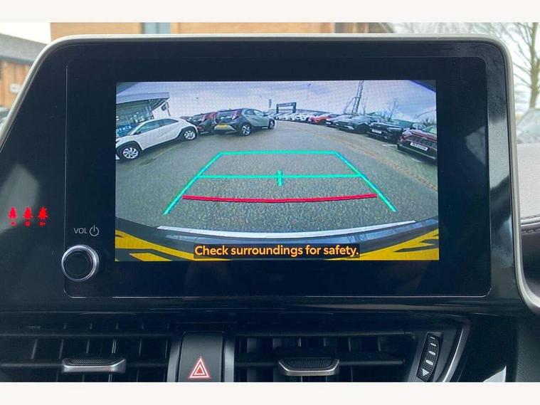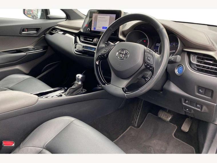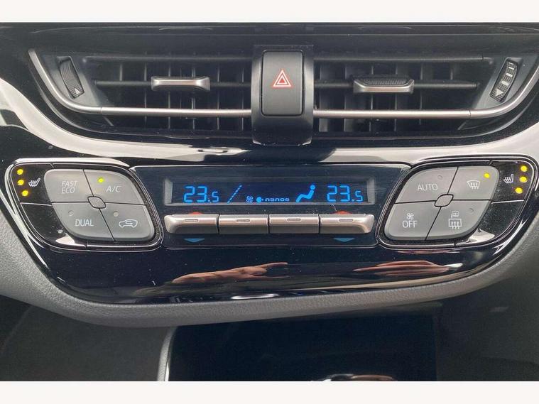 4.2" coloured TFT screen for multi-information display, Adaptive cruise control, Bluetooth connectivity, E-call, Electric power steering, Hybrid system indicator, Lane departure alert with steering control, Remote boot door release in cabin, Remote boot door release in key, Reversing camera, Road sign assist - RSA, Simple Intelligent parking assist, Touch 2 Go navigation system, Trip computer, Voice recognition, Vehicle Stability Control (VSC), 6 speakers, AM/FM radio, DAB Radio (Digital Audio Broadcasting), Toyota touch 2 multimedia system with 8" display, USB connector, Wi-fi connectivity, Adaptive front light system, Adaptive LED Headlights, Anti-jam protection on power windows, Auto high beam, Auto up and down function on all power windows, Automatic headlight levelling, Automatic headlights, Automatic headlights cut-off, Black and body coloured rear bumper, Black upper front grille, Body colour door handles, Body colour door mirrors, Body colour front spoiler lip, Body coloured front bumper, Boot door release with push button, Electric heated door mirrors, Follow me home headlights, Front and rear power windows, Honeycomb lower front grille, LED daytime running lights, LED fog lights, LED front light guide, LED High mounted stop light, LED rear brake lights, LED rear combination lights, Noise reduction layer on front windows and windscreen, Power adjustable door mirrors, Privacy glass, Rain sensor, Rear sequential indicators, Rear side wing doors, Rear spoiler, Rear tailgate, Rear window defogger, Rear window wiper, Shark fin antenna, UV-filter on driver and passenger windows, UV-filter on rear windows, 12v power outlet - front, 3 rear headrests, 3 seat bench in 2nd row, 3 spoke leather steering wheel, 60/40 split folding rear seat, Adjustable rear headrests, Adjustable speed limiter switch on steering wheel, Assist grips front and centre pillar, Audio and telephone switches on steering wheel, Black front door assist grips, Blue ambient lighting on front cup holders, Blue ambient lighting on front doors, Boot light, Chrome interior door handles, Driver and front passenger personal light, Driver and front passenger Whiplash Injury Lessening seats, Driver and passenger seatback pockets, Dual zone automatic air conditioning, Floor mats, Front cupholders, Front head restraints, Front sports seats, Glovebox with internal light, Hard tonneau cover, Heated driver and front passenger seats, Heated steering wheel, Hooks for luggage holding net, Humidifying Nanoe air purifier, Illuminated entry system, Isofix attachments on outer rear seats, Leather gearshift, Light on driver sun visor, Light on passenger sun visor, Manual telescopic steering wheel, Manual tilt steering wheel, Microphone on front personal light, Mirror on driver sun visor, Mirror on passenger sun visor, Multimedia switches on steering wheel, Pollen filter, Power adjustable lumbar support on driver seat, Power tilting cushion on driver seat, Shopping bag hooks, Single front passenger seat, Slow opening on lower glovebox, Voice recognition switch on steering wheel, Leather pack - C-HR, Tech with parking sensor pack - C-HR, 16 Disk front wheel brake, 3x3 point rear seatbelts, ABS+EBD+Brake assist, Electronic parking brake, Front and rear seatbelt reminder, Front passenger airbag on/off switch, Hill start assist control (HAC), Pre collision system with pedestrian detection, Pre-tensioners and force limiters, Rear door child safety locks, SRS Airbags - Driver + Front passenger, front side, front and rear curtain and driver's knee airbags, Toyota safety sense, Tyre pressure monitoring system, Acoustic vehicle alert system (AVAS), Glass-breaking alarm sensors, Immobiliser, Intrusion alarm, Intrusion sensor, Motion sensor alarm, Power door locks, Power passenger window lock, Remote central locking, Black lower dashboard, Dark brown upper dashboard, Piano black console, Silver deco line on upper dashboard, Tyre repair kit,