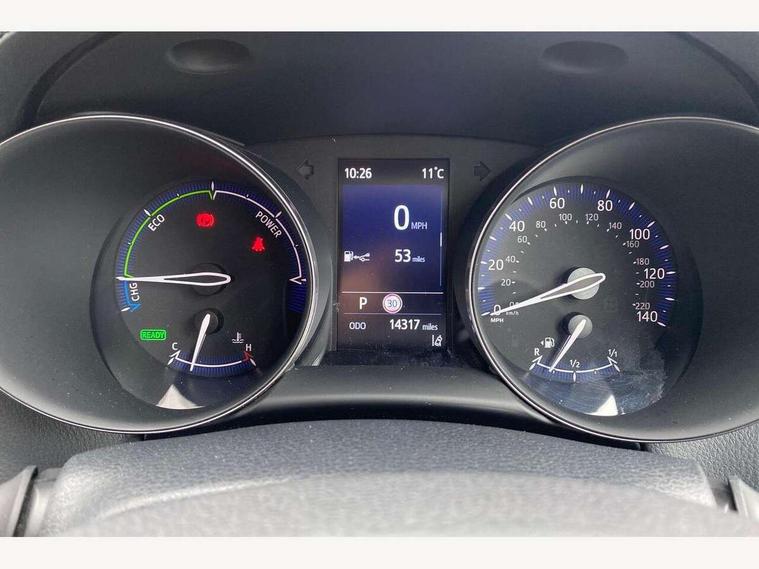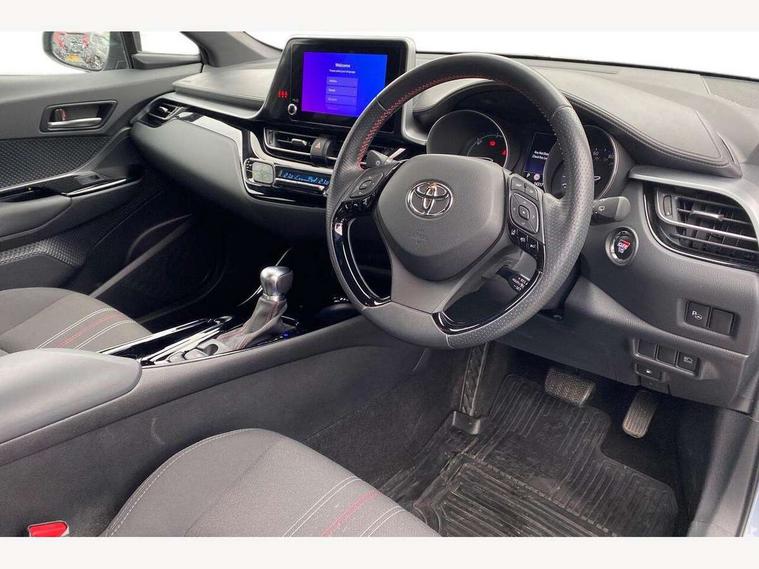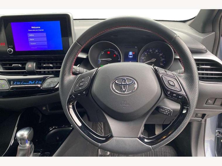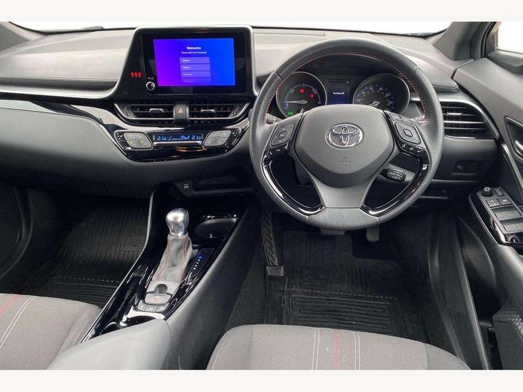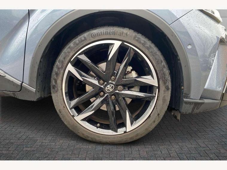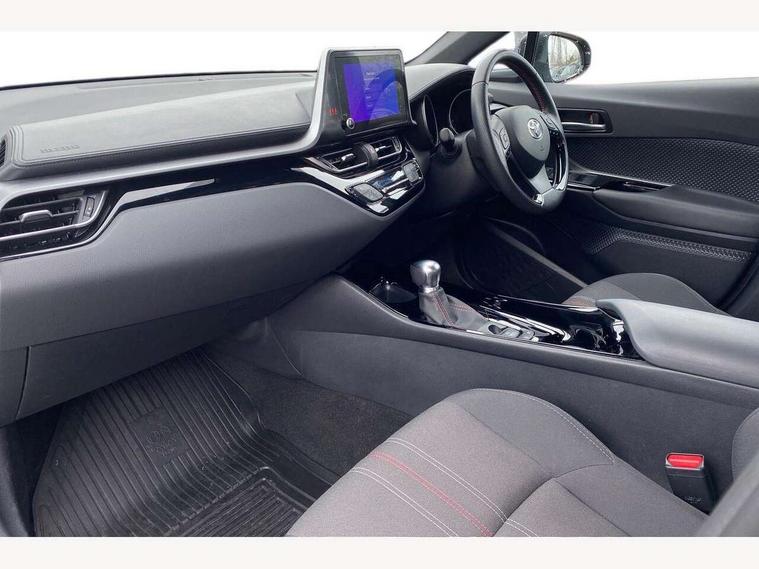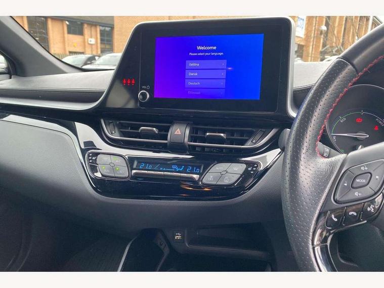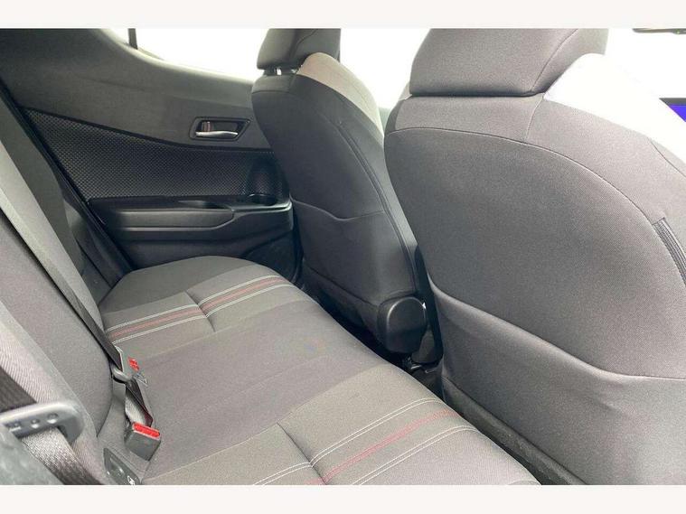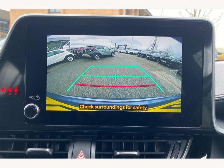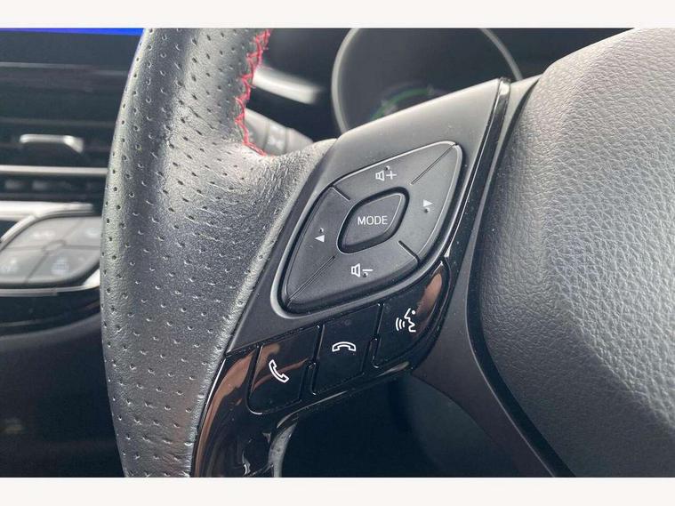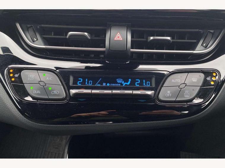 4.2" coloured TFT screen for multi-information display, Adaptive cruise control, Bluetooth connectivity, E-call, Electric power steering, Hybrid system indicator, Lane departure alert with steering control, Lane trace assist, Push button tailgate release, Remote boot door release in cabin, Remote boot door release in key, Reversing camera, Road sign assist - RSA, Simple Intelligent parking assist, Smart voice assist, Touch 2 Go navigation system, Trip computer, Voice recognition, Wireless smartphone integration, Vehicle Stability Control (VSC), 6 speakers, AM/FM radio, DAB Radio (Digital Audio Broadcasting), Toyota touch 2 multimedia system with 8" display, USB connector, Wi-fi connectivity, Adaptive front light system, Adaptive LED Headlights, Anti-jam protection on power windows, Auto high beam, Auto up and down function on all power windows, Automatic headlight levelling, Automatic headlights, Automatic headlights cut-off, Black and body coloured rear bumper, Black upper front grille, Body colour door handles, Body colour door mirrors, Body coloured front bumper, Boot door release with push button, Chrome front lower bumper, Electric heated door mirrors, Follow me home headlights, Front and rear power windows, Front spoiler lip in black, Headlight cut off reminder, Honeycomb lower front grille, LED daytime running lights, LED fog lights, LED front light guide, LED High mounted stop light, LED rear brake lights, LED rear combination lights, Noise reduction layer on front windows and windscreen, Power adjustable door mirrors, Privacy glass, Rain sensor, Rear sequential indicators, Rear side wing doors, Rear spoiler, Rear tailgate, Rear window defogger, Rear window wiper, Shark fin antenna, UV-filter on driver and passenger windows, UV-filter on rear windows, 12v power outlet - front, 3 rear headrests, 3 seat bench in 2nd row, 3 spoke perforated leather steering wheel, 60/40 split folding rear seat, Adjustable rear headrests, Adjustable speed limiter switch on steering wheel, Assist grips front and centre pillar, Audio and telephone switches on steering wheel, Black front door assist grips, Blue ambient lighting on front cup holders, Blue ambient lighting on front doors, Boot light, Chrome interior door handles, Cloth upholstery, Driver and front passenger personal light, Driver and front passenger Whiplash Injury Lessening seats, Driver and passenger seatback pockets, Dual zone automatic air conditioning, Floor mats, Front cupholders, Front head restraints, Front sports seats, Glovebox with internal light, Hard tonneau cover, Heated driver and front passenger seats, Hooks for luggage holding net, Humidifying Nanoe air purifier, Illuminated entry system, Isofix attachments on outer rear seats, Leather gearshift, Light on driver sun visor, Light on passenger sun visor, Manual telescopic steering wheel, Manual tilt steering wheel, Manually height adjustable driver seat, Manually height adjustable front passenger seat, Manually reclining driver seat, Manually reclining front passenger seat, Manually sliding driver seat, Manually sliding front passenger seat, Microphone on front personal light, Mirror on driver sun visor, Mirror on passenger sun visor, Multimedia switches on steering wheel, Pollen filter, Power adjustable lumbar support on driver seat, Shopping bag hooks, Single front passenger seat, Slow opening on lower glovebox, Voice recognition switch on steering wheel, Tech with parking sensor pack - C-HR, 16 Disk front wheel brake, 3x3 point rear seatbelts, ABS+EBD+Brake assist, Electronic parking brake, Front and rear seatbelt reminder, Front passenger airbag on/off switch, Hill start assist control (HAC), Pre collision system with pedestrian detection, Pre-tensioners and force limiters, Rear door child safety locks, SRS Airbags - Driver + Front passenger, front side, front and rear curtain and driver's knee airbags, Toyota safety sense, Tyre pressure monitoring system, Tyre pressure warning system, Acoustic vehicle alert system (AVAS), Glass-breaking alarm sensors, Immobiliser, Intrusion alarm, Intrusion sensor, Motion sensor alarm, Power door locks, Power passenger window lock, Remote central locking, Black lower dashboard, Black upper dashboard, Piano black console, Silver deco line on upper dashboard, 19" Black machined alloy wheels, Tyre repair kit,