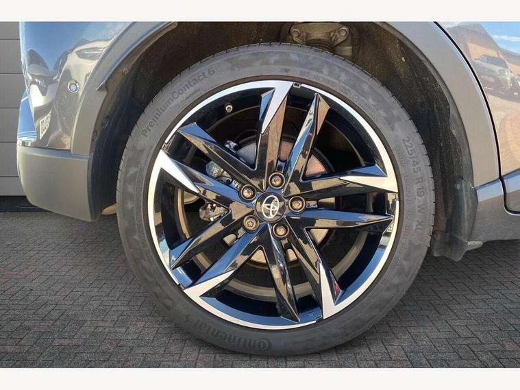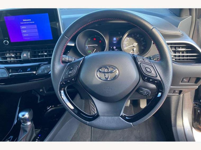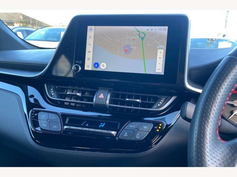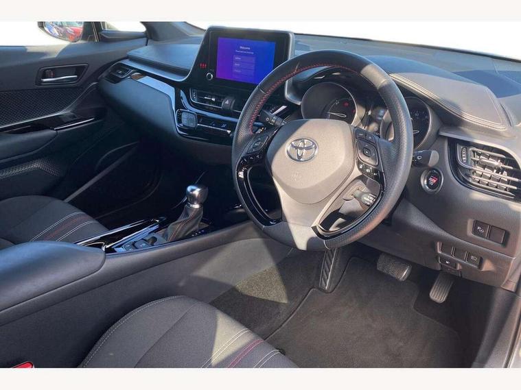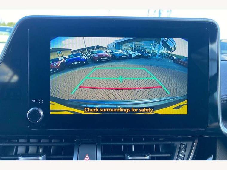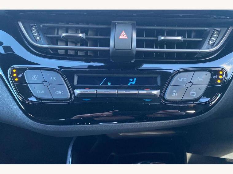 4.2" coloured TFT screen for multi-information display, Adaptive cruise control, Bluetooth connectivity, E-call, Electric power steering, Hybrid system indicator, Lane departure alert with steering control, Remote boot door release in cabin, Remote boot door release in key, Reversing camera, Road sign assist - RSA, Simple Intelligent parking assist, Touch 2 Go navigation system, Trip computer, Voice recognition, Vehicle Stability Control (VSC), 6 speakers, AM/FM radio, DAB Radio (Digital Audio Broadcasting), Toyota touch 2 multimedia system with 8" display, USB connector, Wi-fi connectivity, Adaptive front light system, Adaptive LED Headlights, Anti-jam protection on power windows, Auto high beam, Auto up and down function on all power windows, Automatic headlight levelling, Automatic headlights, Automatic headlights cut-off, Black and body coloured rear bumper, Black upper front grille, Body colour door handles, Body colour door mirrors, Body coloured front bumper, Boot door release with push button, Chrome front lower bumper, Electric heated door mirrors, Follow me home headlights, Front and rear power windows, Front spoiler lip in black, Honeycomb lower front grille, LED daytime running lights, LED fog lights, LED front light guide, LED High mounted stop light, LED rear brake lights, LED rear combination lights, Noise reduction layer on front windows and windscreen, Power adjustable door mirrors, Privacy glass, Rain sensor, Rear sequential indicators, Rear side wing doors, Rear spoiler, Rear tailgate, Rear window defogger, Rear window wiper, Shark fin antenna, UV-filter on driver and passenger windows, UV-filter on rear windows, 12v power outlet - front, 3 rear headrests, 3 seat bench in 2nd row, 3 spoke perforated leather steering wheel, 60/40 split folding rear seat, Adjustable rear headrests, Adjustable speed limiter switch on steering wheel, Assist grips front and centre pillar, Audio and telephone switches on steering wheel, Black front door assist grips, Blue ambient lighting on front cup holders, Blue ambient lighting on front doors, Boot light, Chrome interior door handles, Driver and front passenger personal light, Driver and front passenger Whiplash Injury Lessening seats, Driver and passenger seatback pockets, Dual zone automatic air conditioning, Fabric upholstery, Floor mats, Front cupholders, Front head restraints, Front sports seats, Glovebox with internal light, Hard tonneau cover, Heated driver and front passenger seats, Hooks for luggage holding net, Humidifying Nanoe air purifier, Illuminated entry system, Isofix attachments on outer rear seats, Leather gearshift, Light on driver sun visor, Light on passenger sun visor, Manual telescopic steering wheel, Manual tilt steering wheel, Manually height adjustable driver seat, Manually height adjustable front passenger seat, Manually reclining driver seat, Manually reclining front passenger seat, Manually sliding driver seat, Manually sliding front passenger seat, Microphone on front personal light, Mirror on driver sun visor, Mirror on passenger sun visor, Multimedia switches on steering wheel, Pollen filter, Power adjustable lumbar support on driver seat, Shopping bag hooks, Single front passenger seat, Slow opening on lower glovebox, Voice recognition switch on steering wheel, Tech with parking sensor pack - C-HR, 16 Disk front wheel brake, 3x3 point rear seatbelts, ABS+EBD+Brake assist, Electronic parking brake, Front and rear seatbelt reminder, Front passenger airbag on/off switch, Hill start assist control (HAC), Pre collision system with pedestrian detection, Pre-tensioners and force limiters, Rear door child safety locks, SRS Airbags - Driver + Front passenger, front side, front and rear curtain and driver's knee airbags, Toyota safety sense, Tyre pressure monitoring system, Acoustic vehicle alert system (AVAS), Glass-breaking alarm sensors, Immobiliser, Intrusion alarm, Intrusion sensor, Motion sensor alarm, Power passenger window lock, Remote central locking, Black lower dashboard, Black upper dashboard, Piano black console, Silver deco line on upper dashboard, 19" Black machined alloy wheels, Tyre repair kit,