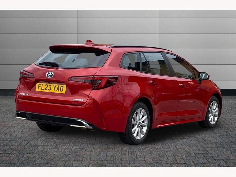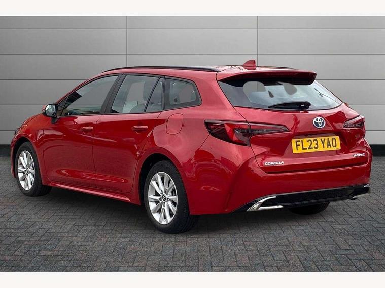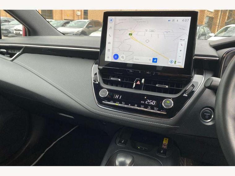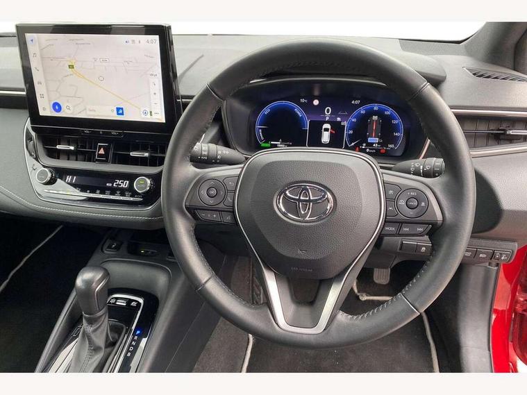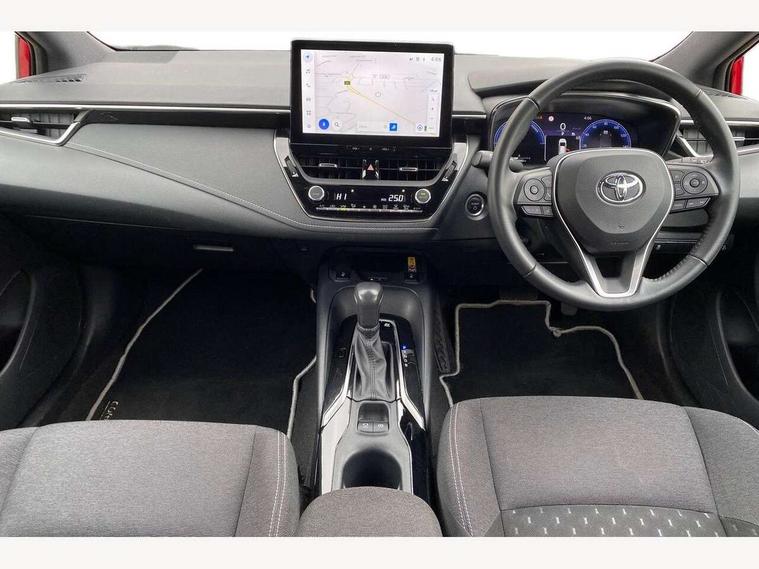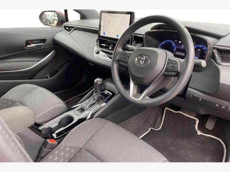 10.5" Multimedia display screen, Attention assist, Bluetooth telephone connectivity, Connected car functionality upgrade, tracker, remote status and e-care, Drive mode select (Eco, Normal), E-call, Electrically assisted power steering, EV drive indicator, Front and rear parking sensors with auto brake, Full Digital 12.3" TFT Digital Combimeter, Key reminder warning, Lane Departure Alert (LDA) switch on steering wheel, Memory on adjustable speed limiter, MyT connected services, Proactive driving assist (PDA), Reversing camera, Smart entry and push button start, Smartphone integration with Apple CarPlay and wired android auto, Tailgate, Toyota remote services, Toyota smart connect navigation, Wireless charger, Gasoline particulate filter, Vehicle Stability Control (VSC), 6 speakers, AM/FM radio, DAB Digital radio, Front USB-C in dashboard, Smart voice assist/ Voice recognition, USB and Aux in connectors + 12V front outlet, Anti-jam protection on power windows, Auto up and down function on all power windows, Automatic headlights with high beam assist, Black centre and side air vents, Black meshed front grille, Black roof rails, Black toyota logo in front, Body coloured bumpers, Body coloured door mirrors, Body coloured front spoiler, Body coloured outside door handles, Body coloured rear under guard, COROLLA alloy door scuff plates, Follow me home headlights, LED daytime running lights, LED front fog lights, LED High mounted stop light, LED multi beam headlights, LED multi reflector in headlights, LED rear combi lights with LED lightguide, Manual day/night rear view mirror, Manual headlight levelling system, New grille pattern, Noise reduction layer on front windows, Noise reduction layer on windscreen, Piano black diffuser, Power adjustable heated door mirrors, Power front windows, Power rear windows, Rain sensor, Rear side wing doors, Rear window defogger, Rear window wiper, Roof spoiler, Satin chrome insert on front air vents, Satin chrome insert on front door assist grips, Satin chrome inserts on rear passenger air vents, Shark fin antenna, Time adjustment on intermittent wiper, Turning signal integrated indicators in door mirrors, Unique lower skirt, Unique side rocker with black insert, UV-filter on driver and passenger windows, 12v power outlet - luggage side, 2 Shopping bag hooks in luggage compartment, 3 rear headrests, 3 seat bench in 2nd row, 3 spoke leather steering wheel with satin insert + gear knob, 4 tie down hooks in luggage compartment, 60/40 split folding rear seat, Adaptive cruise control (ACC) switch on steering wheel, Adjustable speed limiter switch on steering wheel, Audio, multimedia and telephone switches on steering wheel, Black armrest on centre console box, Black gear shift console, Boot light, Boot underfloor storage, Driver and front passenger personal light, Driver and passenger assist grip, Driver and passenger sun visor with mirror and light, Dual level boot floor, Dual sided deck board in boot, Dual zone automatic air conditioning with ECO mode switch, Fabric upholstery, Front and rear cup and bottle holders, Front and rear door pockets, Front head restraints, Front passenger seat, Front sliding fabric armrest, Heated seats, Illuminated entry system in room lamp, ISOFIX seat fixing (2 fixings on rear outer seats), Leather gear shift with satin chrome on gear shift console, Manual height adjustable for driver and front passenger seat, Manually tilt with sliding driver and front passenger seat, Passenger seat back pocket, Pollen filter, Power adjustable lumbar support on driver seat, Power window switches with satin chrome inserts, Rear armrest with 2 cupholders, Rear passenger coat hooks (2), Rear passenger personal lights, Remote air conditioning, Retractable tonneau cover with luggage partition net, Satin chrome inside door handles, Satin chrome surround on heater control panel, Satin chrome surround on speedometer, Side storage in boot, Sliding armrest on centre console box, Slow opening glovebox with lights, Textile floor mats, Tilt/telescopic steering column, Tonneau cover with under floor storage, Toyota easy flat system, Voice recognition switch on steering wheel, Whiplash Injury Lessening (WIL) feature (active headrest) for seats, Toyota safety sense 3 pack - Corolla, 3x3 point rear seatbelts, Adjustable driver and front passenger seat belt extender to top anchor point, Anti lock braking system + Electronic brake force distribution, Brake assist function, Child locks on rear doors, Downhill Assist Control (DAC), Electronic parking brake, Emergency brake light signal (EBS), Front passenger airbag on/off switch, Front seatbelt reminder, HAC - Hill start assist control, Rear seat belt reminder, Seatbelt pretensioners and force limiters, Supplemental restraint system (SRS) 7 airbags - dual driver, dual side curtain, side impact and driver knee airbags, Traction control, Tyre pressure warning system, Acoustic vehicle alert system (AVAS), Alarm with motion sensor and immobilizer, Power passenger window lock, Remote central locking + deadlocks, Satin chrome dash trim, Soft touch texture on upper dashboard, Stitching on lower dashboard, 16" 5 double spoke alloy wheels, Tyre repair kit, Unique wheel finish with red wheel cap,