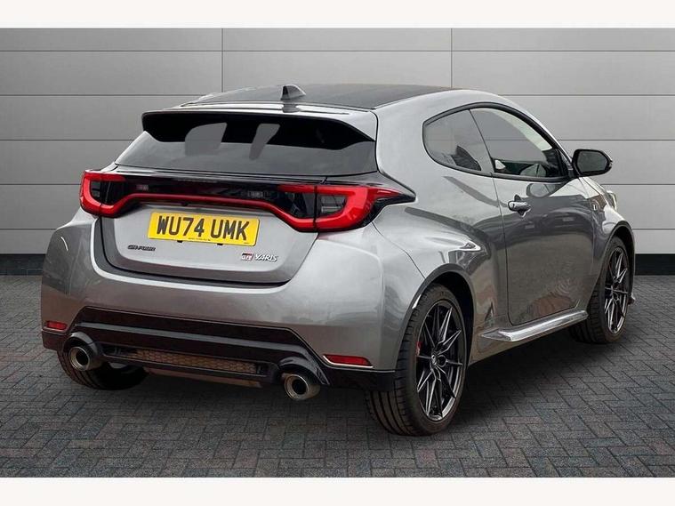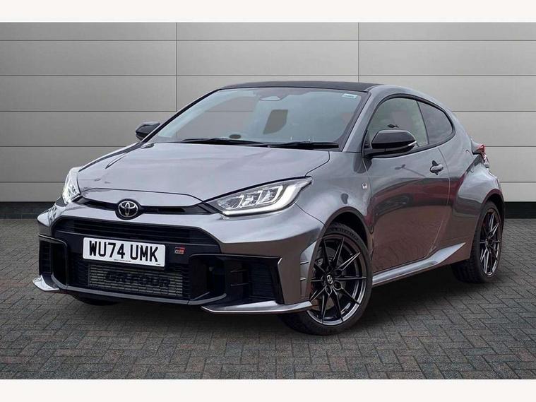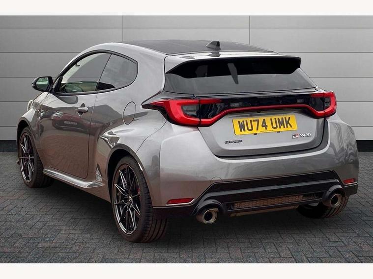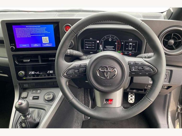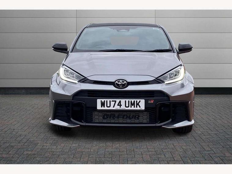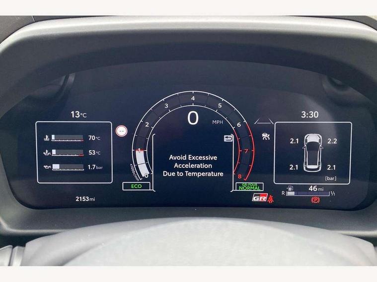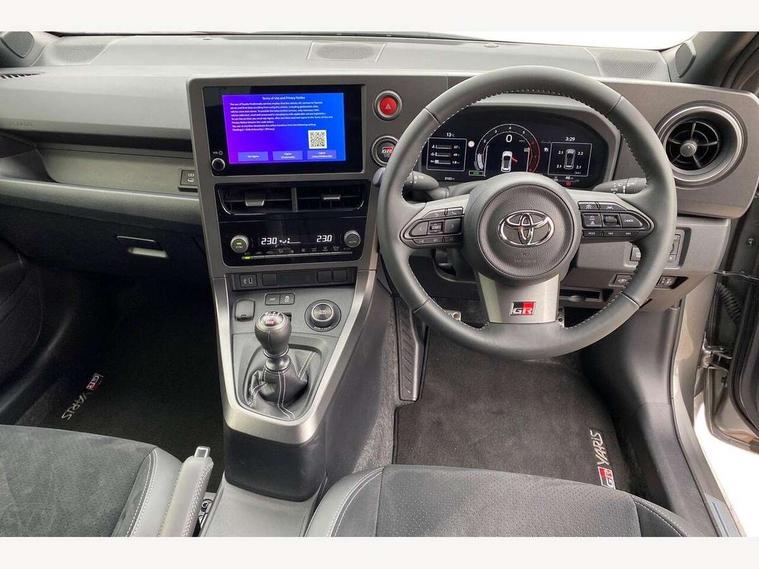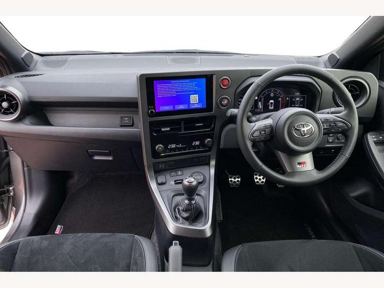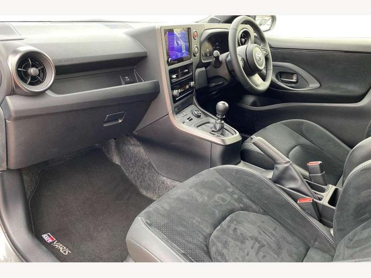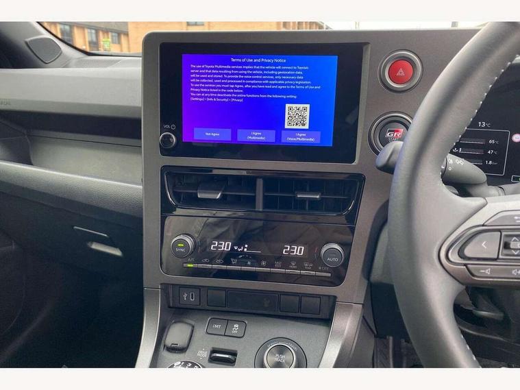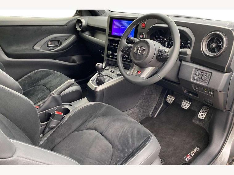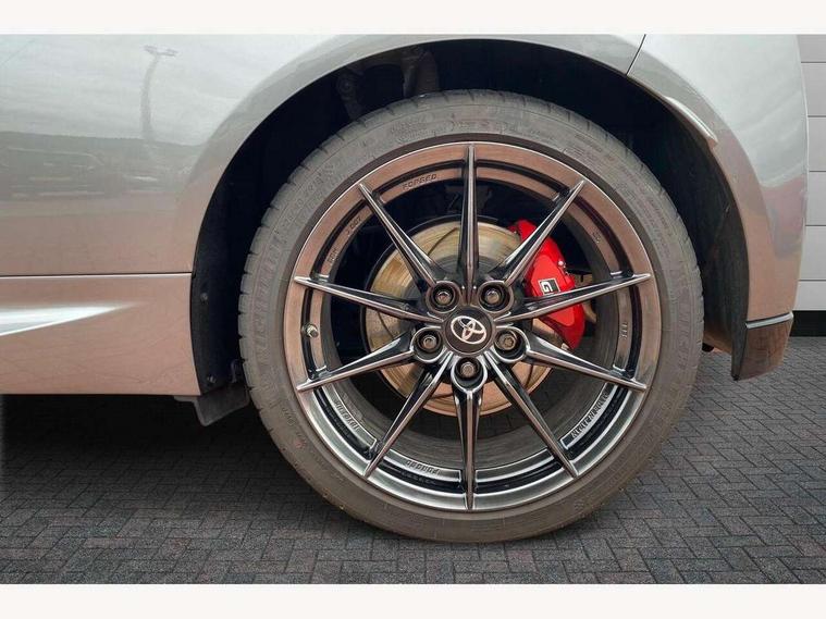 12.3" TFT screen, Bluetooth handsfree system, Digital speedometer (mph), Drive mode selector, eCall emergency call system, Emergency steering assist on pre-collision system (day), Fuel level gauge, Intelligent adaptive cruise control, Lane Departure Alert (LDA) switch on steering wheel, Lane trace assist, Navigation system, Power Steering, Rear view camera, Road sign assist - RSA, Smart voice assist, Toyota smart connect+, Voice recognition, Wireless smartphone integration, Double wishbone rear suspension, Gasoline particulate filter, GR-Four AWD switch, MacPherson front suspension, Noise insulation, Torsen limited slip differential, Vehicle Stability Control (VSC), 6 speakers, 8" Multimedia display, DAB Digital radio, USB connector, Adaptive LED Headlights, Air intakes for brake cooling, Anti-jam protection on power windows, Auto windscreen wipers, Automatic headlights, Automatic headlights cut-off with reminder, Automatic high beam, Automatically retractable door mirrors, Black door mirrors and handles, Black front bumper, Black rear roof spoiler, Body coloured rear bumper, Carbon fibre roof wrap, Door scuff plates, Dual exhaust pipes, Dusk and rain sensors, Electric adjustable heated door mirrors, Electrochromatic rear view mirror, Follow me home headlights, GR functional matrix bumper, GR lower front grille, LED 3rd brake light, LED daytime running lights, LED rear brake lights, LED rear combination lights, License plate lamp, Lower back and back door garnish, Manual headlight levelling, Paint protection film, Piano black side air vents, Privacy glass on rear windows, Rear fog lamps, Rear window defogger, Rear wiper, Rocker and door lower moulding, Shark fin antenna, Turning signal integrated indicators in door mirrors, Windscreen washer nozzle, 1 step hard deck board, 12v power outlet - front, 2 rear headrests, 2 seat bench in 2nd row, 3 spoke leather sports steering wheel, 60:40 Split folding rear seats, Aluminium pedals, Black surround on gear shift console, Clean air filter, Cloth upholstery, Driver and front passenger active headrests, Driver and front passenger fabric floor mats, Driver and passenger sun visor with mirror, Dual zone automatic air conditioning, Electric luggage and back door release, Front bottle holders, Front console box, Front cup holders, Front headrests, Front overhead assist grips, Front sports seats, Gear shift indicator, GR logo on steering wheel, Illuminated entry system, Isofix seat fixing, Leather gearshift knob, Luggage tray, Manual telescopic and tilting steering wheel, Manually height adjustable driver seat, Multimedia switches on steering wheel, Pollen filter, Rear console box, Silver interior door handles, Single front passenger seat, Slow opening on lower glovebox, Soft tonneau cover, Suede front door trim, Ticket holder on driver sun visor, 2 rear seatbelts, ABS with Brake Assist, Driver and passenger front side airbags, Emergency brake light system (EBS), Front and rear seatbelt reminder, Front passenger airbag on/off switch, Hill start assist control (HAC), Occupant detection, Rear passenger side airbag, Red sport front and rear brake pads, Tyre pressure warning system, Anti-theft label, Immobiliser, Intrusion alarm, Smart digital key, Smart entry and start system, 18" 10 spoke forged alloy wheels with Michelin pilot sport, Tyre repair kit, Wheel caps,