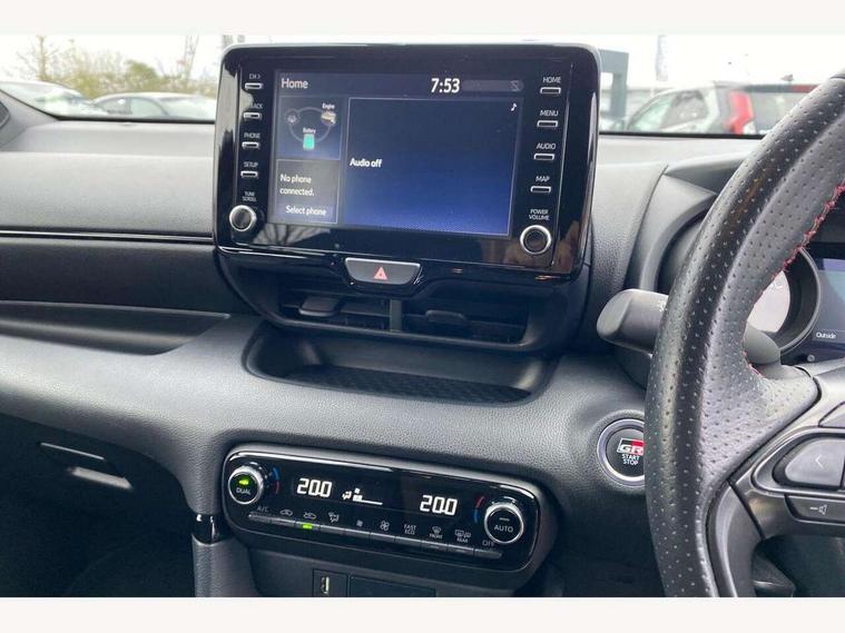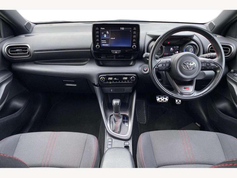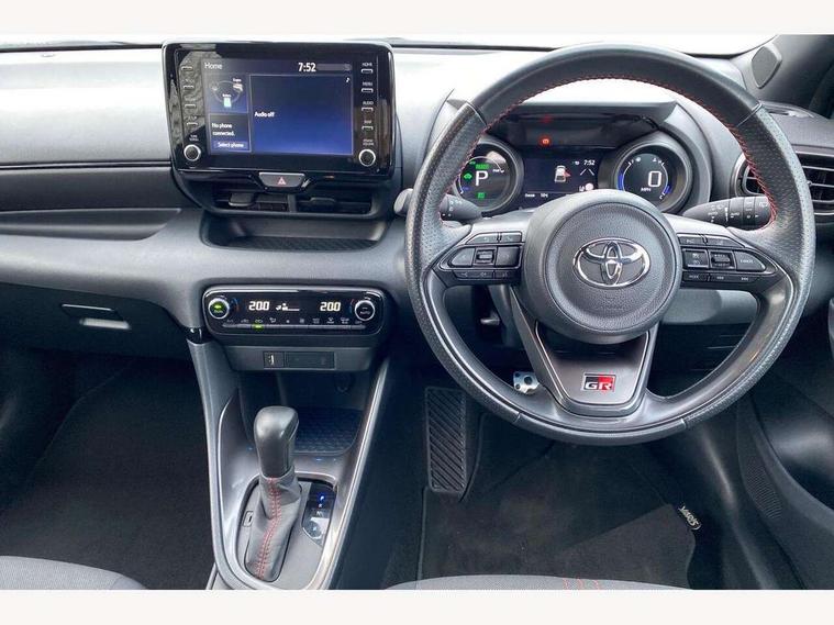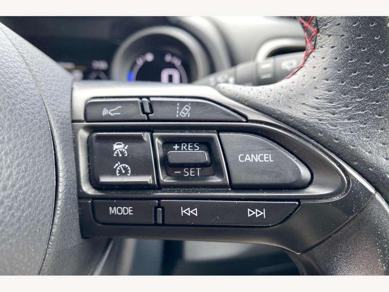 Adaptive cruise control, Adjustable speed limit with speed warning, Bluetooth connectivity, Colour binocular inspired displays with digital speedometer, E-call, Electric power steering, Hybrid energy display, Multi information display switches on steering wheel, Reversing camera, Smartphone integration with Apple CarPlay and Android auto, Tailgate, Voice recognition, Vehicle Stability Control (VSC), 6 speakers, 8" Multimedia display touch screen, Toyota Touch 2 with DAB, USB connection, Acoustic windscreen glass, Auto windscreen wipers, Automatic headlights, Body coloured door mirrors, Dark chrome lower meshed front grille, Electric adjustable heated door mirrors, Follow me home headlights, Front auto power windows with anti jam protection, Full LED rear lights, LED daytime running lights, LED front fog lights, LED front light guide, LED Headlights, LED High mounted stop lamp, LED Indicators, LED rear light guide, Manual headlight levelling, Painted chequered front grille with hot stamp in mesh design, Rain sensor, Rear auto power windows with anti jam protection, Rear privacy glass, Rear side wing doors, Rear spoiler, Rear wiper, Shark fin antenna, Turning signal integrated indicators in door mirrors, Variable front intermittent wipers, 3 adjustable rear headrests, 3 spoke leather steering wheel, 60/40 split folding rear seat, Active headrests, Adjustable boot height, Black roof lining, Coat hooks in rear grab handles, Cup holders (2 front & door), Data Communication Module (DCM) connected services, Dual zone automatic air conditioning, Fabric upholstery with red stitching, Front armrest, Front sport seats, Glovebox, Height adjustable driver's seat, Height adjustable passenger seat, Isofix seat fixing, Leather gearshift, Map pockets on the backs of the front seats, Pollen filter, Shopping bag hooks, Single front passenger seat, Tilt/telescopic steering column, 3 point seatbelts on all rear seats, ABS+EBD+Brake assist, Electronic parking brake, Emergency brake light system (EBS), Front passenger airbag on/off switch, Front seatbelt reminder, Hill start assist control (HAC), Rear child proof door locks, Rear seat belt reminder, Supplemental Restraint System (SRS) 8 airbags: Driver & passenger's airbags, dual side curtain airbags, side impact airbags, front centre airbag, Toyota Safety Sense 2, Precollison + Night time Pedestrian & Cyclist Detection, Lane Trace Assist, Auto High Beam, Intelligent ACC & Road Sign Assist, Tyre pressure warning system, 2x Master key, Alarm/immobiliser, Keyless smart entry with push button start, Remote AC via MyT, Remote locking via MyT, Remote powered central double locking doors, GR Sport interior styling with accents and exterior styling, Piano black interior trim, Soft touch instrument panel, 18" machined face alloy wheels with GR Sport red deco lines, Space saver spare wheel,