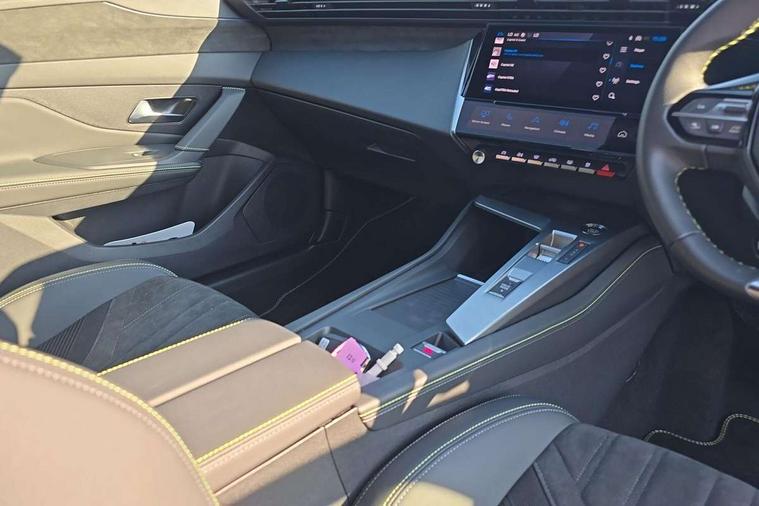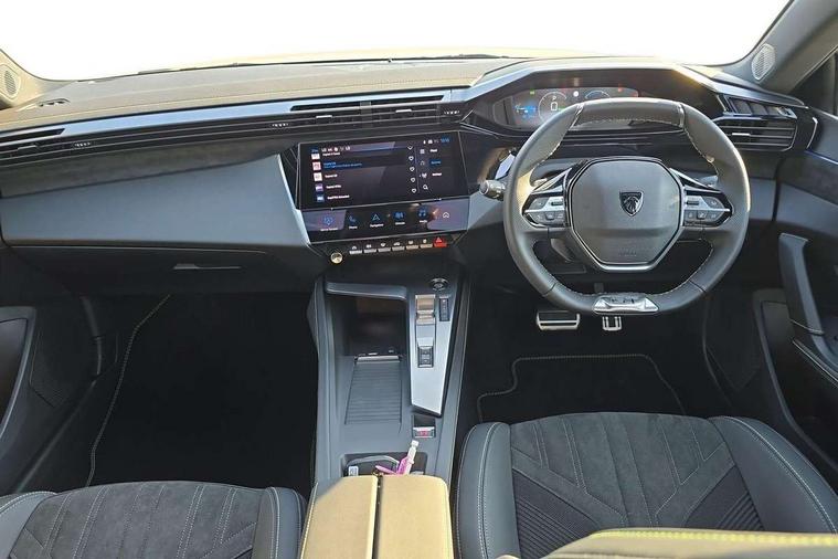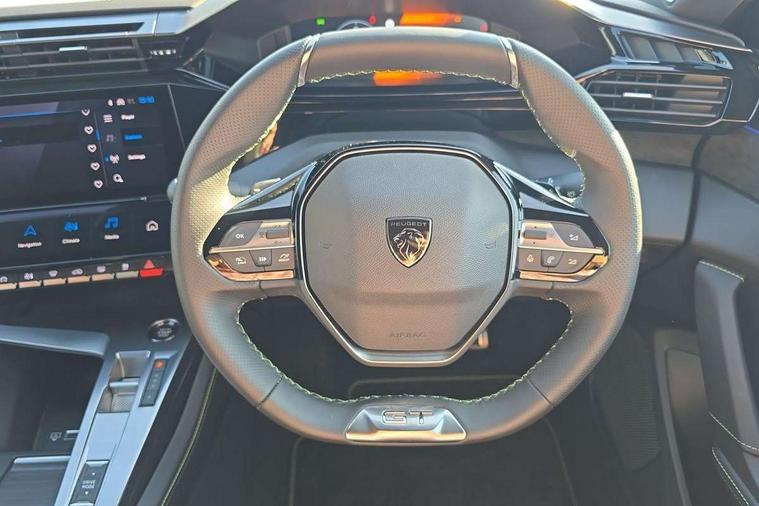 Bluetooth telephone facility, Compact drive selector, Driver attention warning, e-remote control, Emergency call service, Exterior temperature indicator with ice warning, Front and rear parking sensors, Intelligent speed adaptation, Lane keep assist, Mirror screen with wireless apple carplay and android auto, Multi driving mode selector - Electric/HYBRID /Sport mode, Multi function trip computer, Peugeot connect advanced with connected 3D navigation, PEUGEOT i-Cockpit - compact steering wheel, 10" HD colour touchscreen with configurable 3D headup instrument panel, Service interval indicator, Speed limit recognition and recommendation, Sport pedals with foot rest, Mode 3 type 2 cable for wallbox charging, DAB Digital radio, Peugeot customisable iToggles, Voice recognition for radio, navigation and telephony features, 2 X LED rear number plate lights, Acoustic and tinted windscreen, Acoustic laminated front side windows, Automatic hazard light activation upon heavy brake application, Automatic triggered rear windscreen wiper in reverse gear, Body colour door handles, Body colour rear roof spoiler, Dark chrome chequered radiator grille, Dark tinted rear side and tailgate windows, Dichroic hybrid badging in tailgate and front wings, Electric operated/heated door mirrors, Extended lower body sills to the front and side, Framed electrochromatic rear view mirror, Front and rear electric windows with one touch/anti pinch, Full LED matrix headlights with automatic adjustment, Gloss black finish B pillar, Gloss black rear cluster connecting strip, High beam assist, LED 3rd brake light, LED side indicator lights integrated into door mirrors, Lion emblem badging on front wings, Model designation badges on front and rear, Nera black door mirrors, Peugeot aluminium door sills, Peugeot signature LED daytime running lights, Power folding door mirrors, Rear full LED 3D Peugeot new claw effect lights with sequential welcome sequence upon unlocking the vehicle, Rear lower bumper gloss black diffuser effect trim, Rear reversing lights, Rear side wing doors, Tailgate with heated rear windscreen and wiper blade, Twin exhaust pipes with chrome surround, 1/3 to 2/3 split folding rear seats, 12V socket, 2 front USB socket including 1 USB type c, 3 seat bench in 2nd row, 8 Colour personalisable ambient lighting, Automatic air conditioning with AQS 3, Belomka tri-material woven cloth with Isabella leather effect upholstery, Carpet mats, Central front armrest with storage compartment, Dynamic front seats, Electric power steering with reach and rake adjustable steering column, Front central console with two cup holders, LED Glovebox light, Manual driving mode - change gear manually via steering mounted paddles, Multifunction full grain leather steering wheel with admite green stitching & GT badging, Piano keys gloss black plated toggle switches to access main functions of the vehicle, Roof lining - Mistral black, Seatbelt unfastened on the move audible and visual alert for front and rear seats, Single front passenger seat, Ski hatch with central rear armrest with cup holder, Sunvisor with concealable mirrors and LED lighting, Twin USB charging ports in the rear (Type C), Driver sport pack - 308 PHEV, Visibility pack with automatic magic wash windscreen wipers - 308, 2x Isofix child seat fitting on outer rear seats, 3x Rear three-point retractable seatbelts with force limiters in the outer rear seats, ABS + EBD + EBA, Active safety brake with night function/cyclists/pedestrians, Adaptive driver and front passenger airbags with passenger airbag deactivation function, Automatic post collision braking, Child locks on rear doors, Driver/front passenger side airbags, Electronic parking brake, ESP, Front and rear curtain airbags, Front optimised safety headrests and rear retractable headrests (x3), height adjustable, Front three point retractable seatbelts with force limiters, Front/rear disc brakes, Hill start assist, Tyre pressure sensor, Acoustic vehicle alert system (AVAS), Automatic door locking when moving off, Deadlocking system, Electronic code immobiliser, Locking wheel nuts, PEUGEOT Open and Go keyless entry system, Thatcham cat. 1 alarm with anti lift sensor,